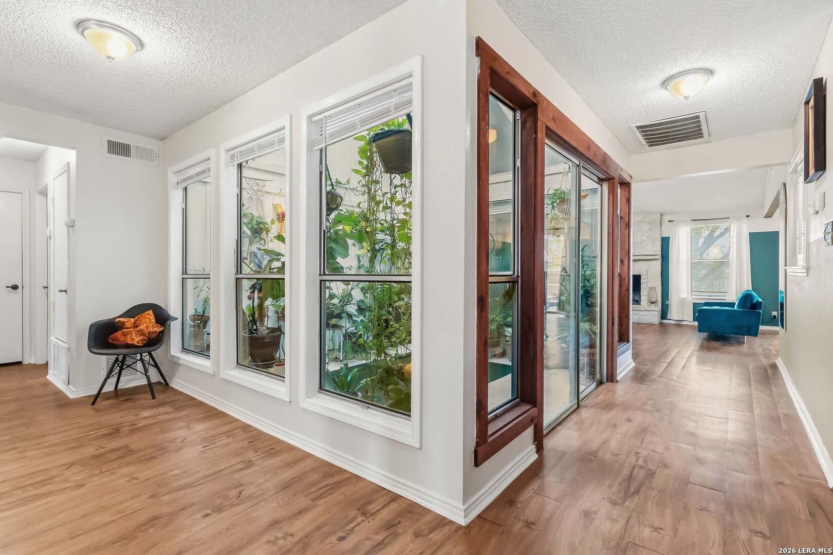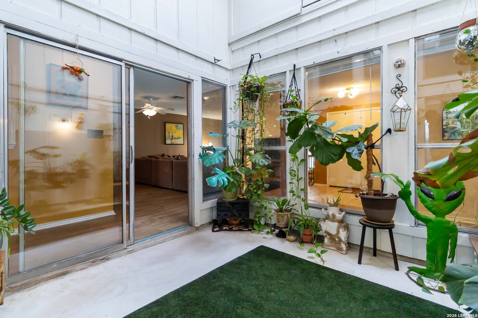 Welcome to this beautifully charming single-story home nestled in a desirable golf course community, where character and comfort come together effortlessly. From the moment you arrive, you'll appreciate the inviting atmosphere and timeless appeal this home has to offer. Step inside to discover a warm and welcoming living room centered around a cozy fireplace-perfect for relaxing evenings or entertaining guests. At the heart of the home, a stunning, light-filled atrium creates a unique focal point, bringing in natural sunlight and offering a peaceful indoor-outdoor feel. The thoughtfully designed layout flows seamlessly, providing both functionality and charm throughout. Outside, you'll find a spacious backyard with endless potential-ideal for gatherings, gardening, or simply enjoying quiet moments. Conveniently located just minutes from shopping, dining, the airport, and major freeways, this home offers both tranquility and accessibility in one of the area's most sought-after neighborhoods. Don't miss the opportunity to own this truly special property full of warmth, character, and lifestyle appeal.