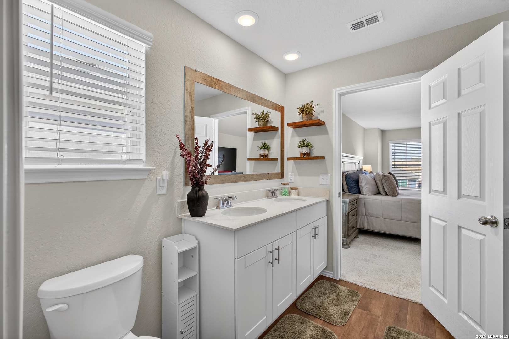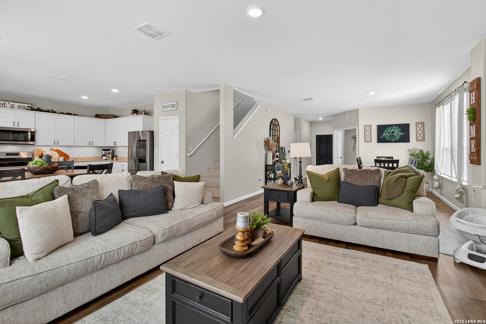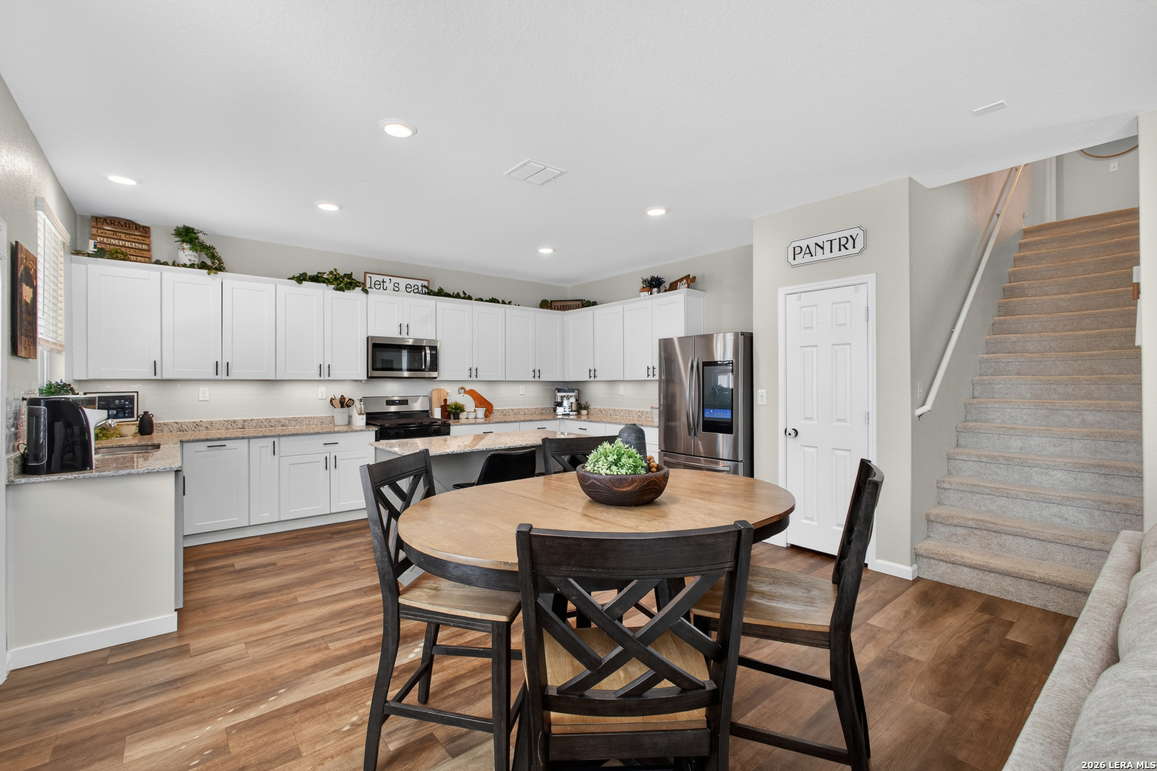 Welcome to this beautifully designed two-story home in the desirable Winding Brook community near Alamo Ranch. Offering 4 bedrooms and 3 full bathrooms, this thoughtfully planned floorplan includes a secondary bedroom with a full bath downstairs, ideal for guests, multigenerational living, or a private mother-in-law suite. A dedicated study on the main level adds flexibility for working from home or quiet retreat space. Upstairs, you'll find the primary suite, two additional secondary bedrooms, and a spacious second living area/game room, creating the perfect separation of living and entertaining spaces. The home features modern farmhouse design elements and tasteful updates throughout, giving it a true move-in-ready feel. The kitchen showcases granite countertops and flows seamlessly into the main living area-perfect for everyday living and hosting. Step outside and enjoy Govee under-mount soffit lighting, making holiday decorating effortless year-round, from Christmas to every celebration in between. Located just minutes from Alamo Ranch Shopping Center, Government Canyon State Natural Area, and Medina Lake, this home offers both convenience and lifestyle. No city taxes mean a more affordable monthly mortgage, making this an exceptional value in a fast-growing area. Comfort, functionality, location, and affordability-this home truly checks all the boxes.