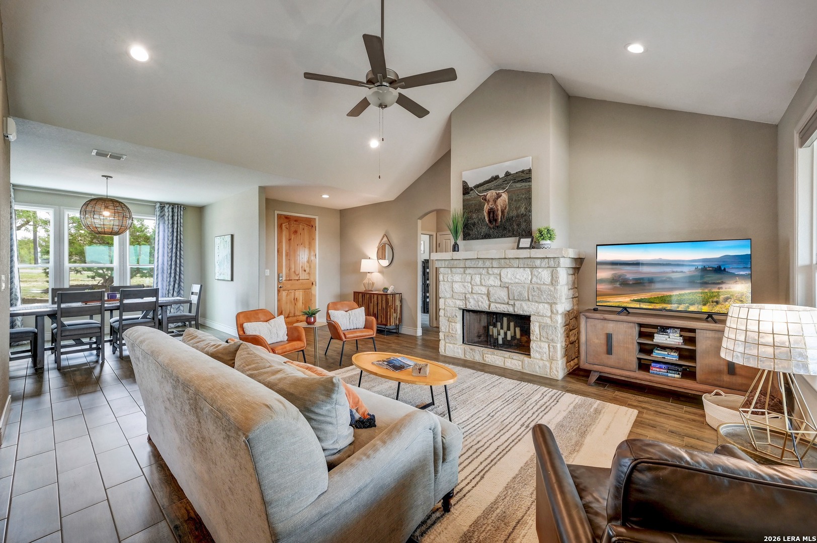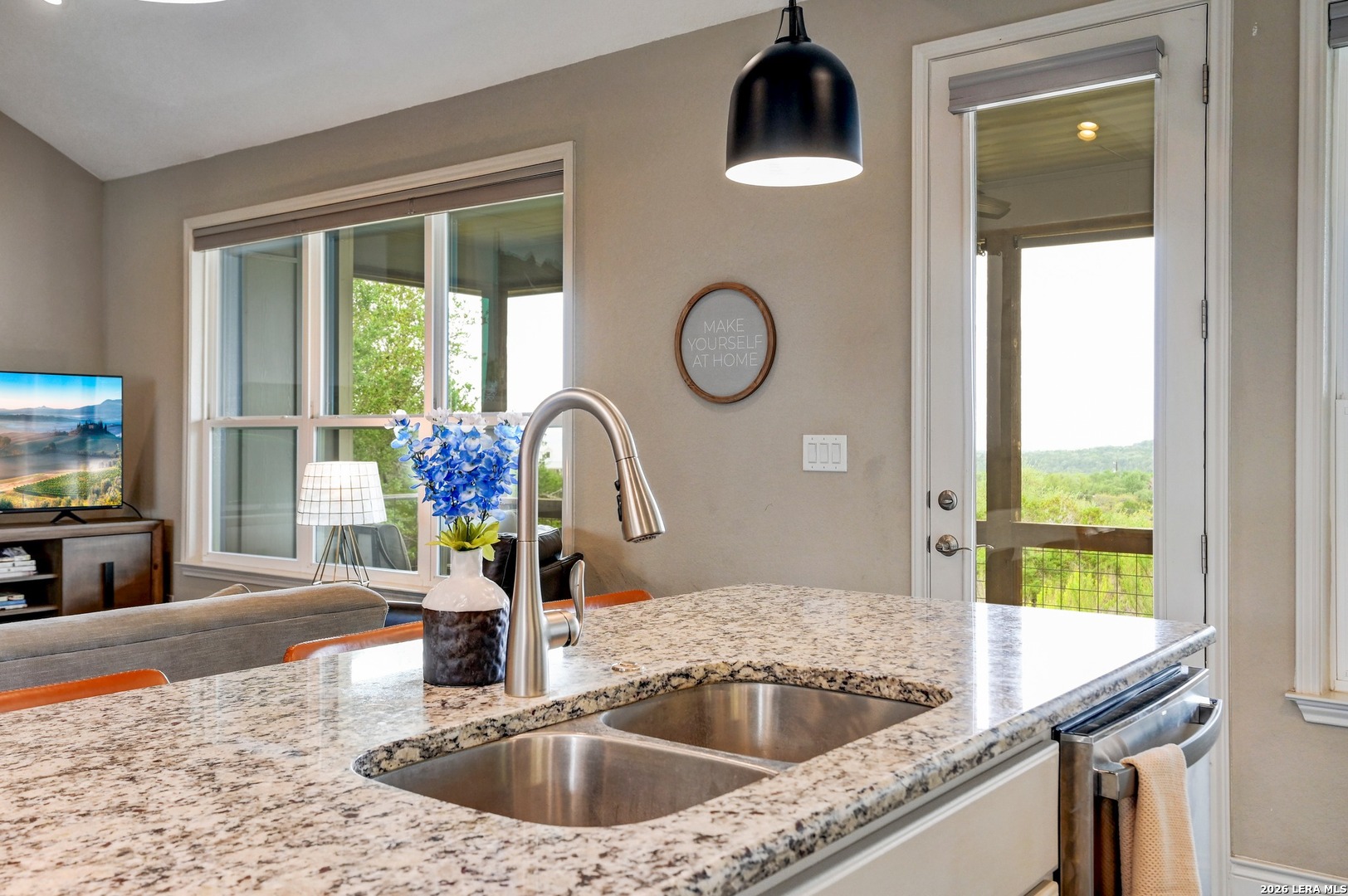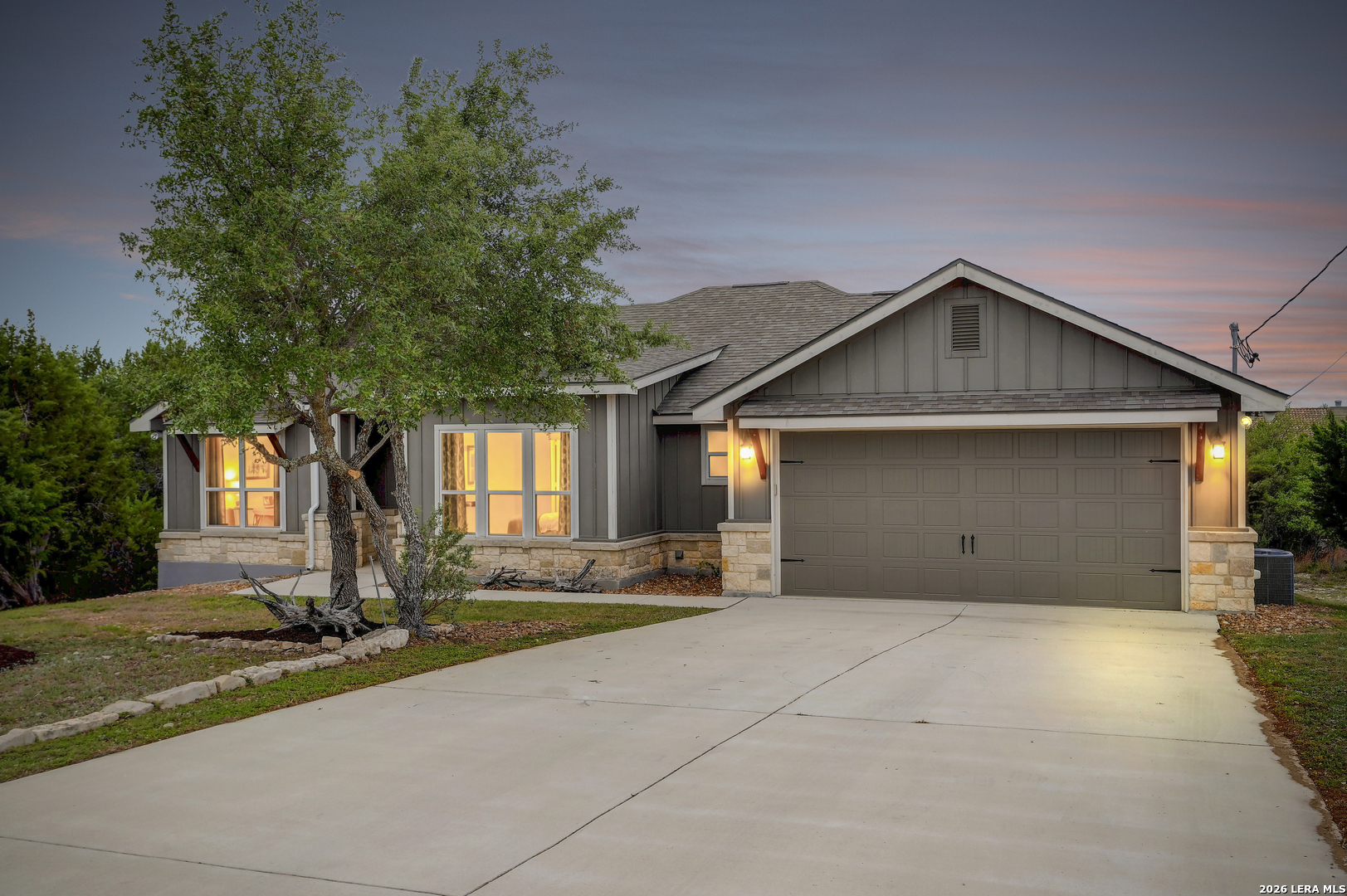 Beautiful Hill Country scenery and Canyon Lake views are the highlight of this incredible well maintained home w/no HOA in the desirable Point at Rancho Del Lago. Situated on a half-acre lot, this 3-bedroom, 2-bath home features an open-concept layout w/high ceilings, abundant natural light & all tile flooring throughout. The kitchen offers granite countertops, stainless steel appliances, a large island, breakfast bar seating, ample cabinetry & generous counter space, all flowing seamlessly into the living & dining areas. A split floor plan provides privacy, w/a spacious primary suite featuring a large walk-in closet & a well-appointed bath w/double vanity, granite countertops & a nice walk-in shower. Enjoy sweeping Canyon Lake & Hill Country views from the covered back porch-perfect for relaxing or entertaining. The gently rolling lot w/mature trees creates a peaceful setting, just minutes from Canyon Lake, schools & local amenities. Easy commute to San Antonio, Austin, San Marcos & surrounding towns. Ideal as a full-time residence, weekend getaway, or short-term rental opportunity!