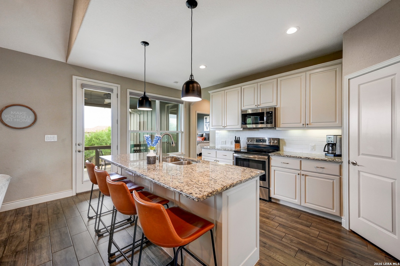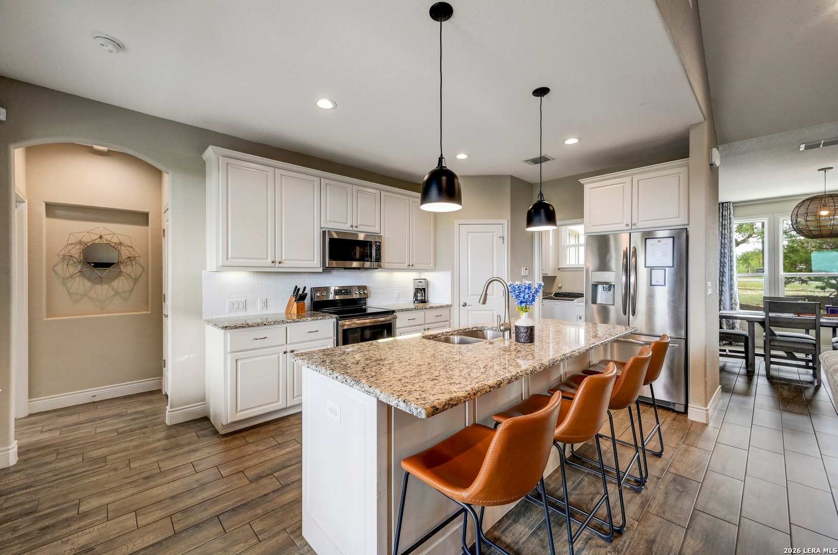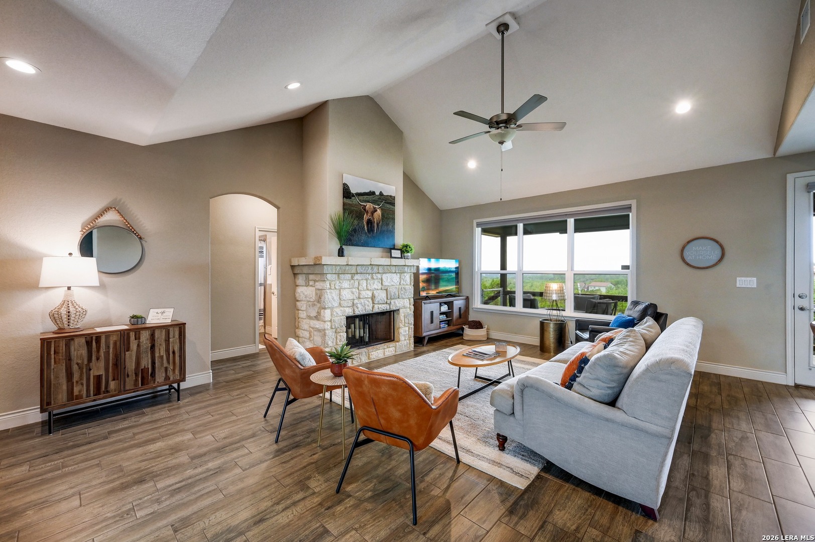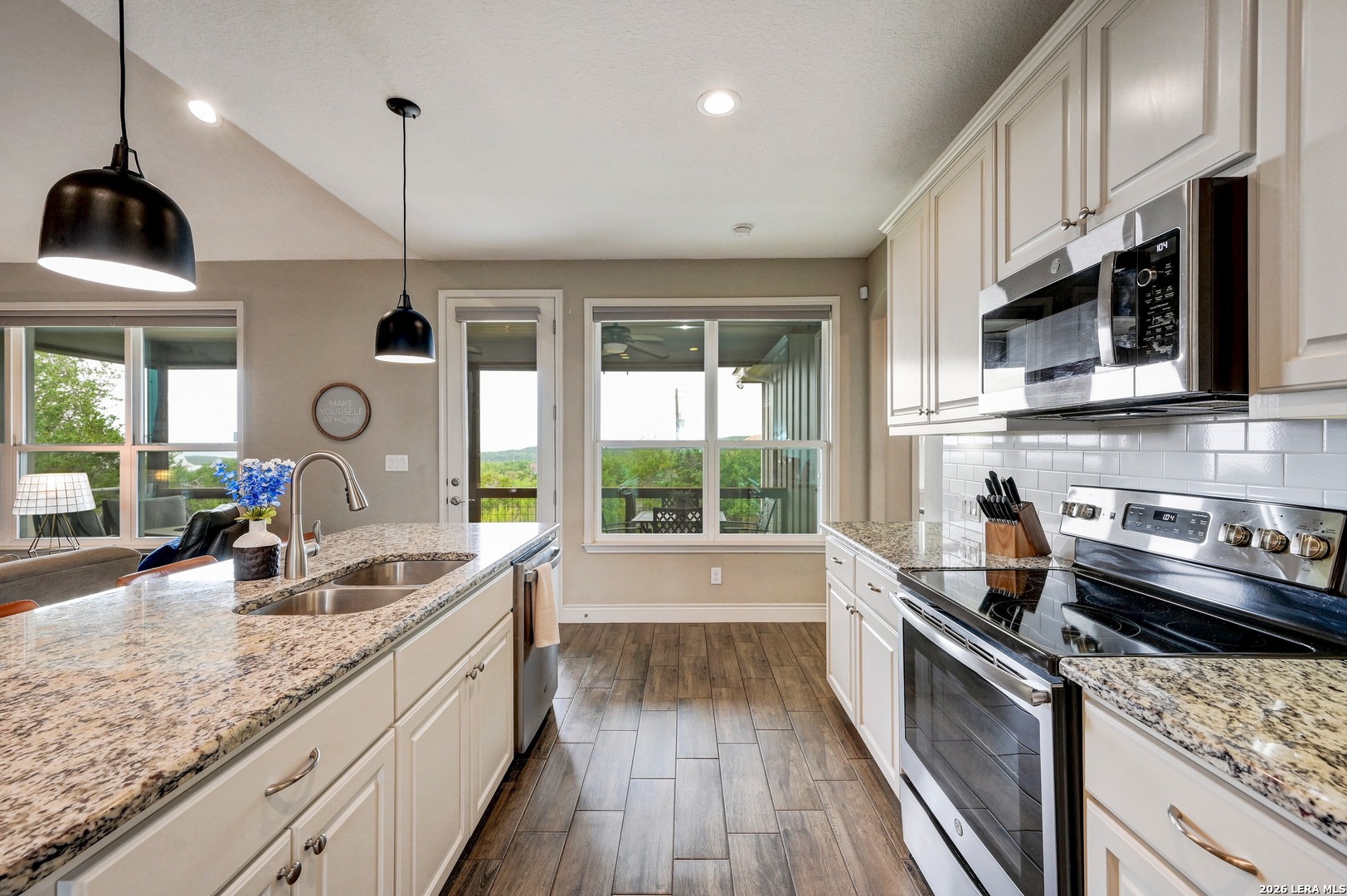 Beautiful Hill Country scenery and Canyon Lake views are the highlight of this incredible well maintained home w/no HOA in the desirable Point at Rancho Del Lago. Situated on a half-acre lot, this 3-bedroom, 2-bath home features an open-concept layout w/high ceilings, abundant natural light & all tile flooring throughout. The kitchen offers granite countertops, stainless steel appliances, a large island, breakfast bar seating, ample cabinetry & generous counter space, all flowing seamlessly into the living & dining areas. A split floor plan provides privacy, w/a spacious primary suite featuring a large walk-in closet & a well-appointed bath w/double vanity, granite countertops & a nice walk-in shower. Enjoy sweeping Canyon Lake & Hill Country views from the covered back porch-perfect for relaxing or entertaining. The gently rolling lot w/mature trees creates a peaceful setting, just minutes from Canyon Lake, schools & local amenities. Easy commute to San Antonio, Austin, San Marcos & surrounding towns. Ideal as a full-time residence, weekend getaway, or short-term rental opportunity!
