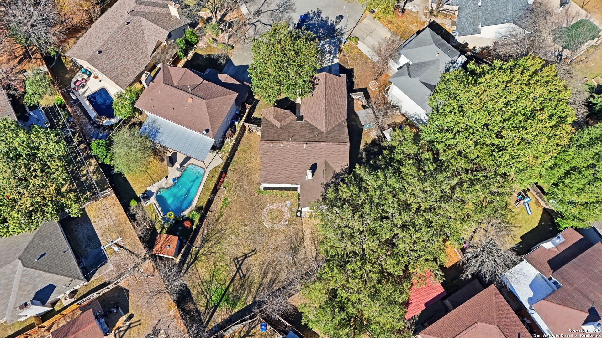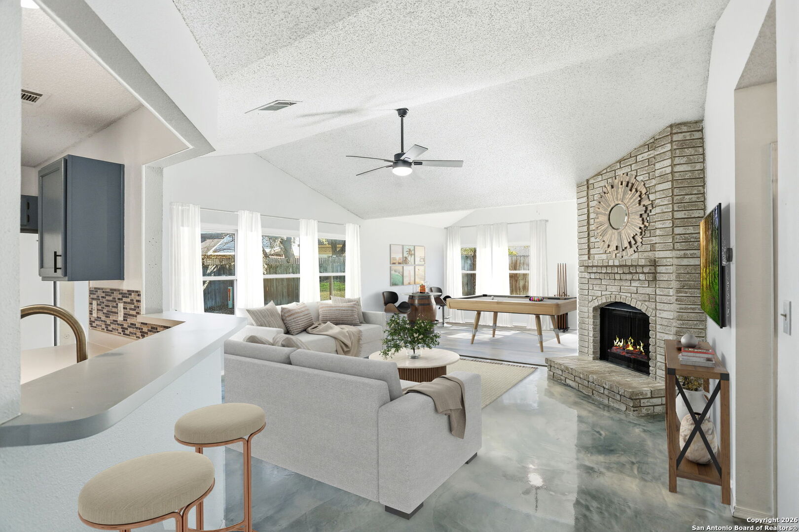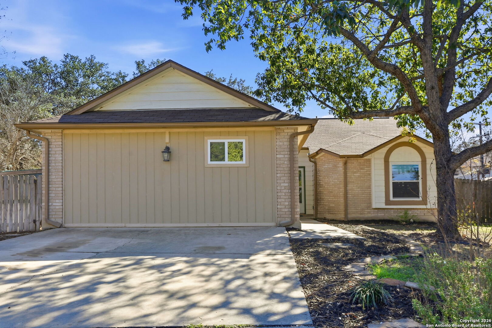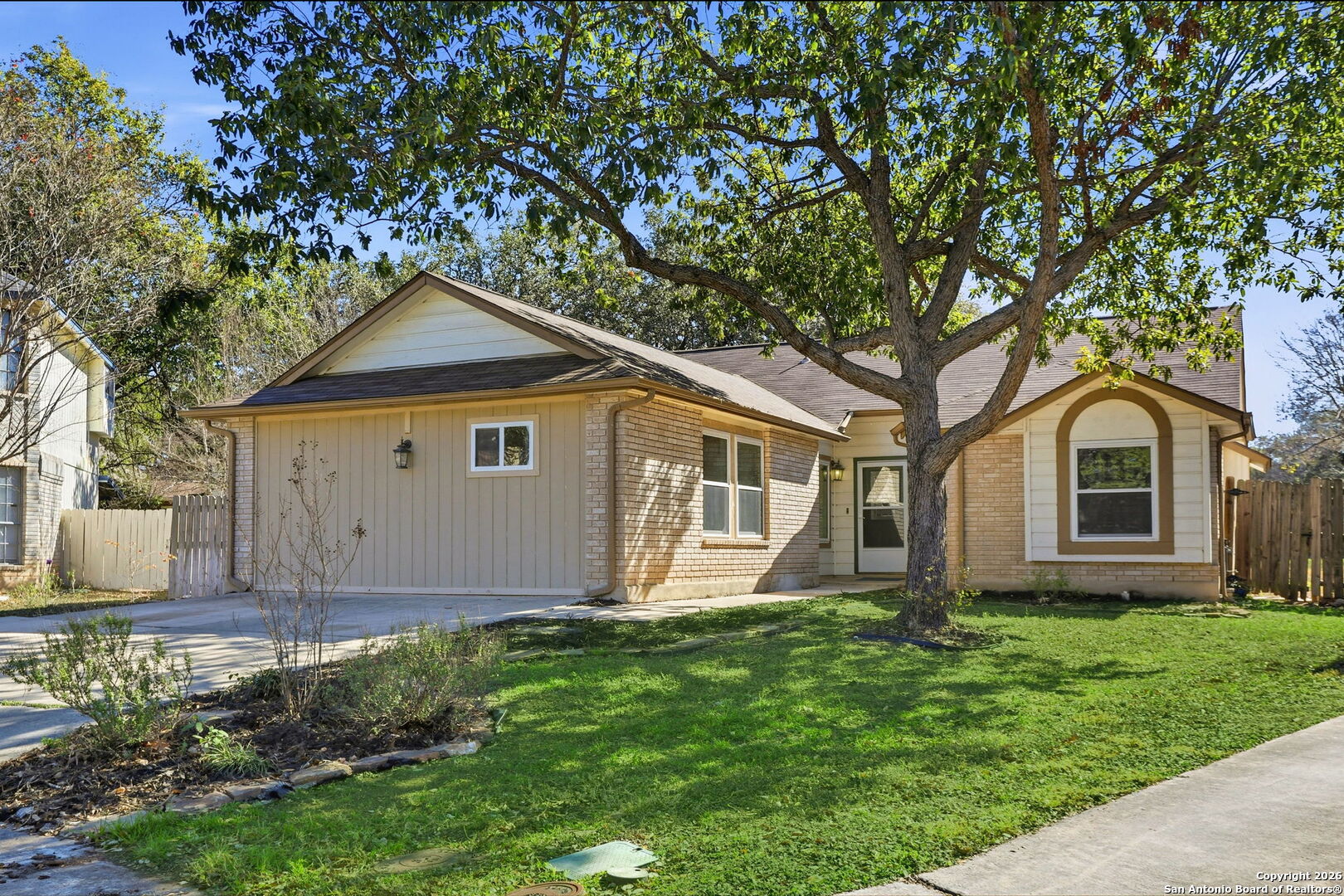 A rare single-story layout with dual primary suites, a quarter-acre lot, and NO HOA-this home truly checks all the boxes and offers endless possibilities! Move-in ready and located on a cul-de-sac lot in the Hollow Oaks community, this home is just minutes from McAllister Park. Situated on a generous 1/4-acre lot, this 4-bedroom, 3-bath residence offers 2,016 sq ft of versatile living space. The sought-after dual primary suite layout provides exceptional flexibility for guests, multigenerational living, or a private flex space such as a home gym or studio. The converted garage serves as the secondary primary suite, while the extended living room and converted garage together add approximately 506 sqft of additional living space, creating incredible flexibility for entertaining, game nights, or a second living area. Natural light fills the interior and is complemented by modern fixtures and finishes throughout. A separate dining room easily doubles as a home office or study, while epoxy and vinyl wood flooring paired with a timeless brick fireplace add warmth and elegance. Recent updates include an updated HVAC system, water heater, water softener, and gutters around the home. The spacious backyard offers even more endless possibilities-ideal for relaxing, hosting, or customizing your outdoor retreat-with convenient access to shopping, dining, major highways, and the scenic trails and green space of McAllister Park. This move-in-ready home delivers space, flexibility, and location-an absolute must-see!