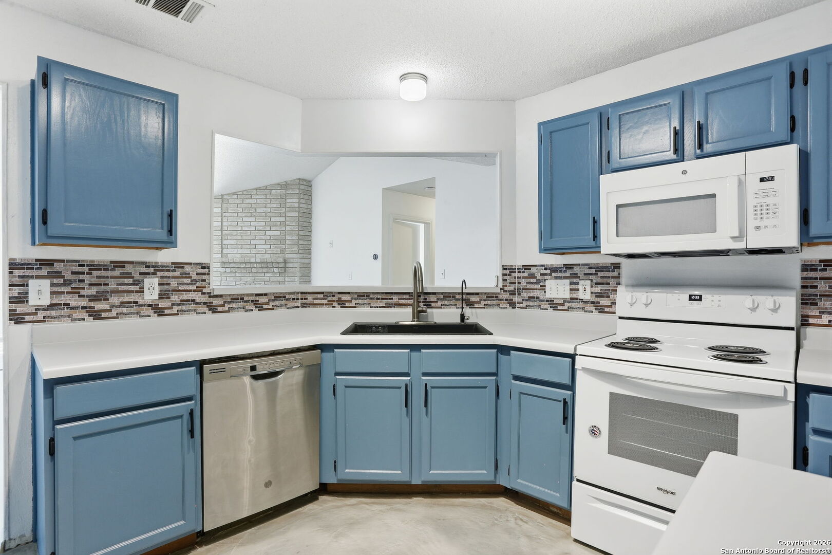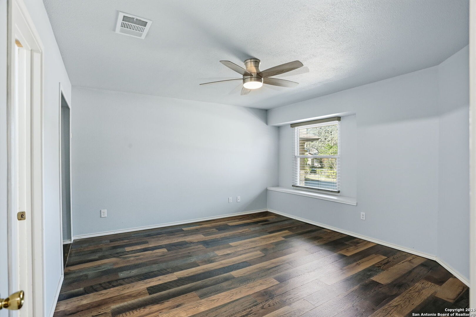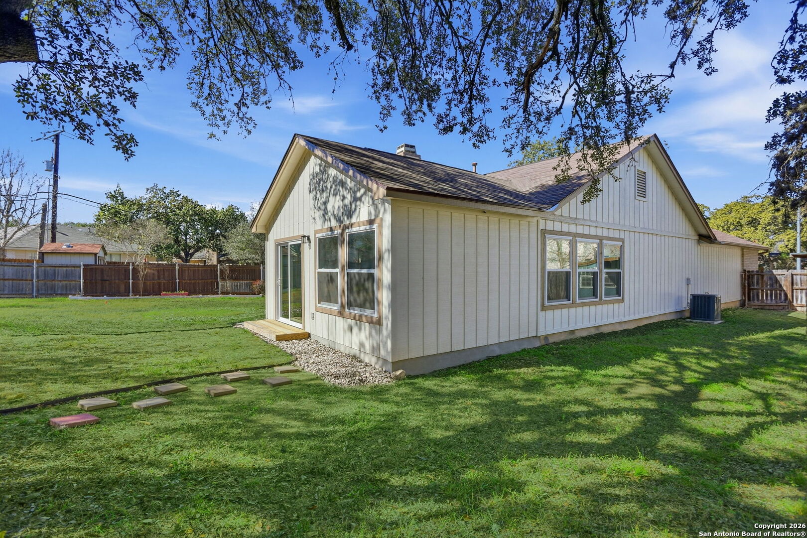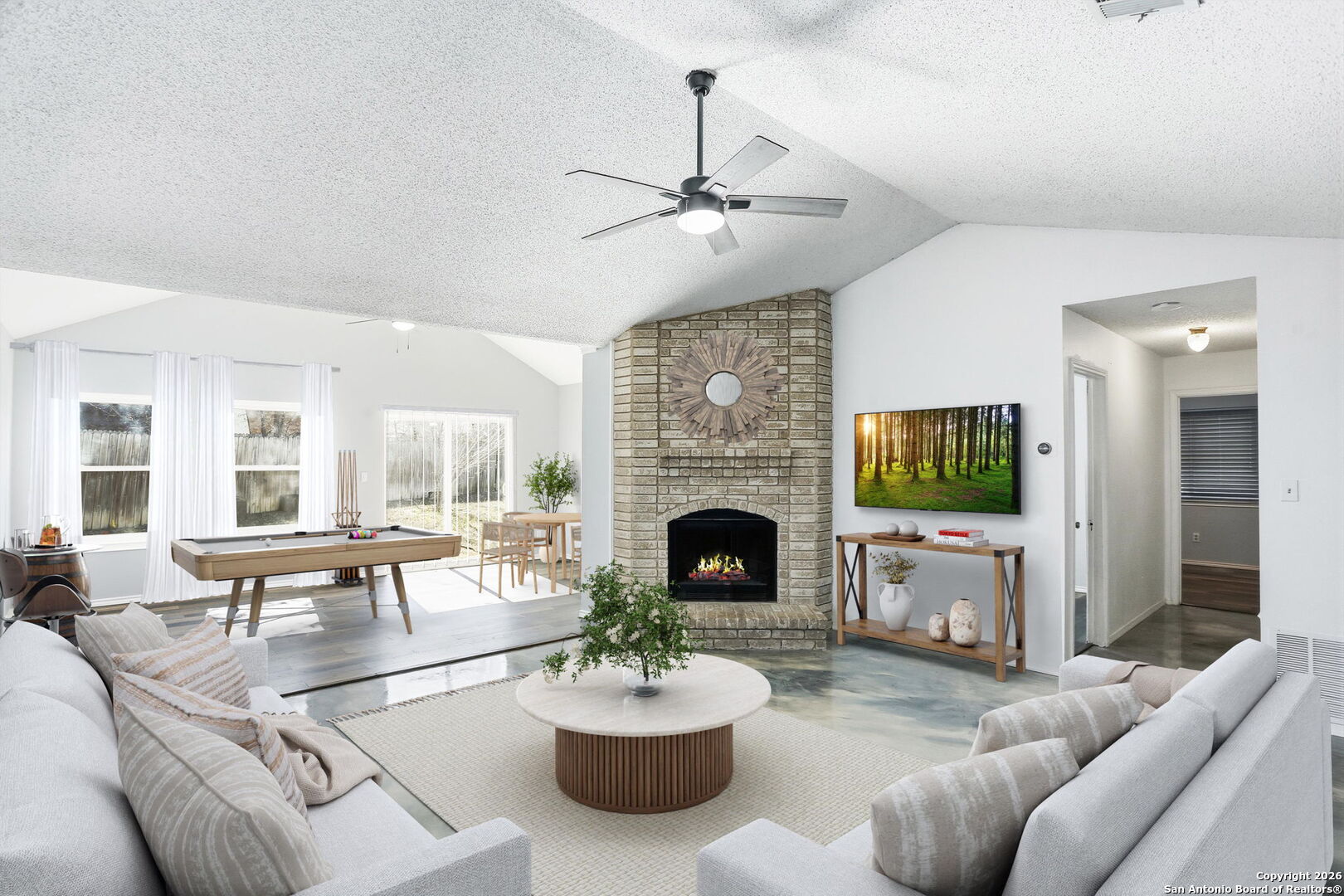 A rare single-story layout with dual primary suites, a quarter-acre lot, and NO HOA-this home truly checks all the boxes and offers endless possibilities! Move-in ready and located on a cul-de-sac lot in the Hollow Oaks community, this home is just minutes from McAllister Park. Situated on a generous 1/4-acre lot, this 4-bedroom, 3-bath residence offers 2,016 sq ft of versatile living space. The sought-after dual primary suite layout provides exceptional flexibility for guests, multigenerational living, or a private flex space such as a home gym or studio. The converted garage serves as the secondary primary suite, while the extended living room and converted garage together add approximately 506 sqft of additional living space, creating incredible flexibility for entertaining, game nights, or a second living area. Natural light fills the interior and is complemented by modern fixtures and finishes throughout. A separate dining room easily doubles as a home office or study, while epoxy and vinyl wood flooring paired with a timeless brick fireplace add warmth and elegance. Recent updates include an updated HVAC system, water heater, water softener, and gutters around the home. The spacious backyard offers even more endless possibilities-ideal for relaxing, hosting, or customizing your outdoor retreat-with convenient access to shopping, dining, major highways, and the scenic trails and green space of McAllister Park. This move-in-ready home delivers space, flexibility, and location-an absolute must-see!