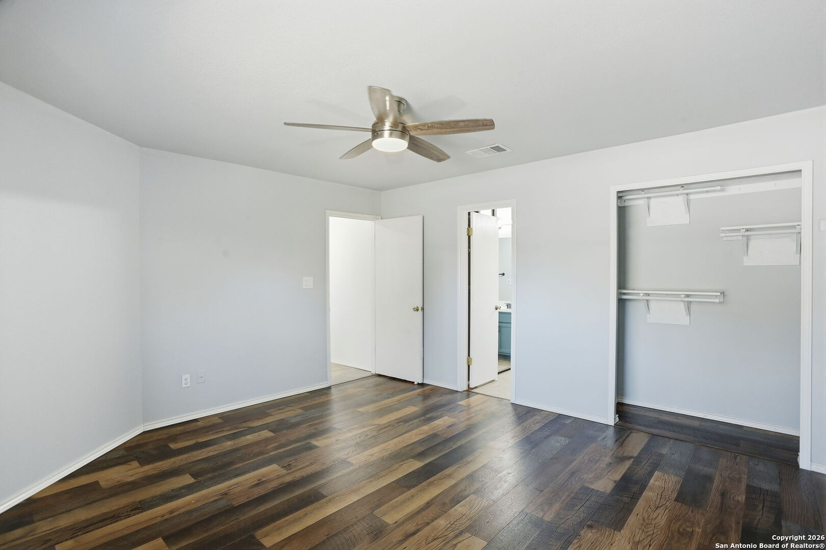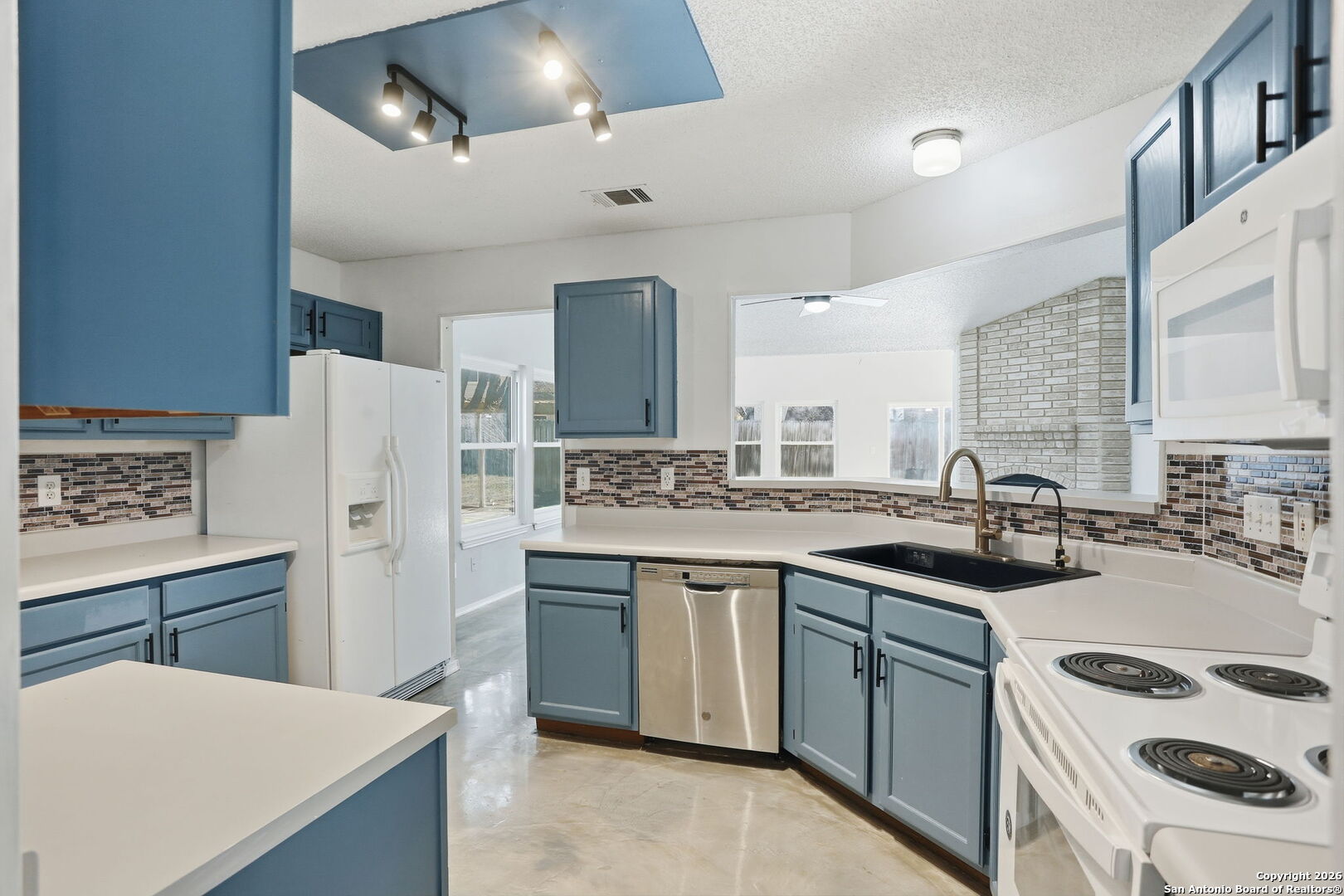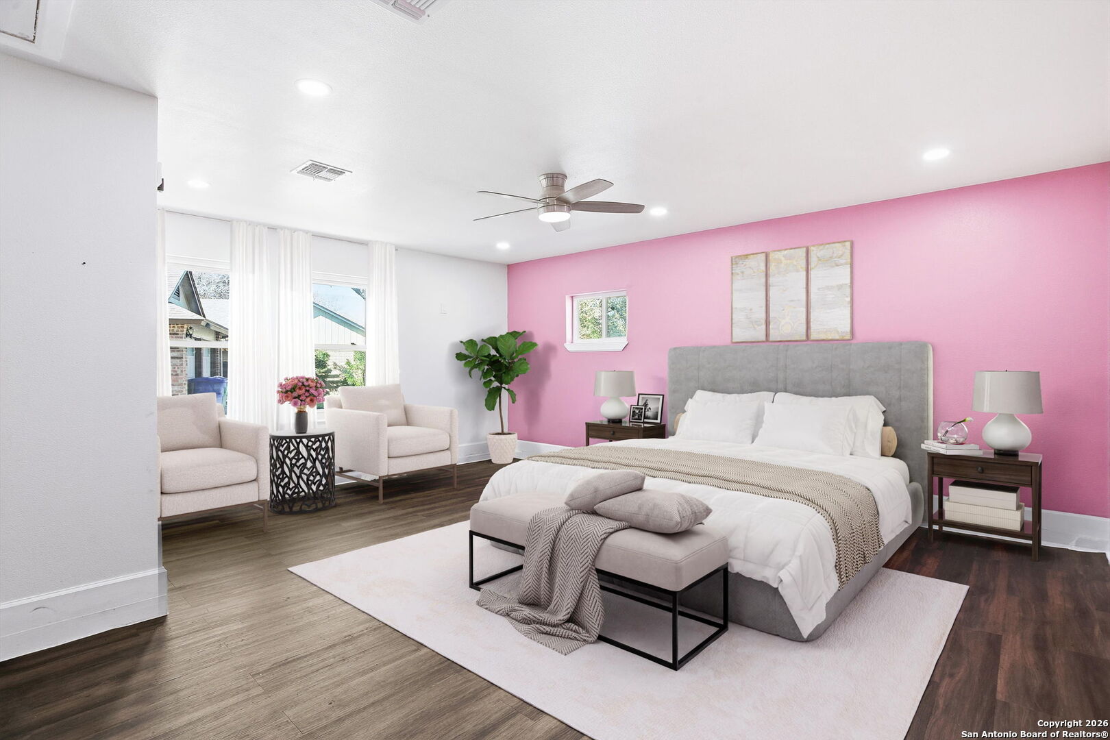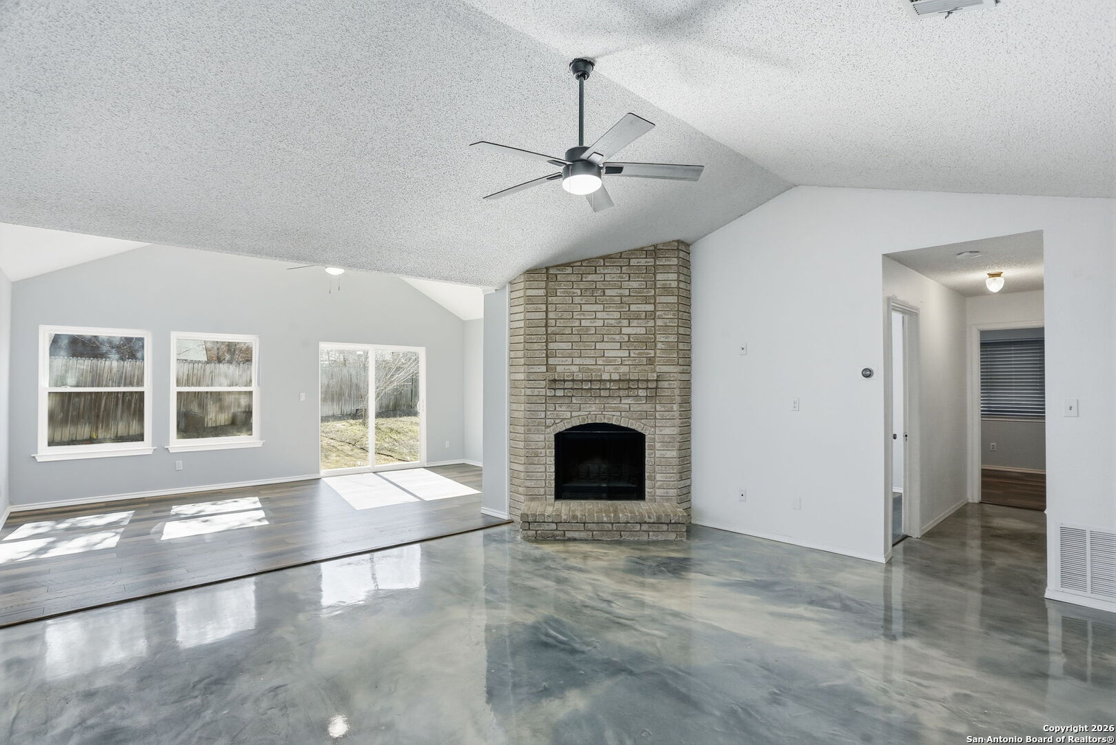 A rare single-story layout with dual primary suites, a quarter-acre lot, and NO HOA-this home truly checks all the boxes and offers endless possibilities! Move-in ready and located on a cul-de-sac lot in the Hollow Oaks community, this home is just minutes from McAllister Park. Situated on a generous 1/4-acre lot, this 4-bedroom, 3-bath residence offers 2,016 sq ft of versatile living space. The sought-after dual primary suite layout provides exceptional flexibility for guests, multigenerational living, or a private flex space such as a home gym or studio. The converted garage serves as the secondary primary suite, while the extended living room and converted garage together add approximately 506 sqft of additional living space, creating incredible flexibility for entertaining, game nights, or a second living area. Natural light fills the interior and is complemented by modern fixtures and finishes throughout. A separate dining room easily doubles as a home office or study, while epoxy and vinyl wood flooring paired with a timeless brick fireplace add warmth and elegance. Recent updates include an updated HVAC system, water heater, water softener, and gutters around the home. The spacious backyard offers even more endless possibilities-ideal for relaxing, hosting, or customizing your outdoor retreat-with convenient access to shopping, dining, major highways, and the scenic trails and green space of McAllister Park. This move-in-ready home delivers space, flexibility, and location-an absolute must-see!