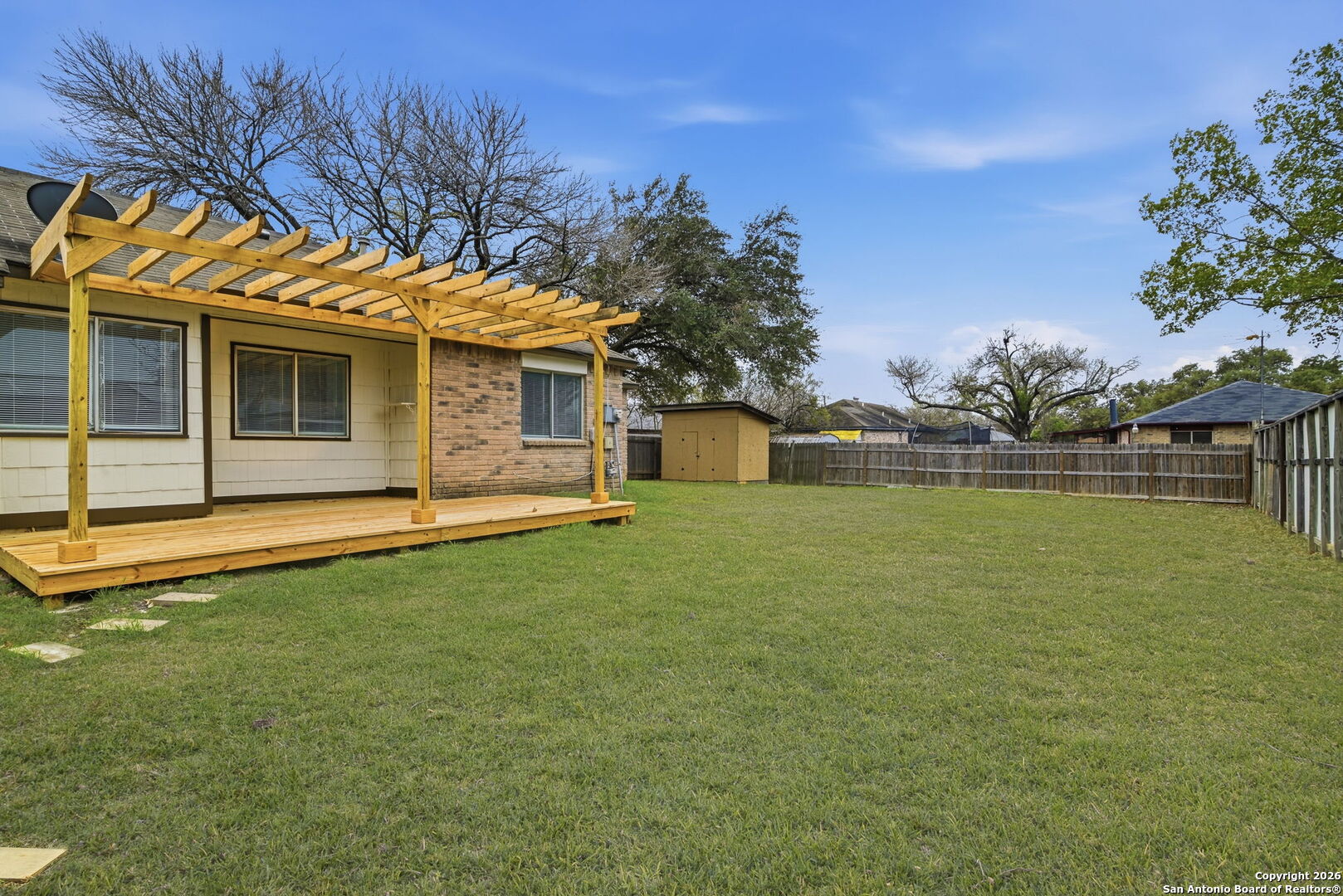 This charming 2-bedroom, 2-bath home offers a bright, open floor plan that brings the kitchen, living room and dining spaces together for a welcoming setting. The fully updated interior includes a stylish kitchen and bathrooms with appliances included. Outside, enjoy a large backyard featuring a new deck, creating the perfect space for entertaining or unwinding. The home is close proximity to a NEISD elementary school and minutes from Loop 1604 and IH35.