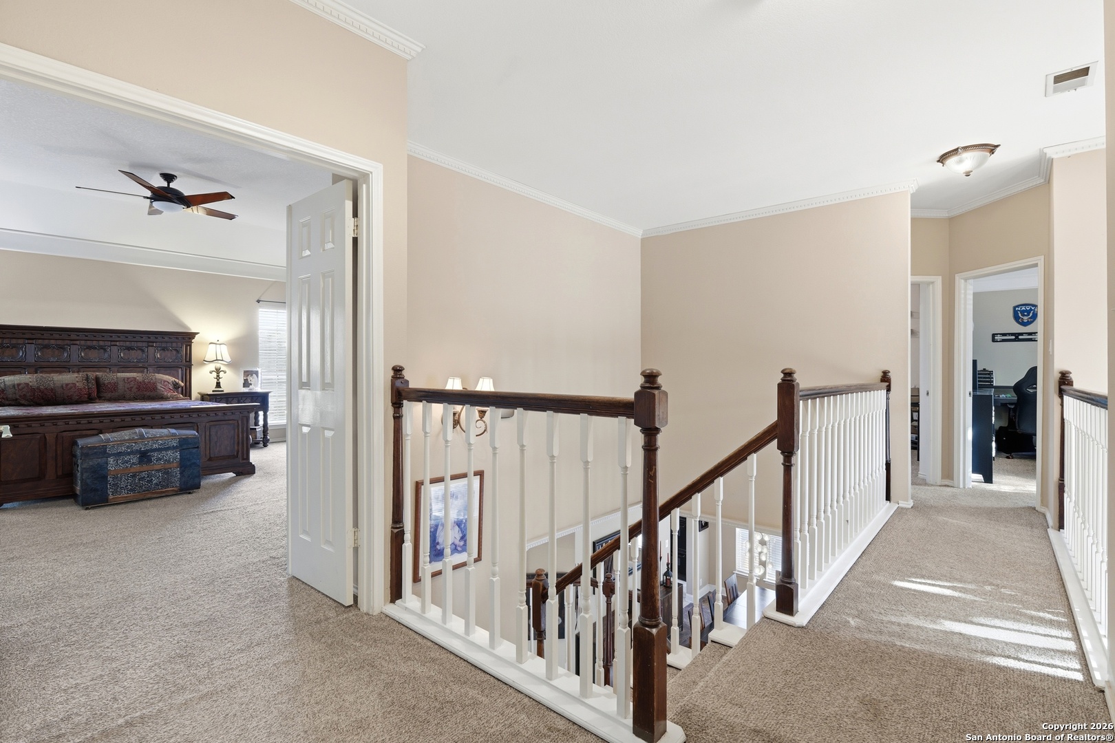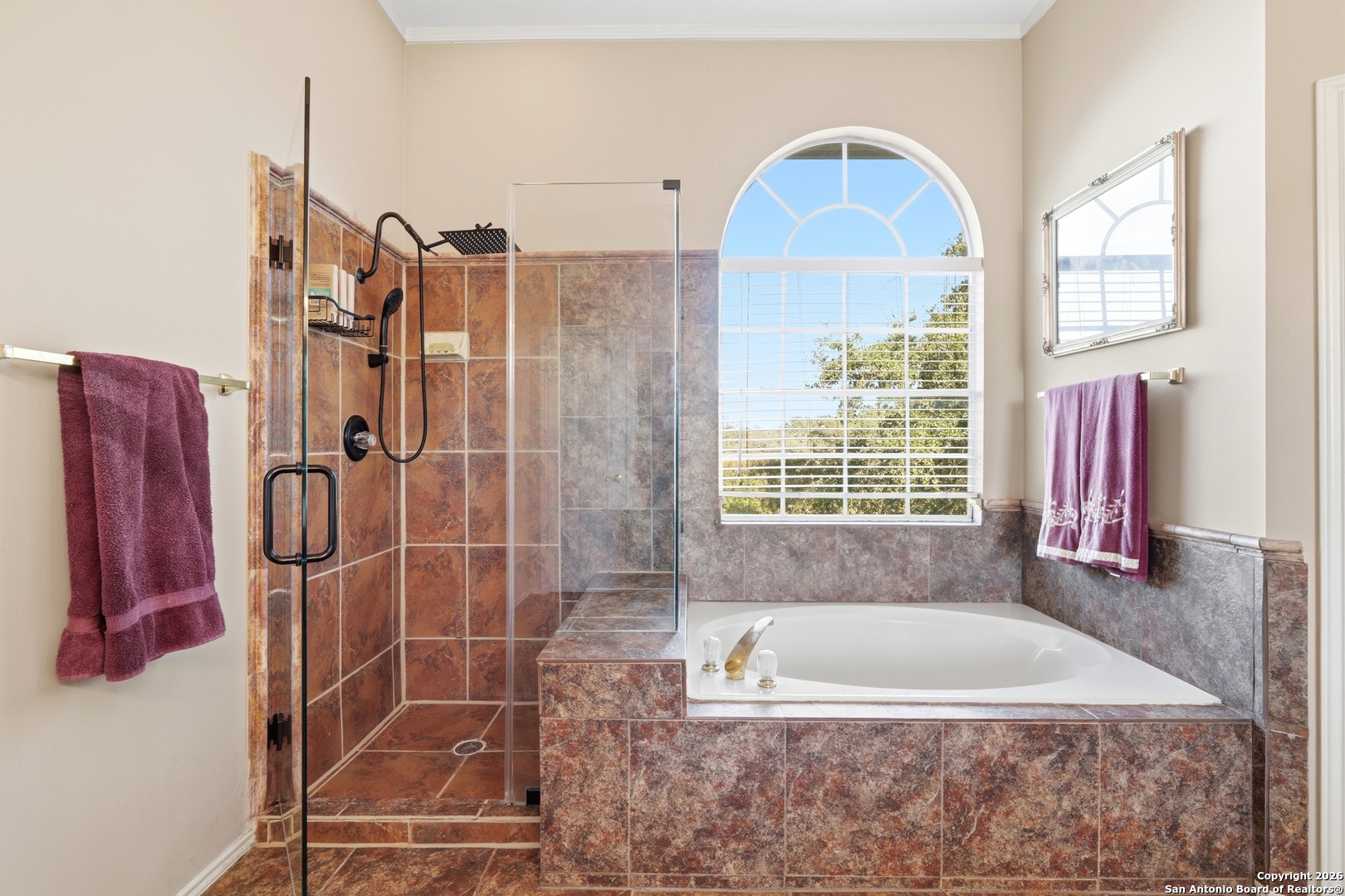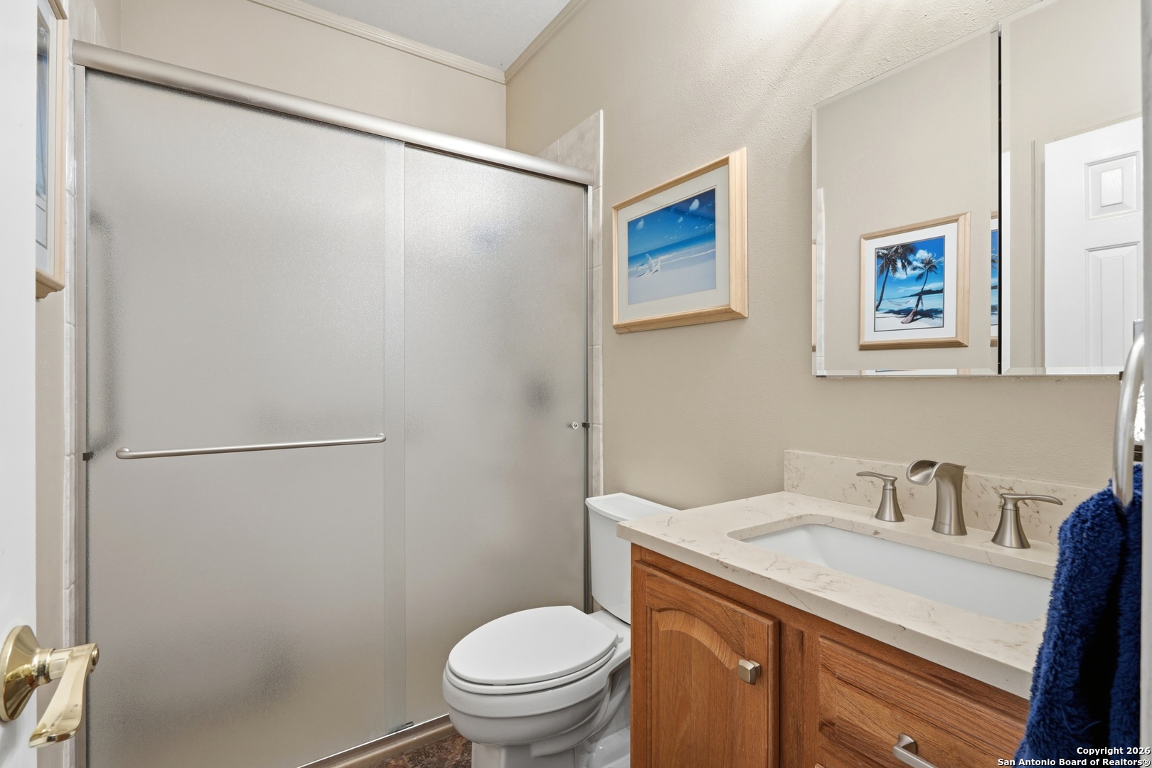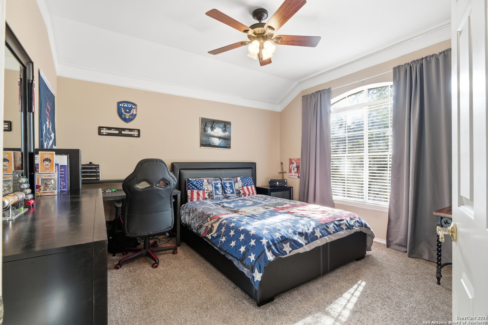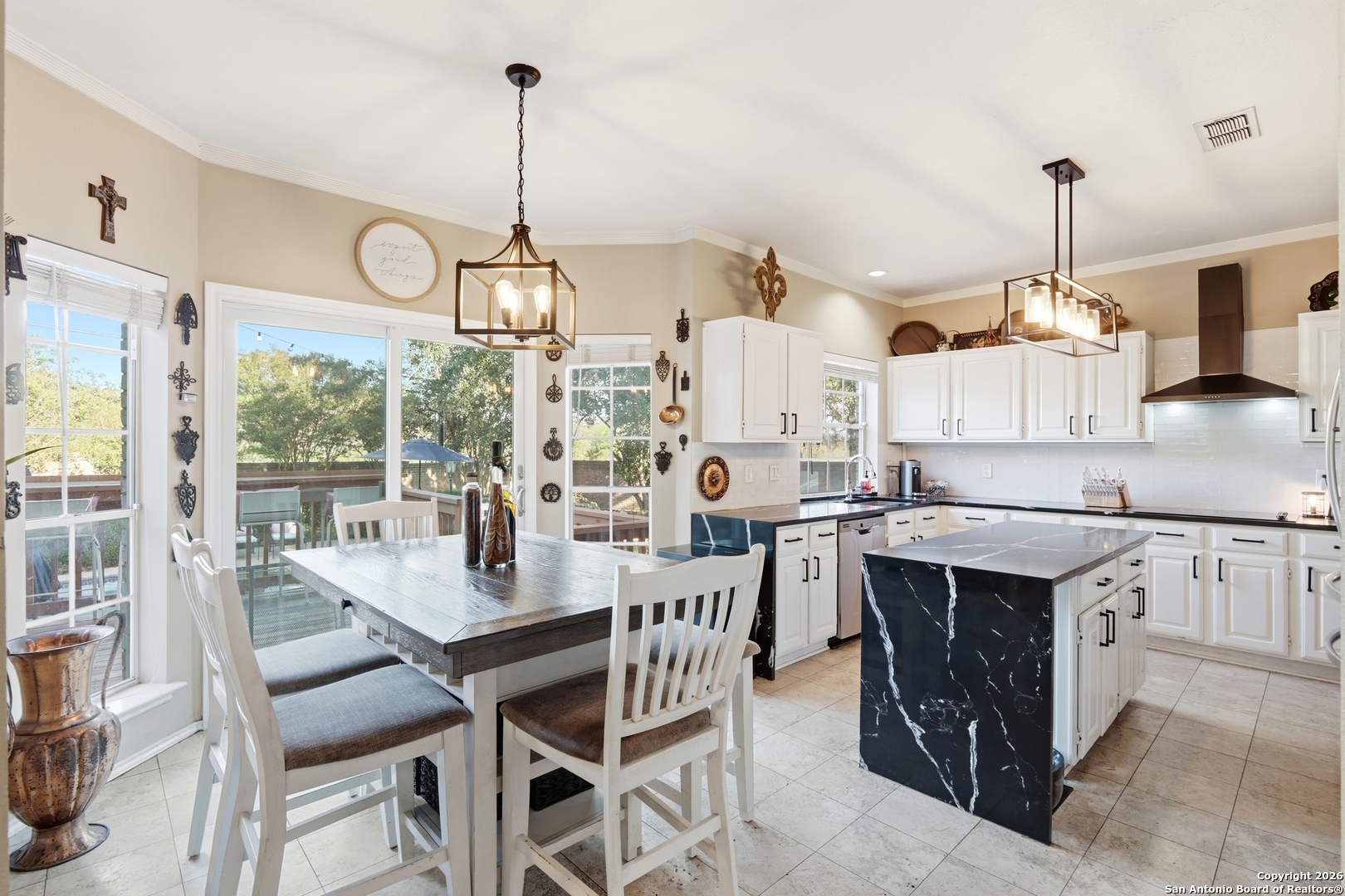 Nestled at the end of a quiet cul-de-sac in Bluffview Heights, this beautifully maintained 5-bedroom, 3-bath residence offers 3,088 square feet of thoughtfully designed living space on an expansive 0.29-acre lot. A soaring, high-ceiling entry welcomes you into the two-story home, where an open and airy floor plan creates an inviting atmosphere throughout. The renovated kitchen shines with quartz countertops, a classic subway tile backsplash, updated hardware, modern lighting, and a newly installed vent hood. It opens seamlessly to a sunny breakfast nook and spacious living area centered around a warm fireplace-ideal for everyday living and entertaining alike. From here, step out onto the oversized deck overlooking the in-ground pool and spa, creating a private outdoor retreat perfect for gatherings or relaxation. The main level also includes a bedroom currently used as a home office and a tastefully updated full bathroom. Upstairs, the generous primary suite is a true escape, featuring dual vanities, a garden tub, a separate walk-in shower with extended glass enclosure, and two walk-in closets. Significant improvements enhance both comfort and peace of mind, including a roof replacement (2016), HVAC system (2017), fresh interior paint and carpeting (2020), siding repairs, lifetime-warranty gutters, and an upgraded electrical panel with generator readiness. Pool updates completed in 2024 include a new pump, plaster finish, and in-pool cleaning jets. Additional touches include updated lighting in multiple living spaces, an outdoor deck bar, upgraded kitchen fixtures, a Vivint security system with five exterior cameras and enhanced floodlighting, and a leased Kinetico water softener. An oversized garage provides abundant room for storage, projects, or extra vehicles. Conveniently located near Hwy 281, Wurzbach Parkway, and a variety of shopping and dining options, this home delivers the perfect balance of location, functionality, and elevated living.