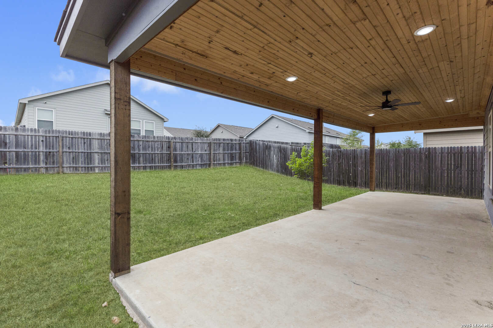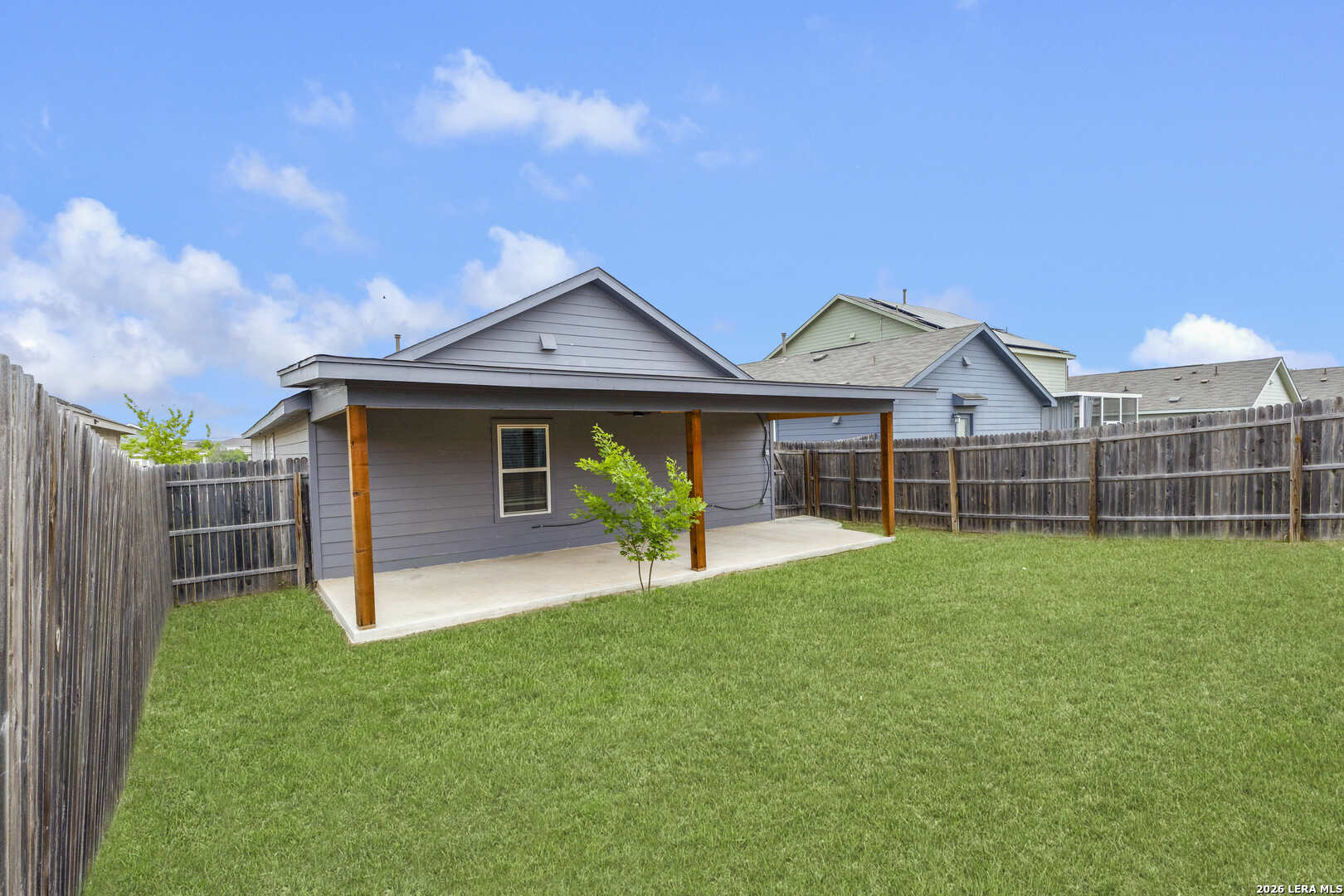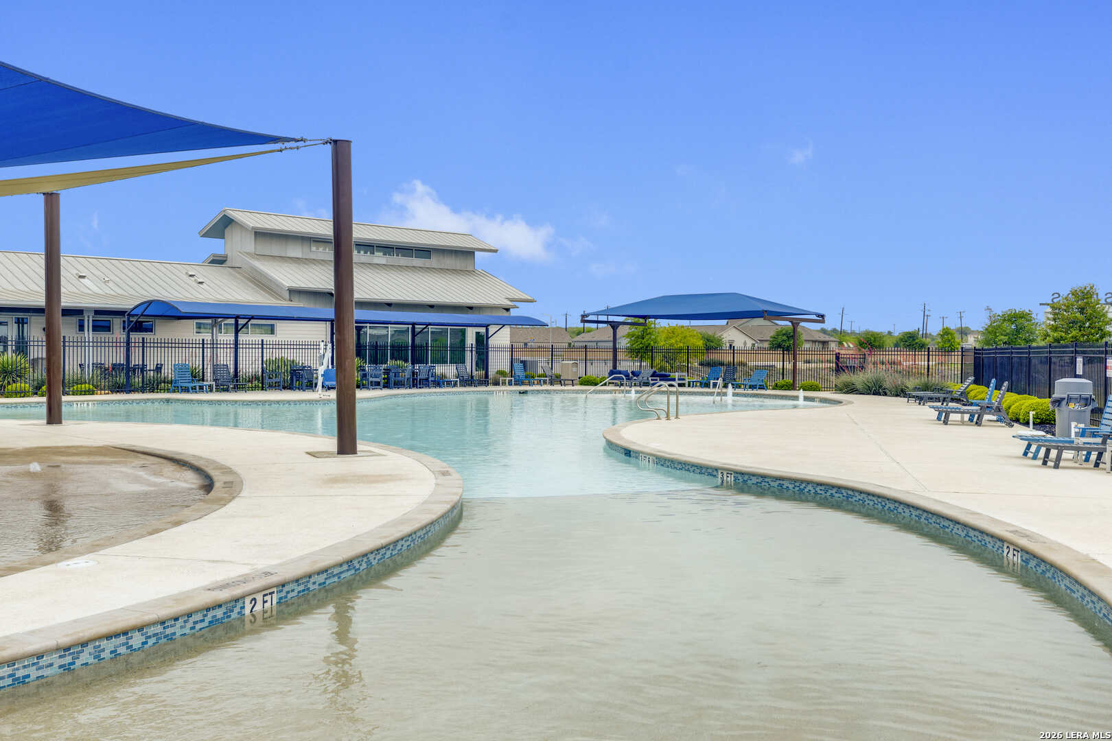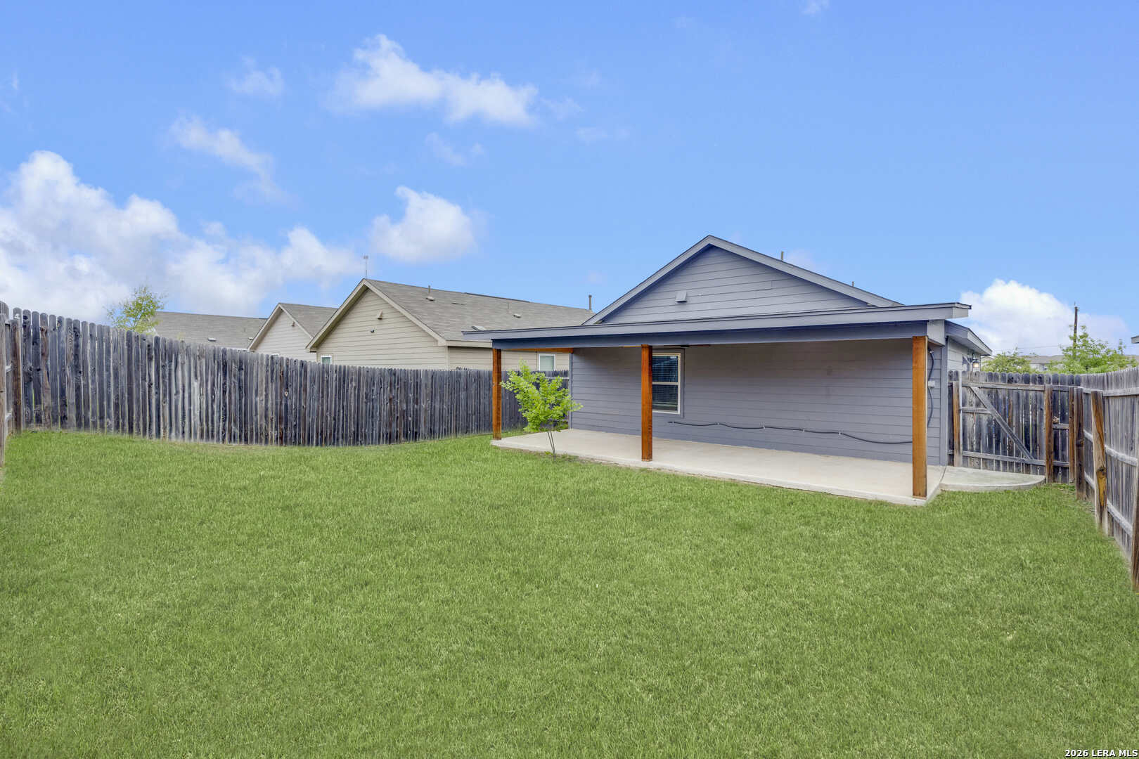 Beautiful 3-Bedroom, 2-Bathroom home with a spacious open-concept floor plan features abundant natural light, recessed lighting, and bright, airy living spaces perfect for entertaining, remote work, or comfortable everyday living. Step outside to enjoy a private backyard retreat complete with a large, custom built covered patio ideal for relaxing or hosting gatherings. Neighborhood amenities include a resort-style pool, playground, fitness center, and amenity center. Conveniently located next to a school with easy access to major highways, shopping, dining, and Lackland AFB. Schedule your showing today!