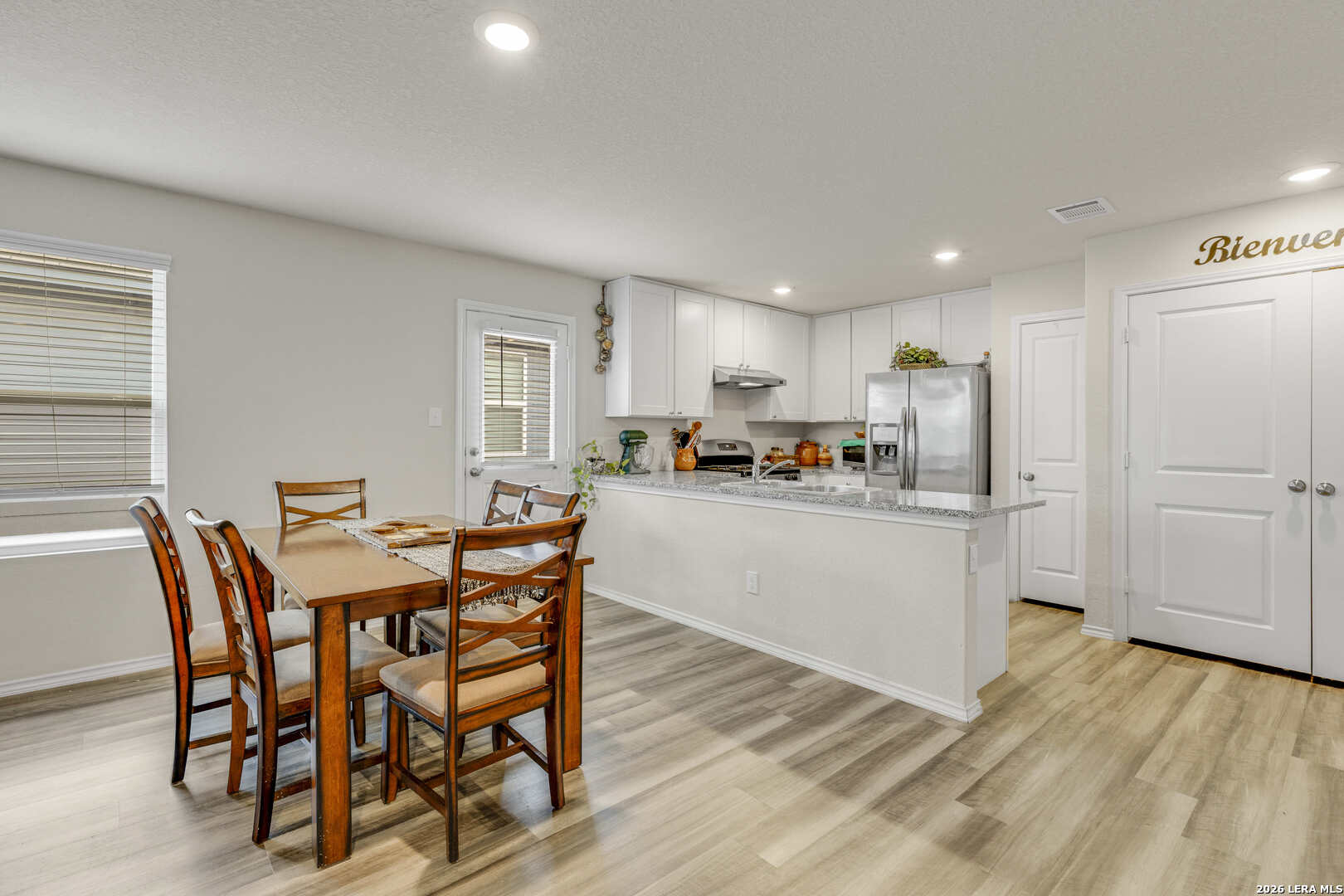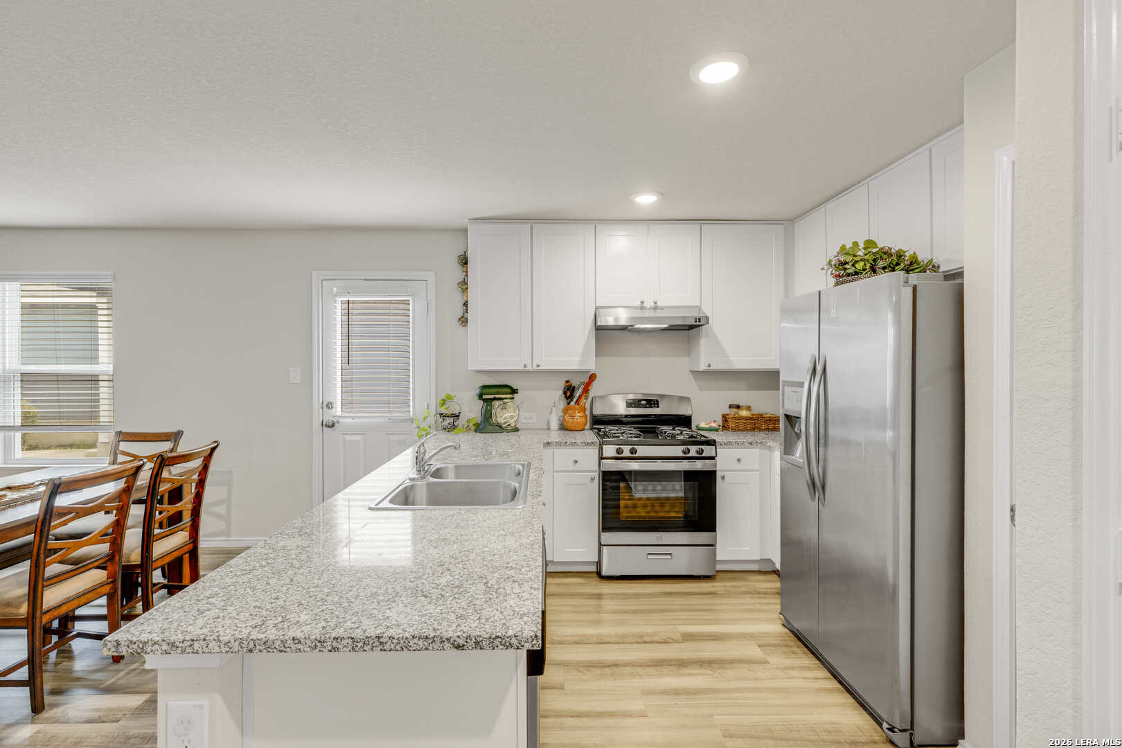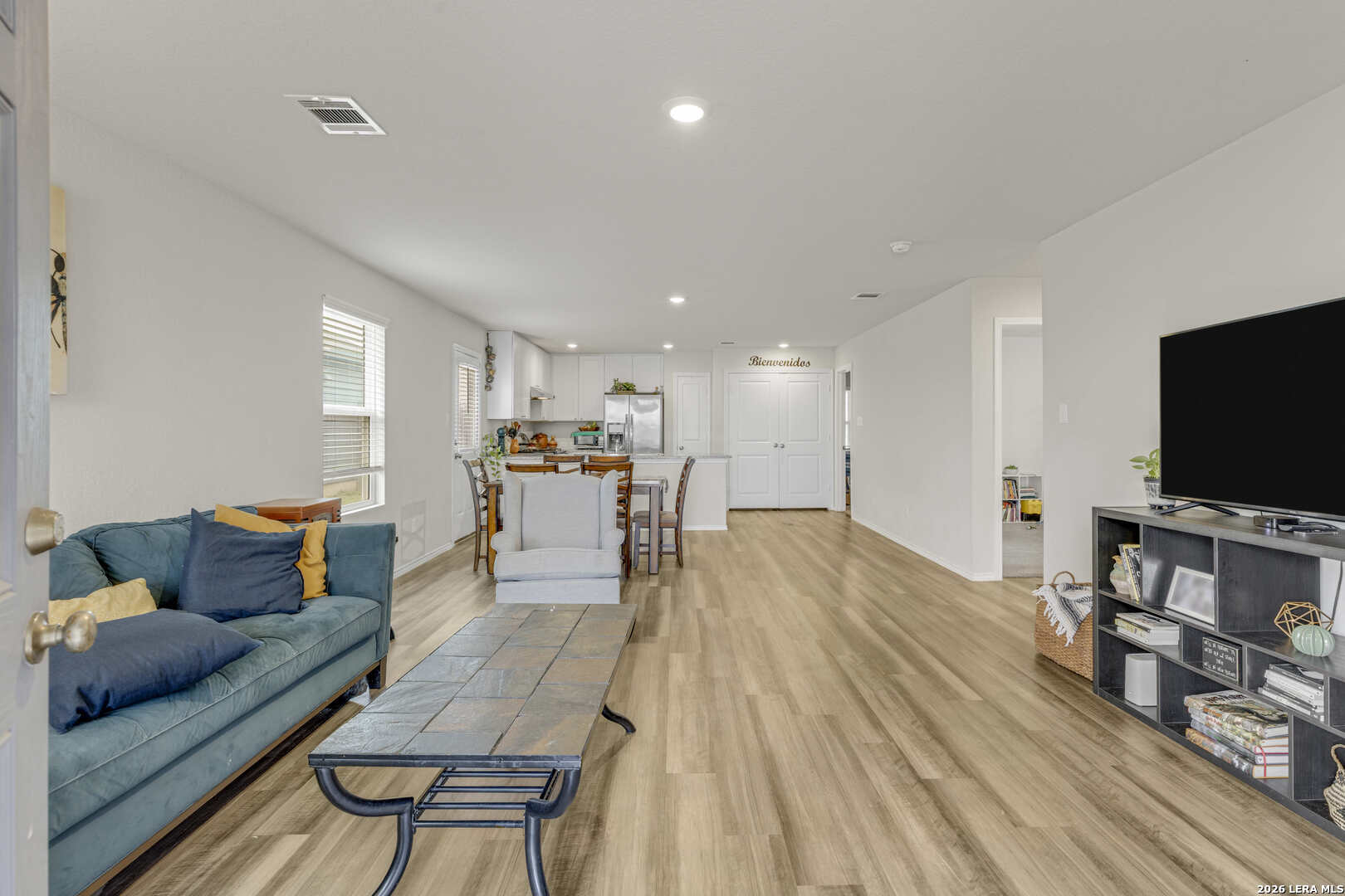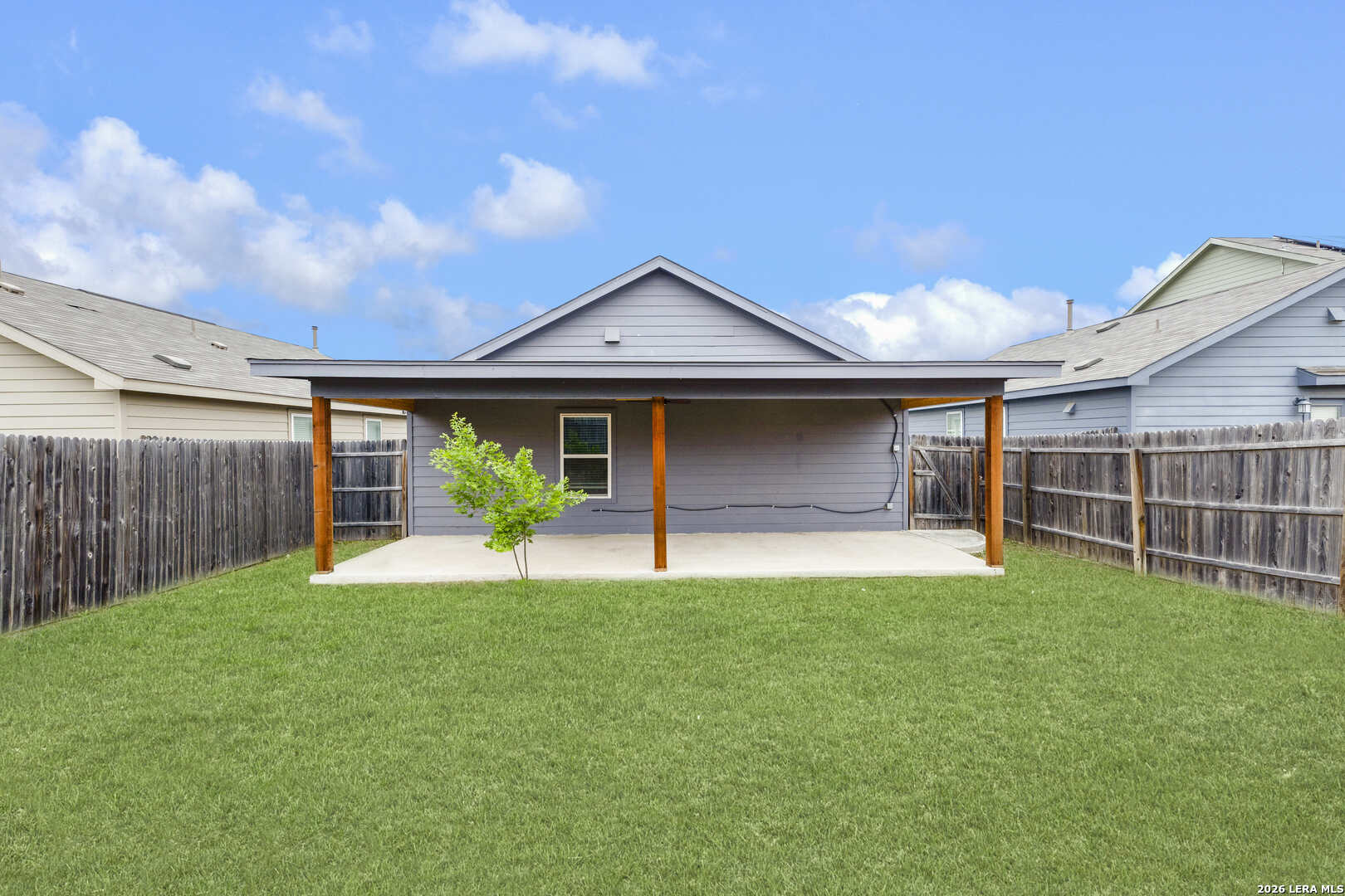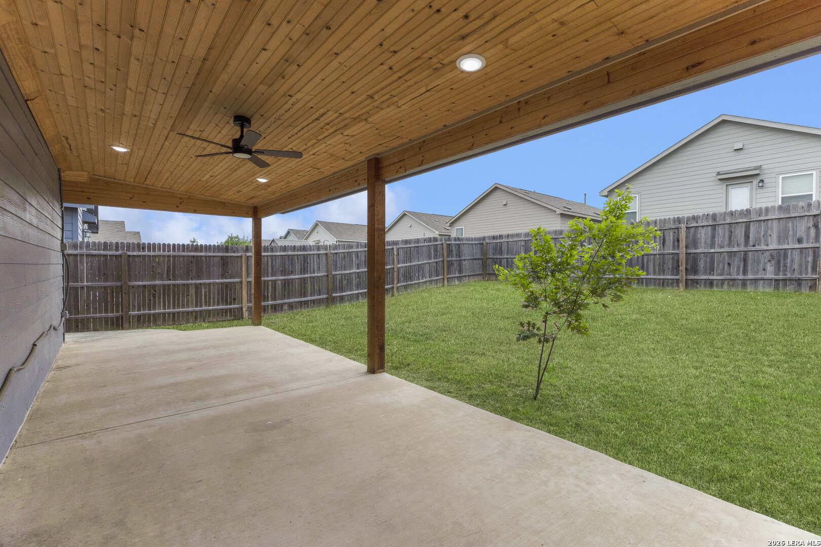Beautiful 3-Bedroom, 2-Bathroom home with a spacious open-concept floor plan features abundant natural light, recessed lighting, and bright, airy living spaces perfect for entertaining, remote work, or comfortable everyday living. Step outside to enjoy a private backyard retreat complete with a large, custom built covered patio ideal for relaxing or hosting gatherings. Neighborhood amenities include a resort-style pool, playground, fitness center, and amenity center. Conveniently located next to a school with easy access to major highways, shopping, dining, and Lackland AFB. Schedule your showing today!