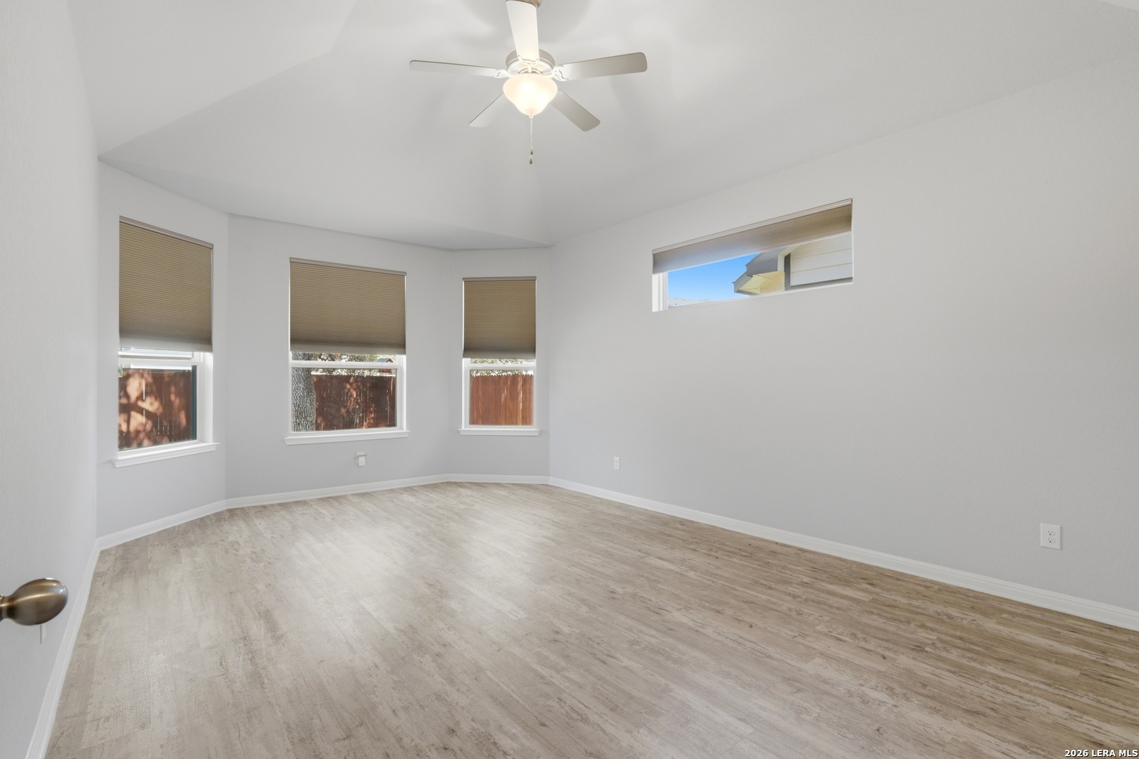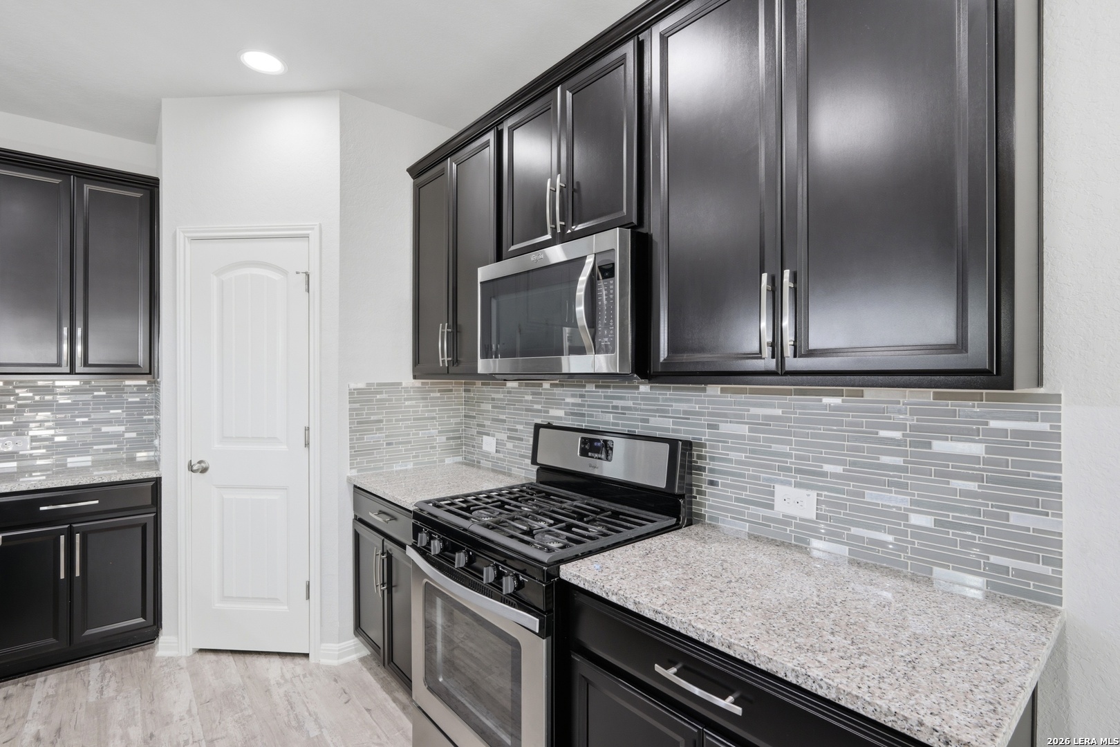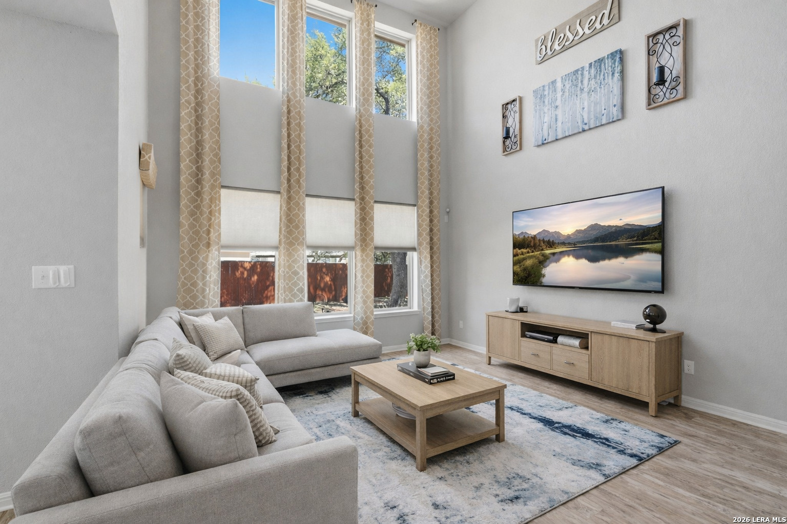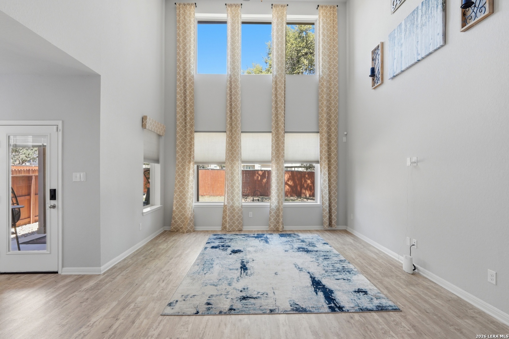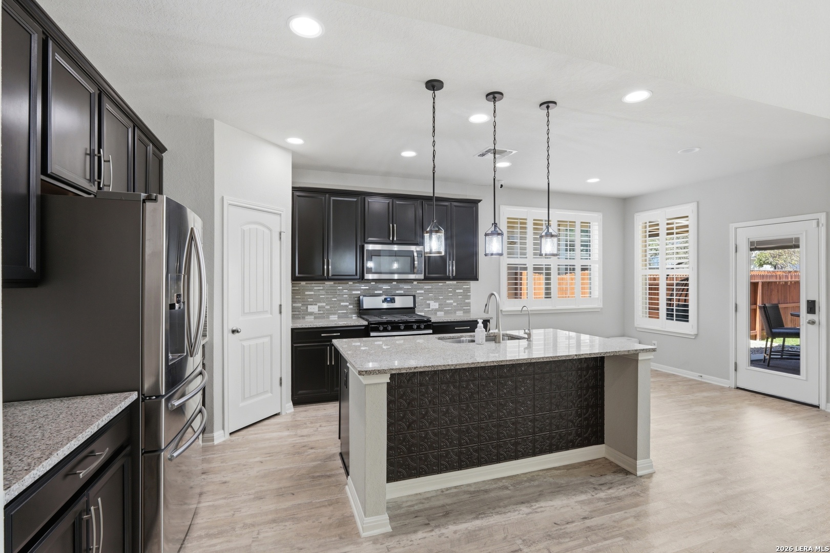 Movie nights will never be the same in this incredible in home theater experience. The upstairs media room is fully equipped with a 110 inch projector screen, 4K projector, in wall surround sound speakers, and a Denon AV receiver supporting Dolby Atmos for true cinematic sound. The setup even includes a concession style station with popcorn machine, drink fridge, and candy display, creating the ultimate space for hosting friends, family, and unforgettable movie nights. Welcome to 13871 Tribeca, a Meritage built home in the Arcadia Ridge community offering 3,226 square feet of thoughtfully designed living space. This two story Craftsman style home features 4 bedrooms, 3 full bathrooms, and a half bath with an open layout and high ceilings that create a bright and inviting feel from the moment you enter. The island kitchen serves as the heart of the home with solid countertops, gas cooking, a walk in pantry, and generous cabinetry, flowing seamlessly into the living and dining areas for everyday living or entertaining. The primary suite is privately located downstairs with a relaxing garden tub, while the main level also includes a study, guest suite, and convenient laundry room. Step outside to enjoy a private backyard retreat with a patio, mature trees, sprinkler system, and privacy fence. The outdoor space is perfect for relaxing or entertaining and includes a patio table with seating for six, a propane fire ring centerpiece, and a zero gravity egg chair for the perfect place to unwind at the end of the day. Located in Arcadia Ridge, residents enjoy access to a community pool, park, and jogging trails within Northside ISD and close proximity to shopping, dining, and major highways.