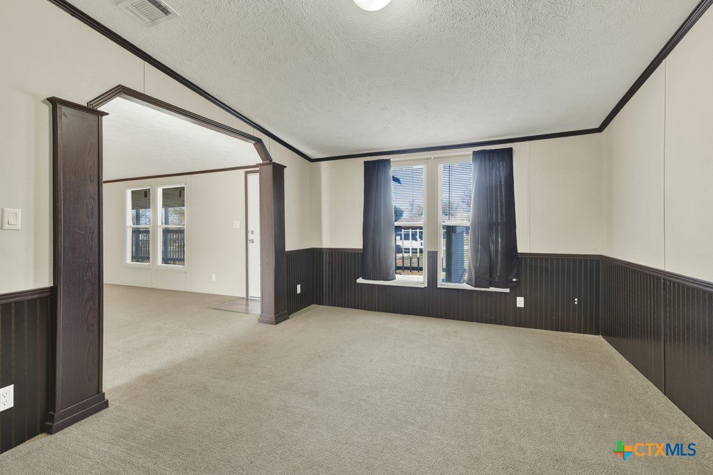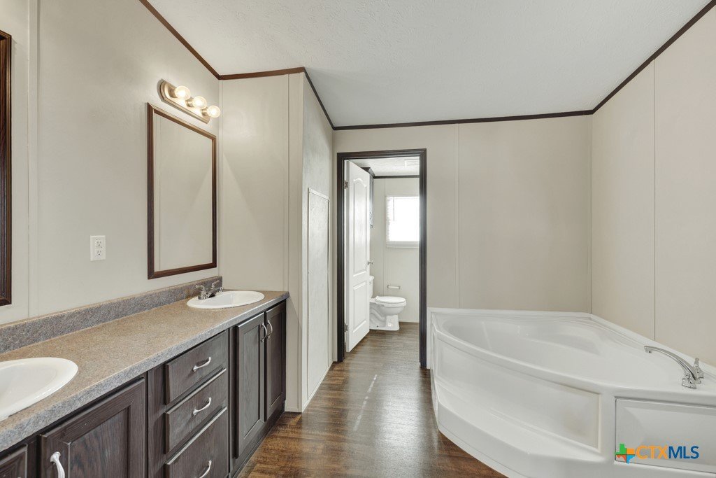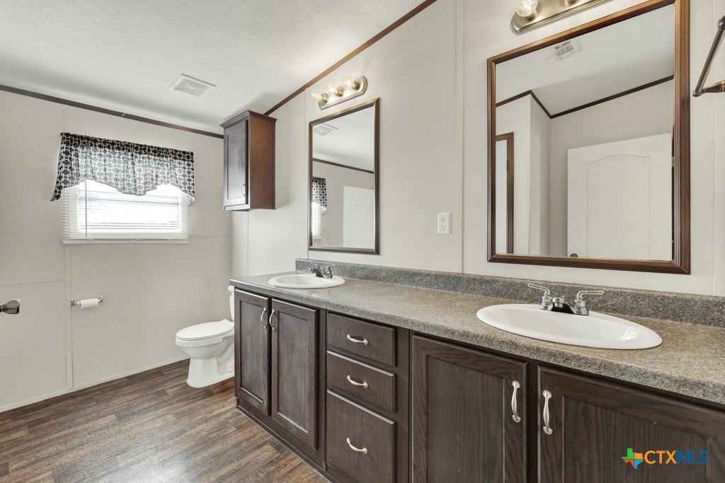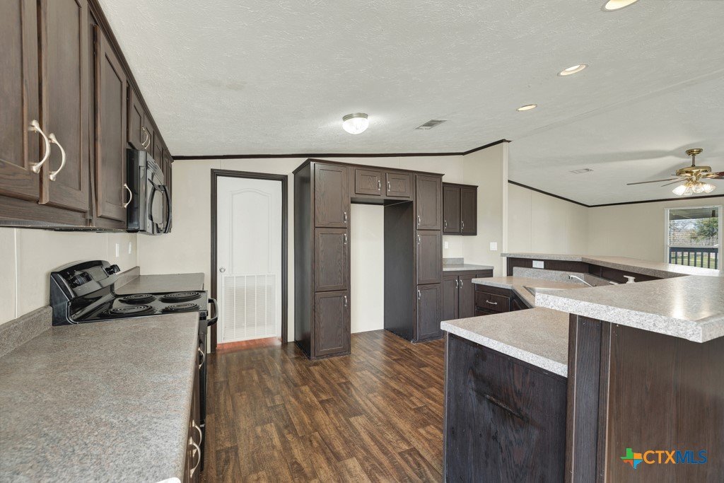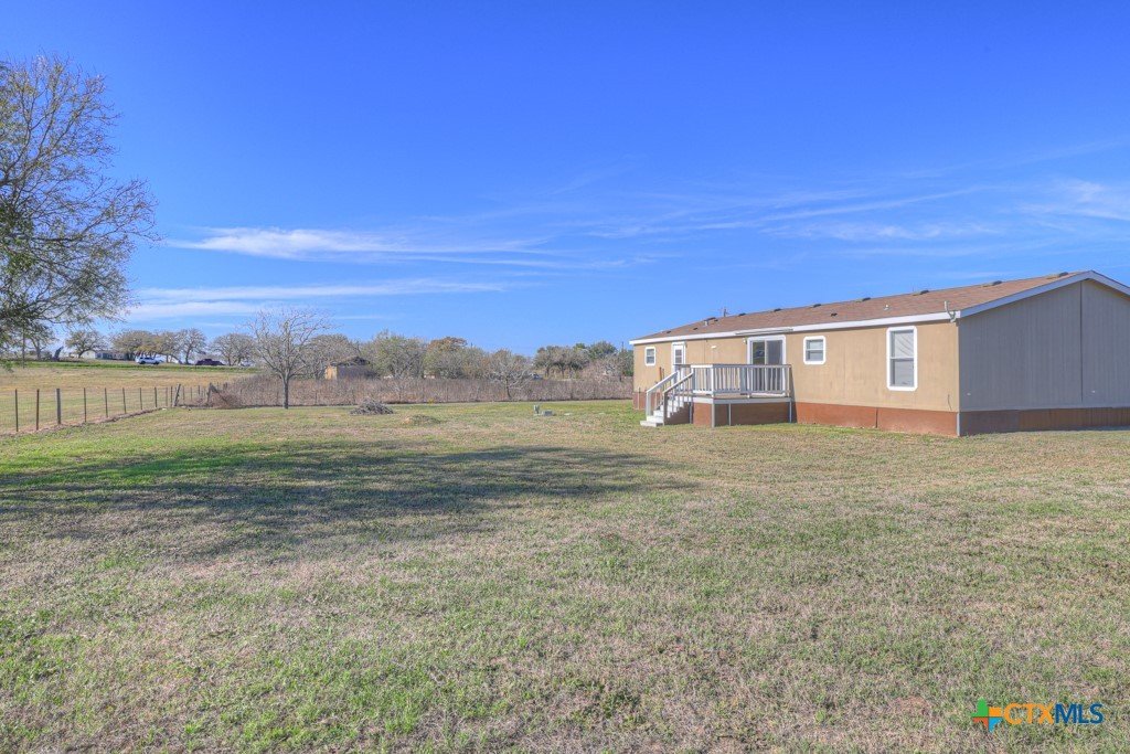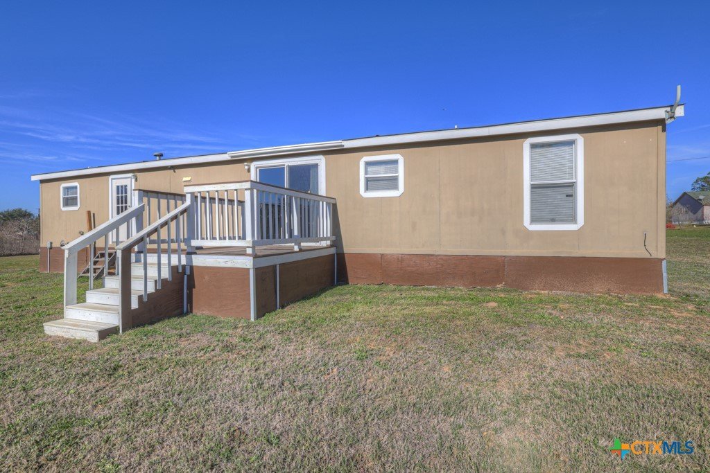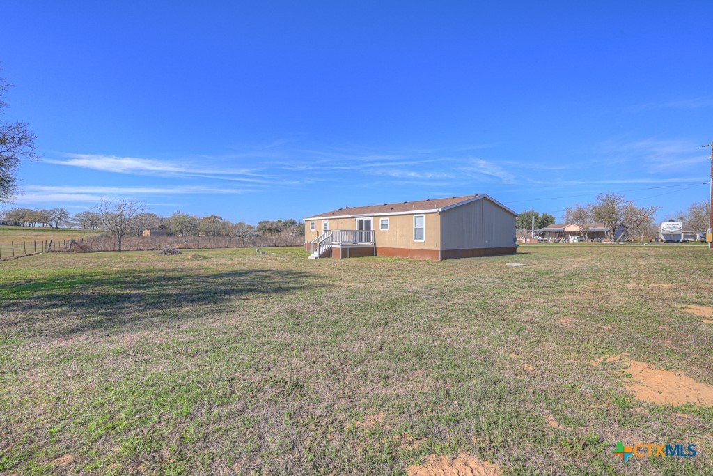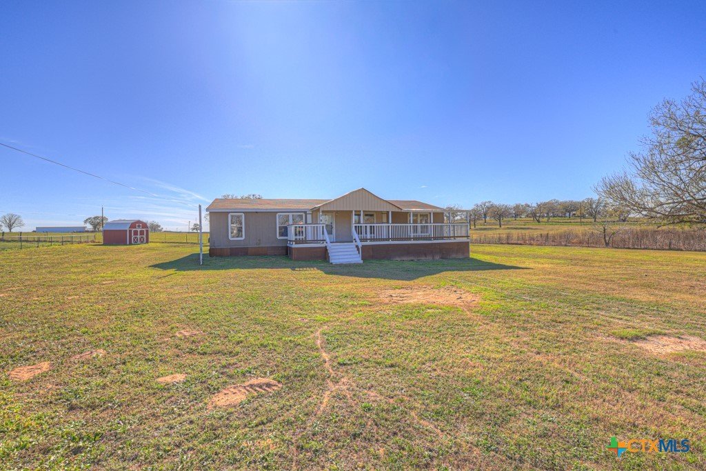 Enjoy peaceful country living just minutes from downtown Seguin. Situated on nearly an acre, this well-maintained double-wide manufactured home was built in 2014 and offers 3 bedrooms and 2 full baths. The open-concept main living area features a gas range, bar seating, dedicated dining space, and a comfortable living room—ideal for everyday living and entertaining. Just off the living area is a versatile flex room that can serve as a home office, formal dining room, or workout space. A covered front porch welcomes you home, while an additional storage building in the backyard adds practical convenience. Located near shopping, restaurants, schools, and with easy access to I-10 for a smooth commute to San Antonio and nearby military bases.