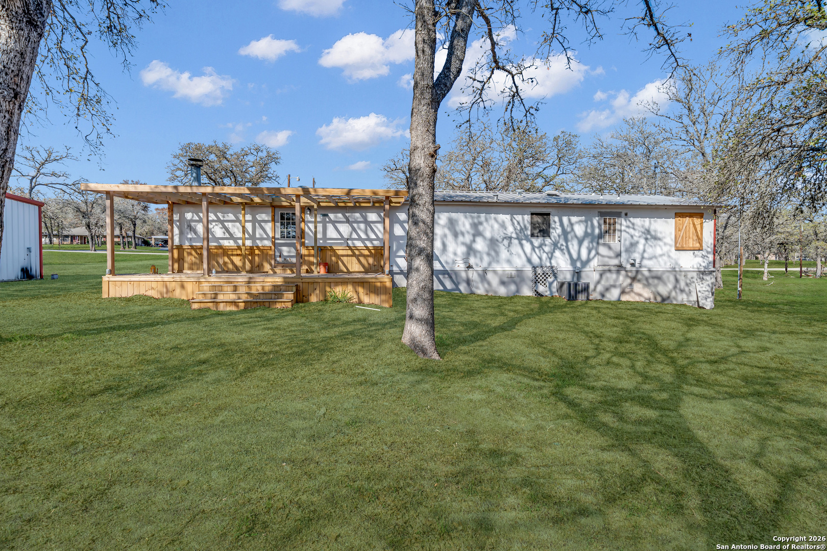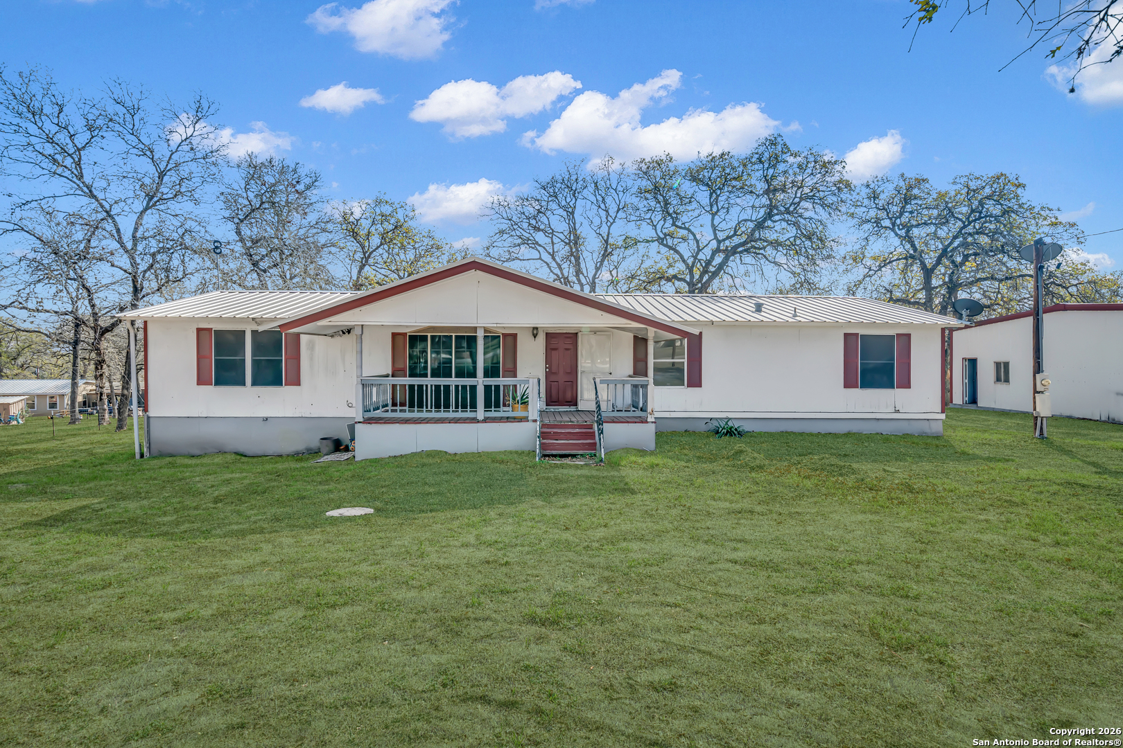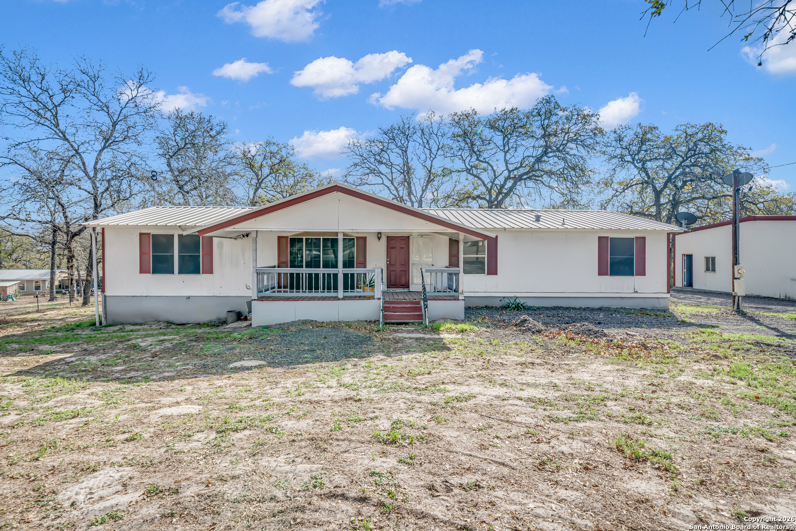 Situated on a peaceful, tree-surrounded lot at 139 Pullman Rd in La Vernia, this property offers true country living with the convenience of being just minutes from town. The home features a beautifully updated primary bathroom with an oversized walk-in shower and warm cedar wood accents. Inside you'll find three bedrooms, two bathrooms, and two living spaces, one highlighted by a cozy fireplace. Outside, you'll find an expansive deck as well as an oversized double-bay workshop with drive-around access making this property ideal for projects. This property is a great opportunity for those looking to add value in a highly desirable location. Professional photos coming soon.