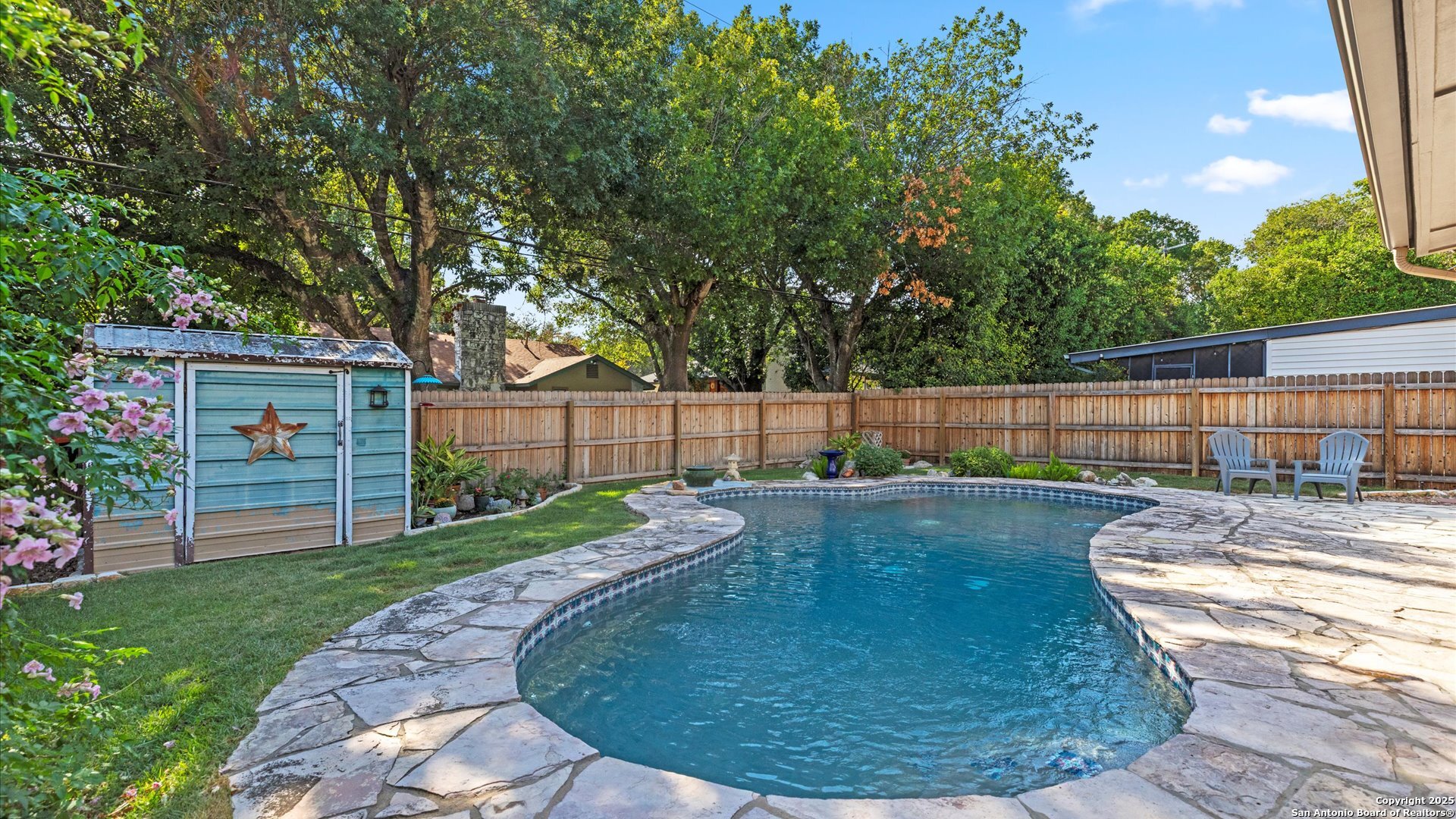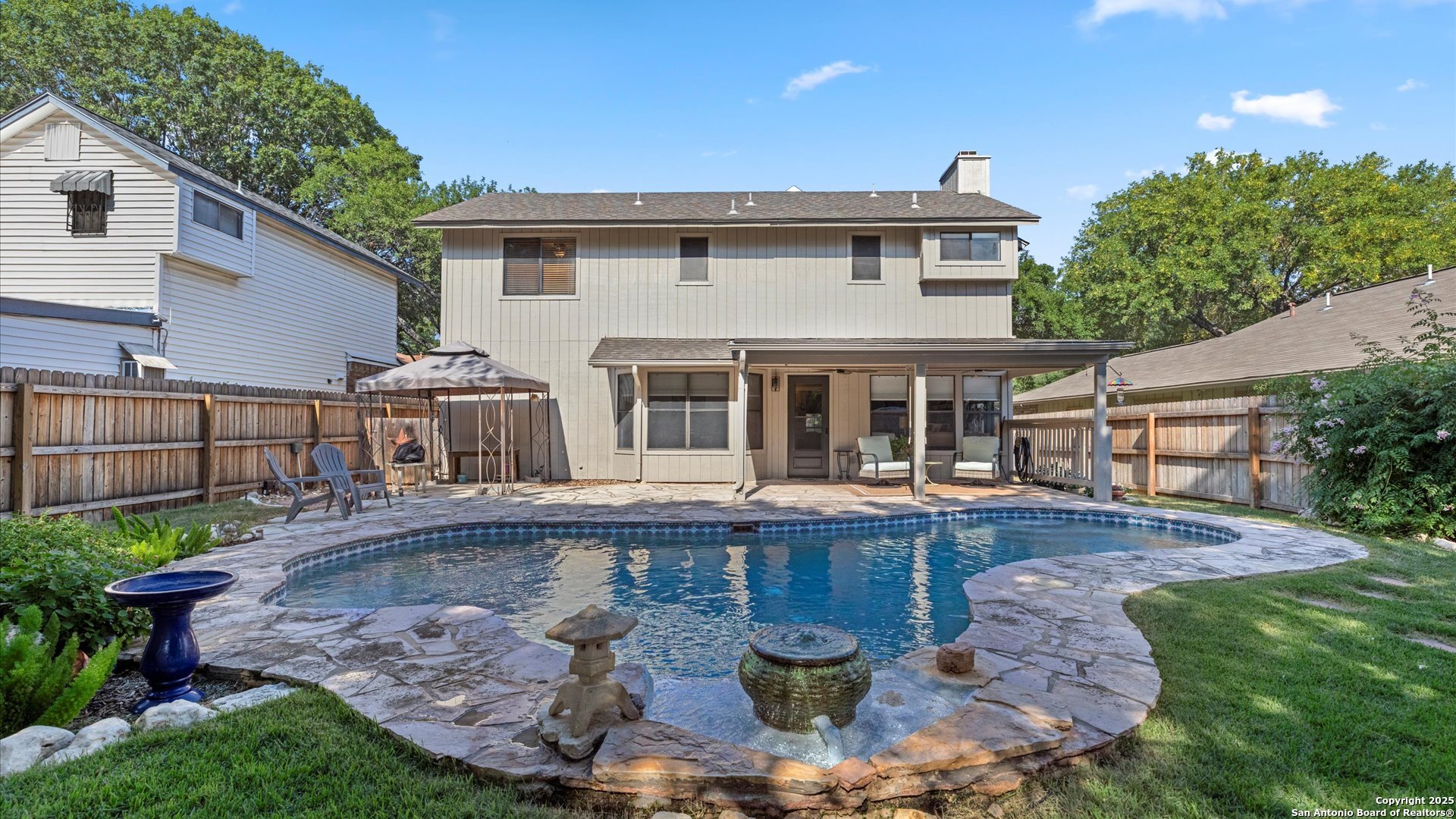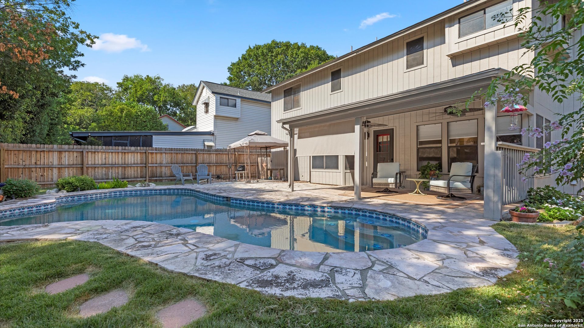 Welcome to this beautifully maintained 3-bedroom, 2.5-bath home tucked away in the established Oak Hollow Village neighborhood, just down from McAllister Park and conveniently situated between Jones Maltsberger and Highway 281. Step inside to find a bright and inviting space featuring tile and laminate flooring throughout, a beautifully upgraded master bath, and a layout designed for comfort and everyday living. This home has been lovingly cared for with numerous recent upgrades, including a newer roof, water heater, and dishwasher. The HVAC system is just 2 years old, the siding is brand new, and the backyard features a new fence-offering peace of mind for years to come. Step outside to your private backyard oasis featuring an in-ground pool surrounded by flagstone-perfect for relaxing or entertaining family and friends. Additional touches include a refrigerator that stays with the home, making it move-in ready. Thoughtful updates, pride of ownership, and modern comfort come together seamlessly in this charming Oak Hollow Village gem.