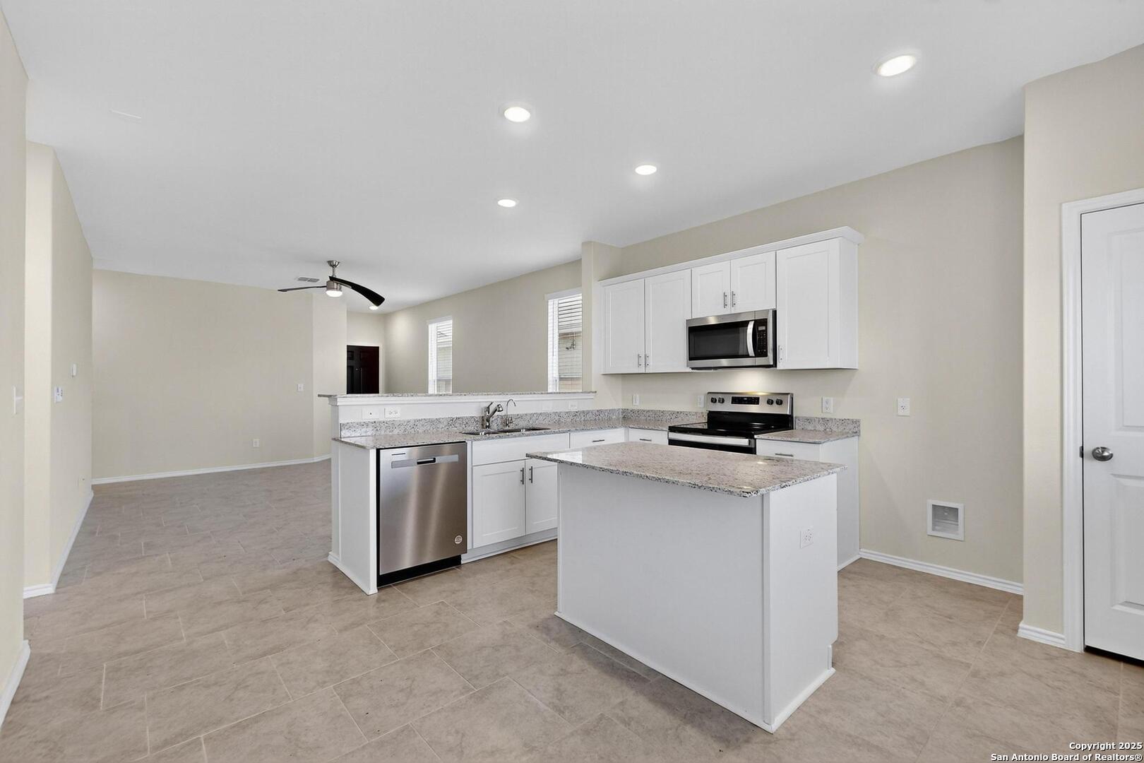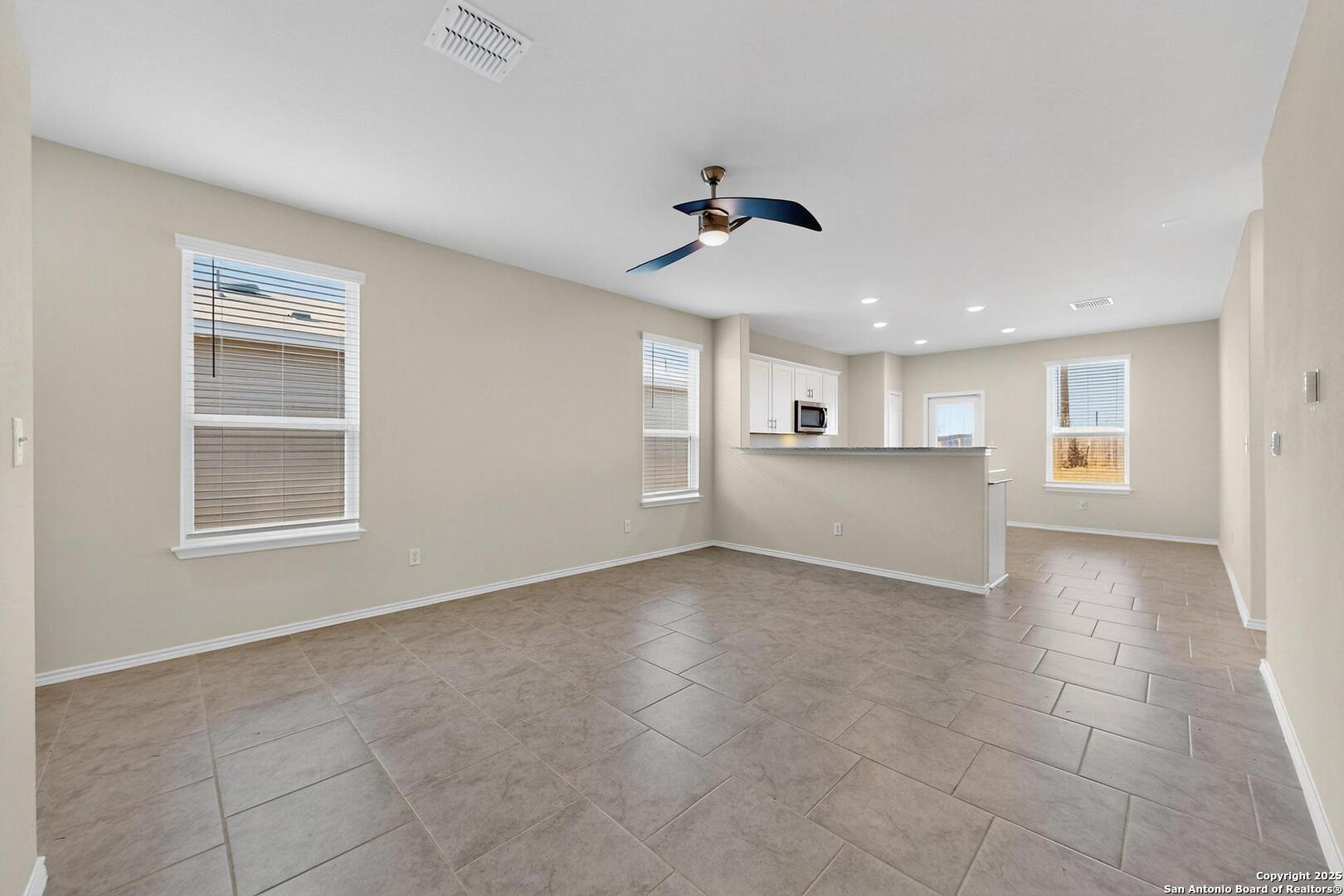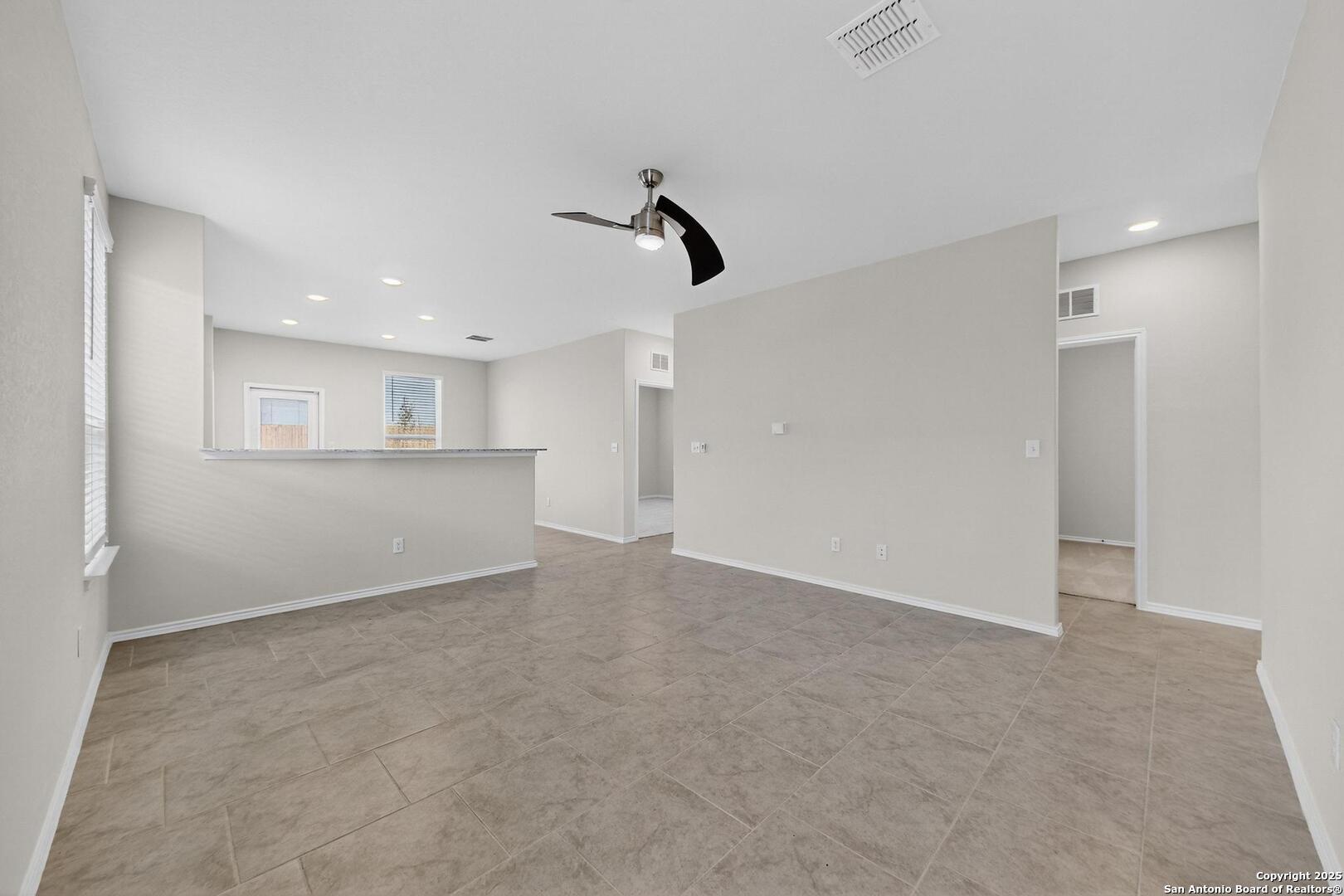 Move in Ready single story, with brick elevation and welcoming front porch. Open floorplan with nine foot ceilings, with an open kitchen. Kitchen features an island, granite countertops, stainless steel appliances and 36" kitchen cabinets. Ceramic tile in main living areas and carpet in the bedrooms. Primary Bedroom has full bath with walk in shower. Exterior has no backyard neighbors and good sized backyard. Located just minutes from Lackland AFB, SeaWorld, shopping, dining, and more. This home has it all-plus a excellent price that makes it one of the best deals in the area! Schedule your showing today before it's gone!
