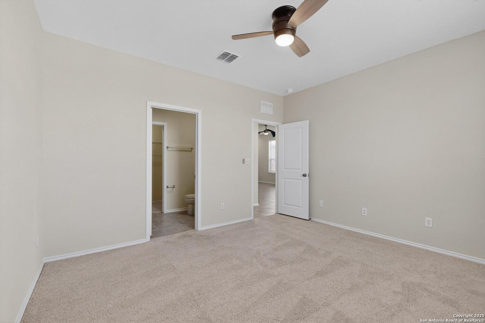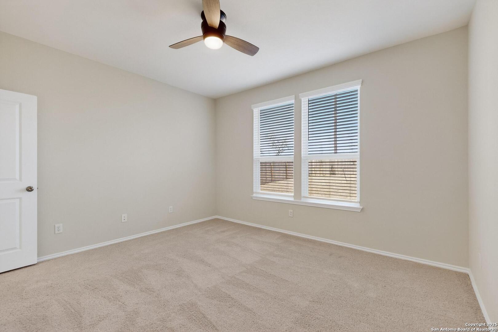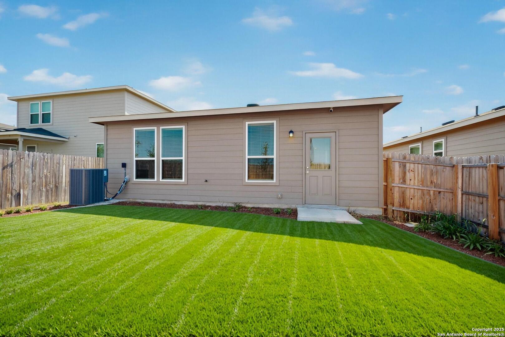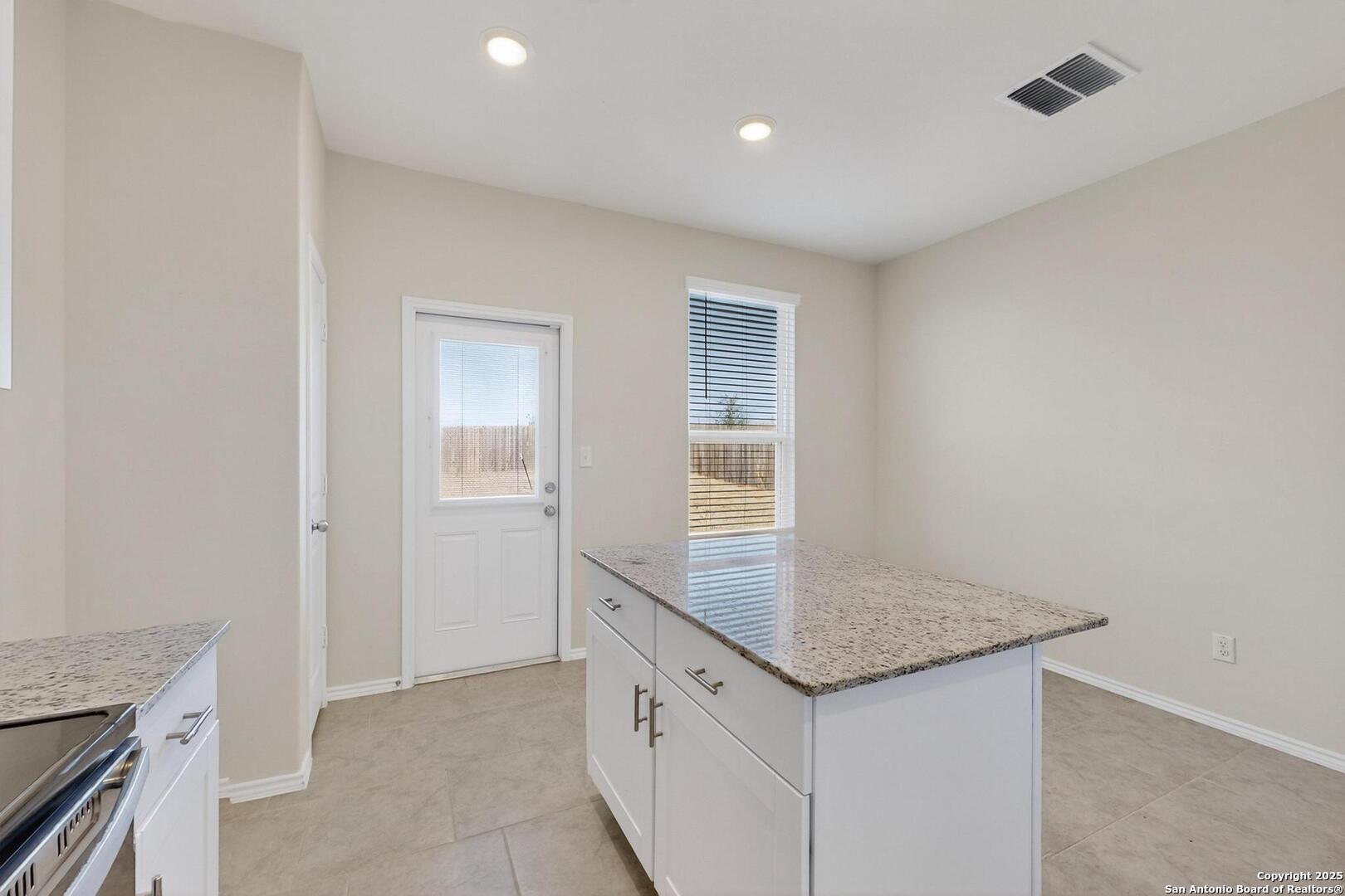 Move in Ready single story, with brick elevation and welcoming front porch. Open floorplan with nine foot ceilings, with an open kitchen. Kitchen features an island, granite countertops, stainless steel appliances and 36" kitchen cabinets. Ceramic tile in main living areas and carpet in the bedrooms. Primary Bedroom has full bath with walk in shower. Exterior has no backyard neighbors and good sized backyard. Located just minutes from Lackland AFB, SeaWorld, shopping, dining, and more. This home has it all-plus a excellent price that makes it one of the best deals in the area! Schedule your showing today before it's gone!