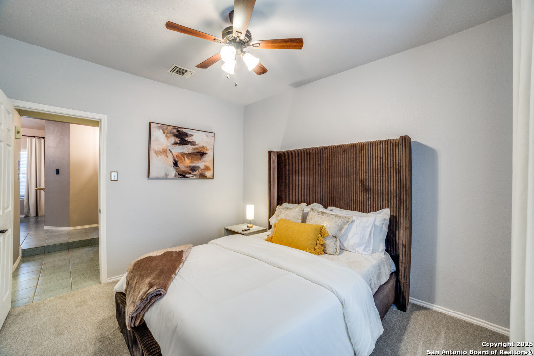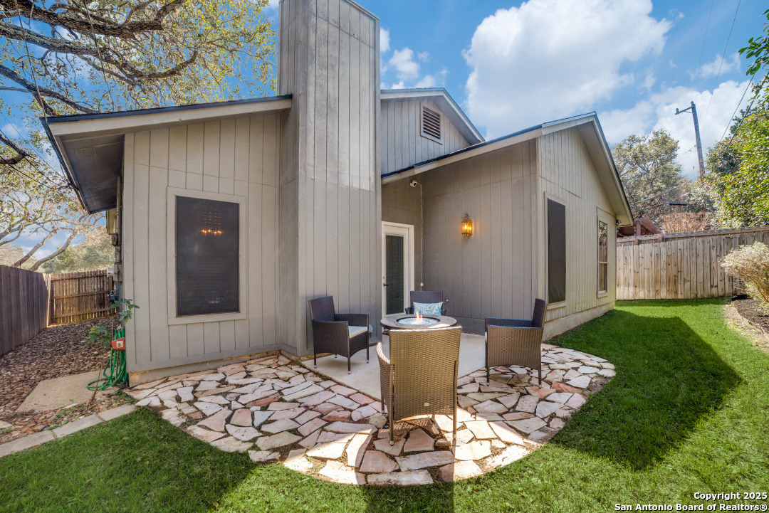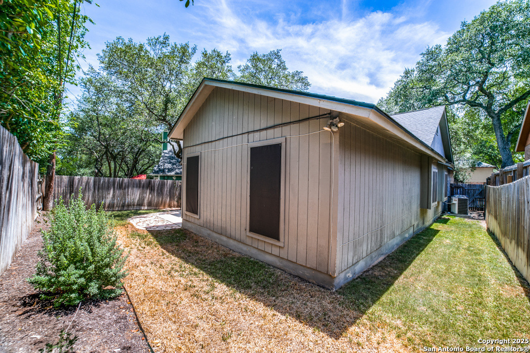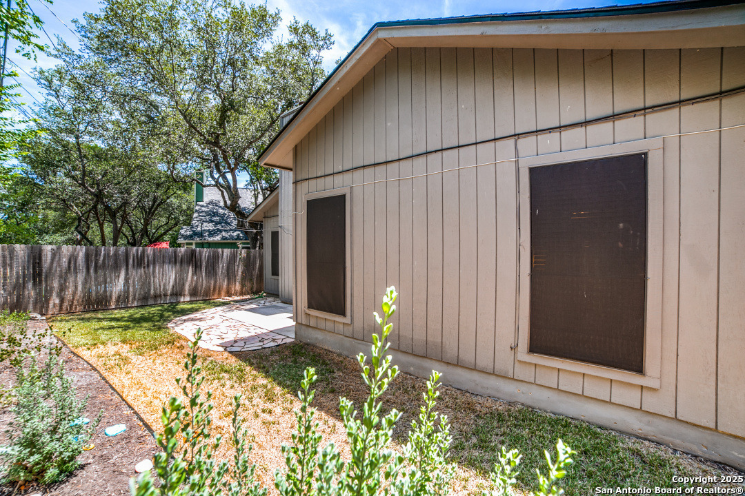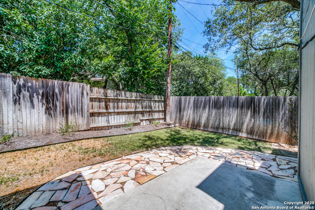 Prime location of San Antonio! Right off NW Military Highway and Salado Creek Trail. Highly sought after schools and lots of amenities close by including shopping and dining. Beautiful well kept one story, 3 bedroom, 2 bath home with a 2 car garage. Unique floor plan, with high ceilings throughout, two secondary bedrooms, one with an access door to a full bathroom. The spacious master bedroom was painted a dark grey for a deeper sleep on the weekends and the master bath has upgraded tile throughout with a tub/shower garden tub combo, oil rubbed bronze fixtures, a single vanity and a separate door to the toilet. Carpets replaced 2021, roof replaced 2022 and HVAC recently serviced. Four extra parking spaces with an elongated driveway! spacious 2 car garage as well. Pets are negotiable. Schedule your showing today!