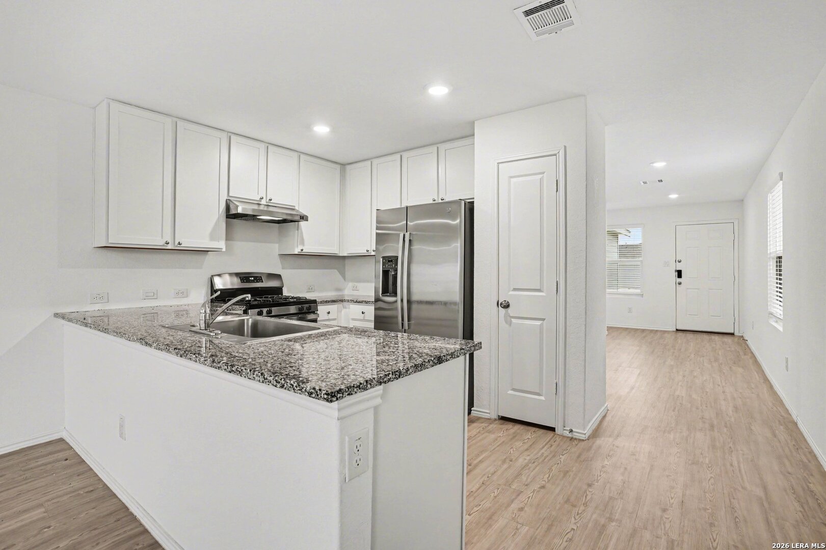 Move-in ready four-bedroom, two-bathroom home in the desirable Silos subdivision. This residence features a spacious open floor plan that creates a seamless flow throughout the main living areas, complemented by a combination of tile and carpet flooring. The kitchen serves as a functional heart of the home, featuring durable granite countertops and stainless-steel appliances. The primary suite offers a private retreat, complete with an attached bathroom and a large walk-in closet for ample storage. Three additional bedrooms provide versatile space suited for a variety of lifestyles. This home is close to all things San Antonio and perfect for first-time homebuyers. Schedule your private showing today!
