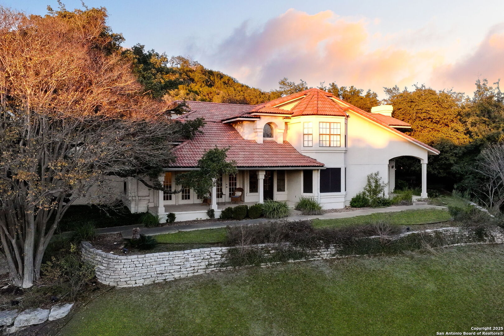 Nestled on a sprawling 0.8-acre hilltop in the prestigious Dominion Estates, this extraordinary home offers elegance, functionality, and breathtaking views. With a thoughtfully designed open floor plan, soaring cathedral ceilings, and custom details throughout, this property is truly one of a kind. The gourmet kitchen boasts a built-in breakfast nook, ample counter space, and a seamless flow to the breakfast area. The oversized primary suite, conveniently located downstairs, features a cozy seating area with patio access. The luxurious en suite bathroom includes dual vanities, a garden tub, a custom walk-in shower, and two spacious walk-in closets. Upstairs, you'll find four generously sized secondary bedrooms, including a secondary master with a private en suite bathroom. A versatile loft area overlooks the living space, while a finished playroom, tucked inside one of the bedrooms, adds a unique touch. Hardwood floors enhance the downstairs living areas, with plush carpeting in all bedrooms for added comfort. The home also features a three-car garage, a stunning front porch perfect for enjoying views of the Dominion, and a tile roof installed in 2021. This custom-built masterpiece seamlessly blends luxury, comfort, and charm-don't miss your opportunity to call it home! Note: HOA has One time special assessment of $3,500.00 payable by buyer for new property owners.