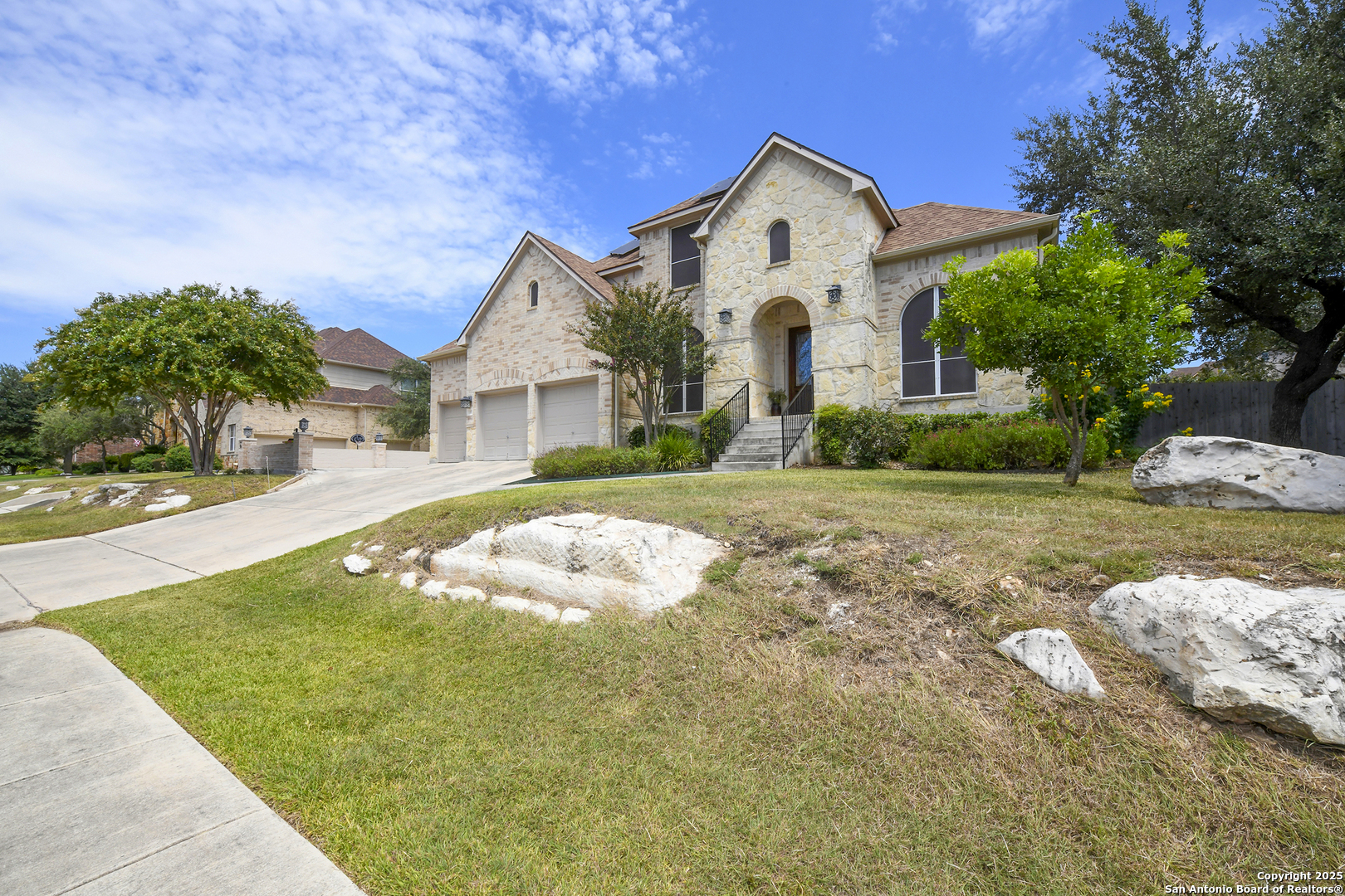 *Video Available* Key Features: All bedrooms have en-suite bathrooms with primary bedroom and a guest room downstairs (4bedroom/4.5bath), 42 solar panels (Annual savings of $3K-$4K), 3-car garage + 2-car pad, 3650sqft of living area (including an office, multiple living areas, 2 game rooms), real maple hardwood flooring, 700+ sqft of storage, a large .35 acre lot, located in the desirable and gated Mesa Grande (Stone Oak). This home has been very well maintained, cared for, and loved by the seller and has a lot to offer a buyer. Schedule a tour and fall in love with this home and location!
