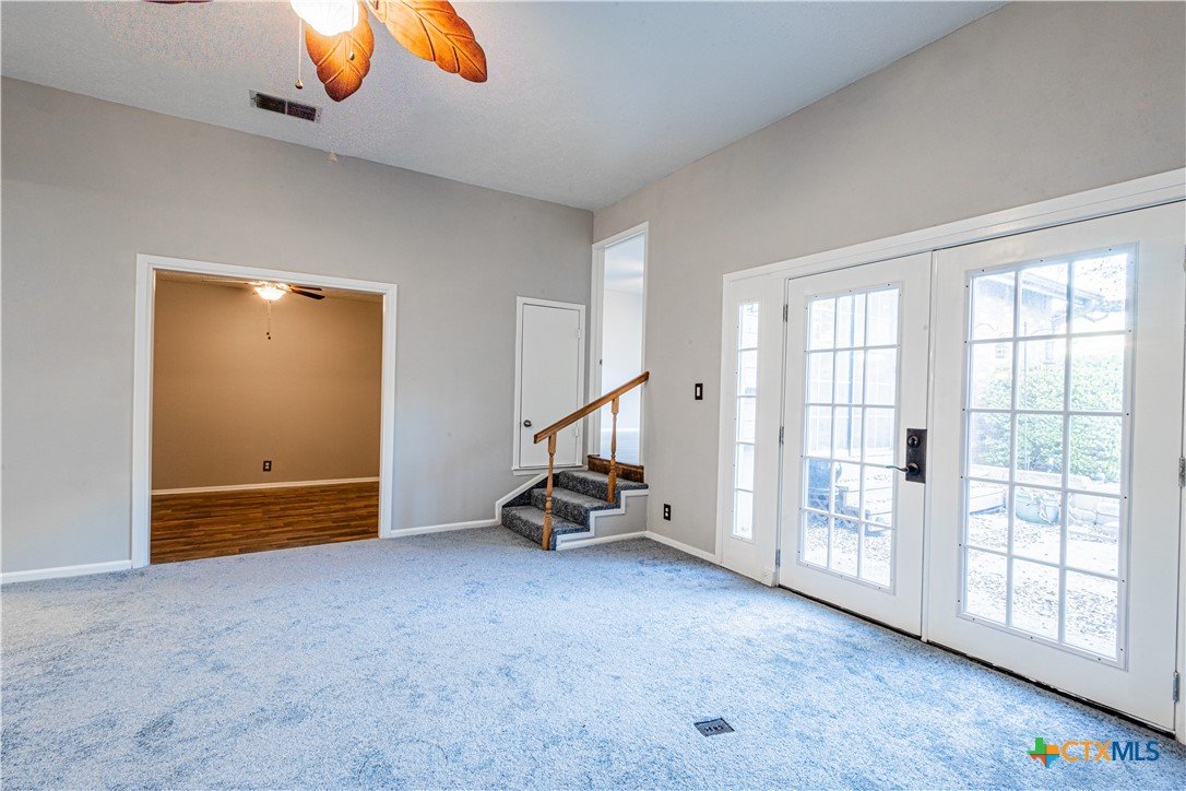 Soak in the quiet, tree lined drive through this condominium community just a minute from FM 306 and a few more minutes to a Canyon Lake boat ramp! Private, enclosed, rot iron back patio is perfect for those morning sips of coffee and evening spirits, too. Walk inside to a wood burning stove for those chilly days. Plenty of glass sliding doors for natural lighting. New carpet, fresh paint, new refrigerator, new dishwasher, new water heater, new faucets, hardwired smoke detectors and ready security system with new membership. Two car garage at street level with access to condo from exterior stairwell. Total acreage is for 32-unit condo community in its entirety and not the single condo.