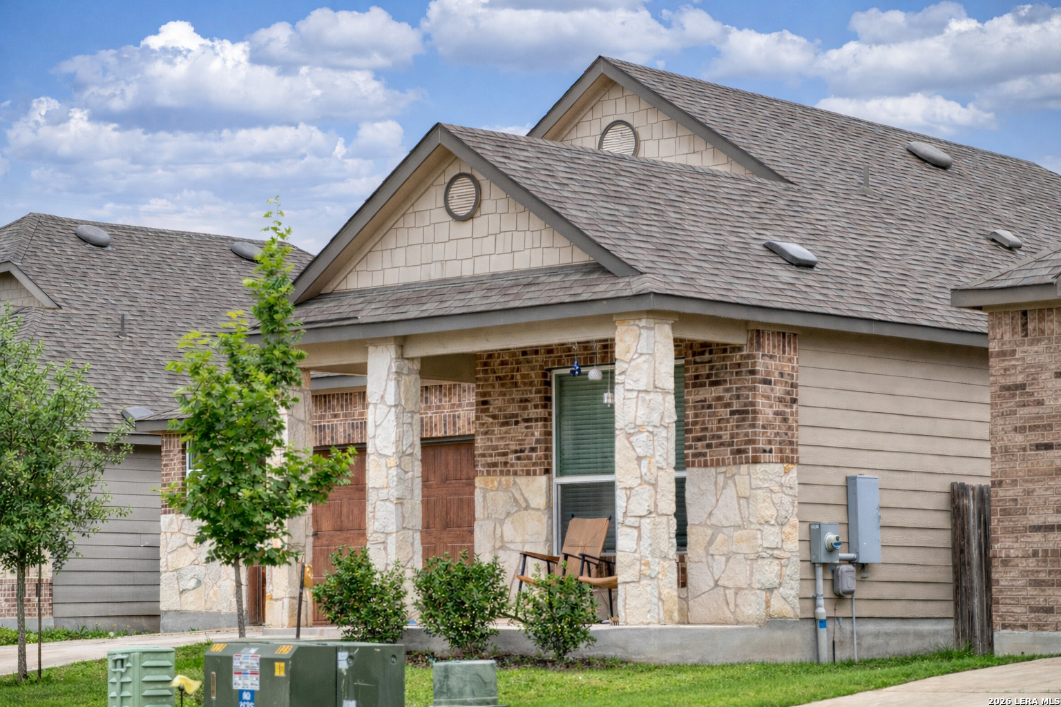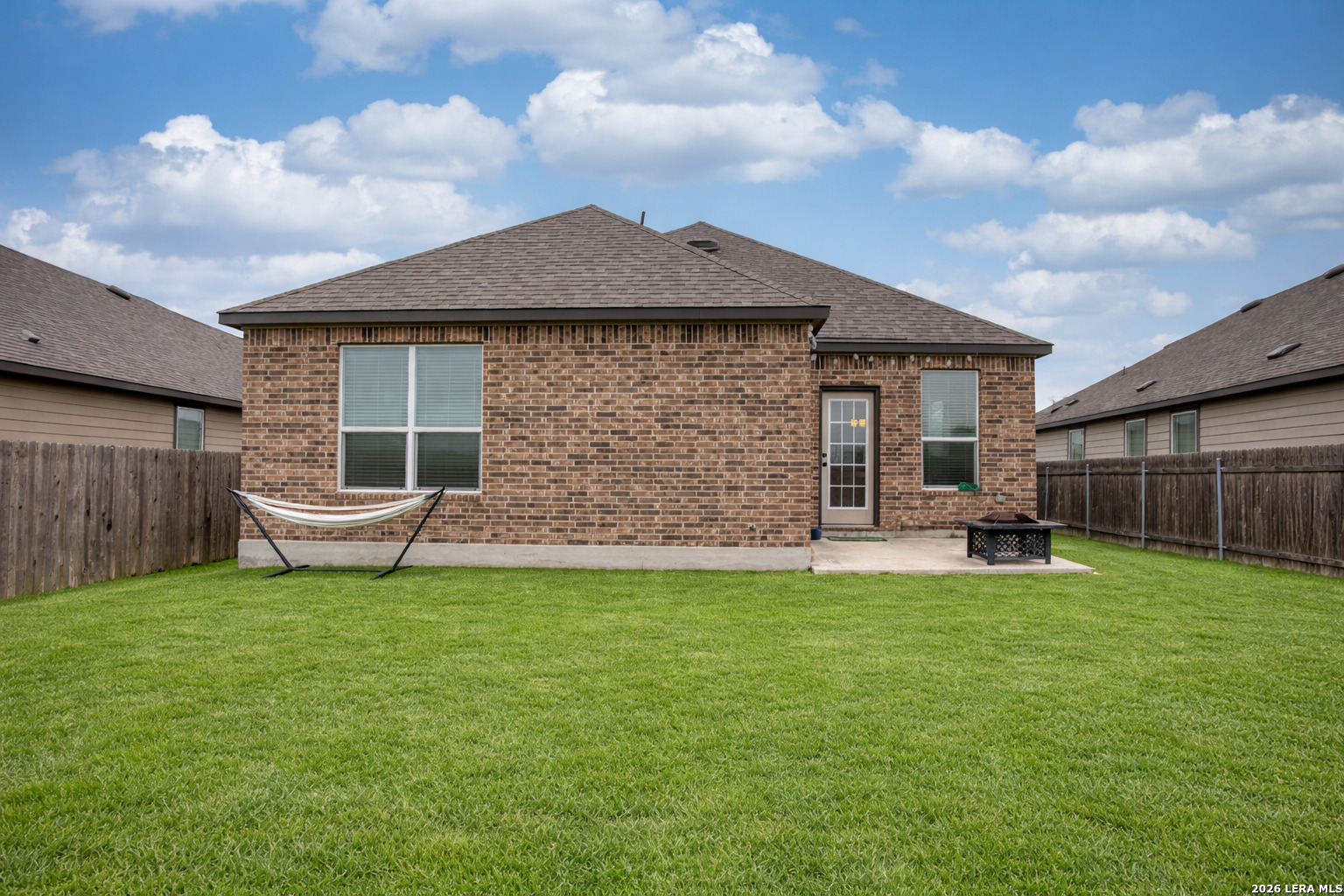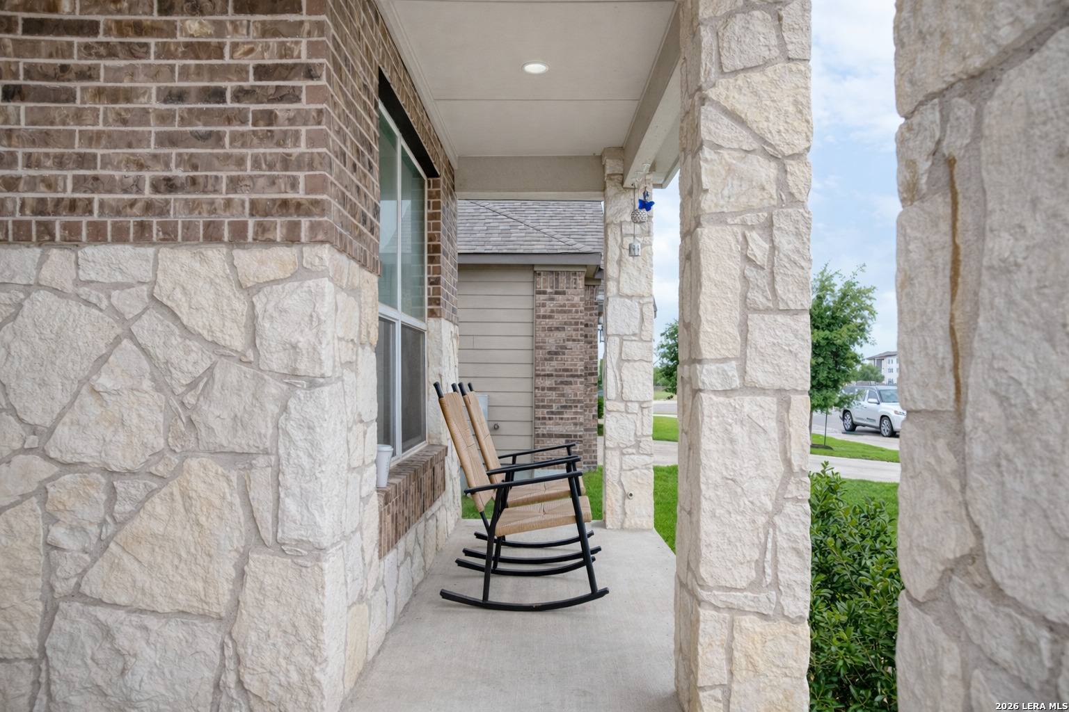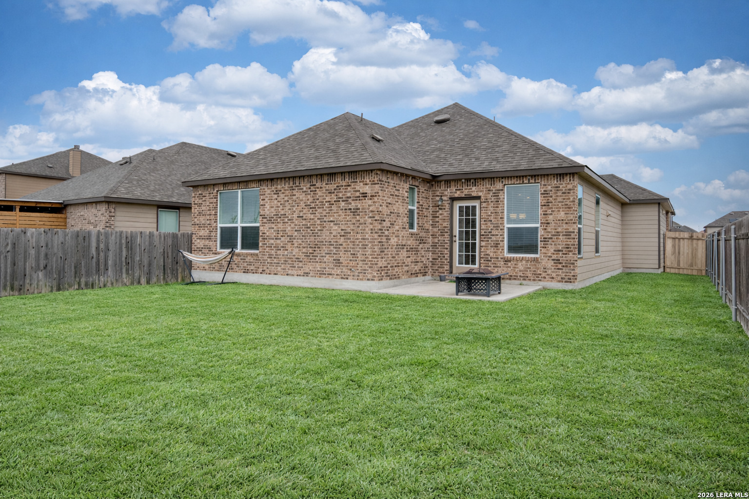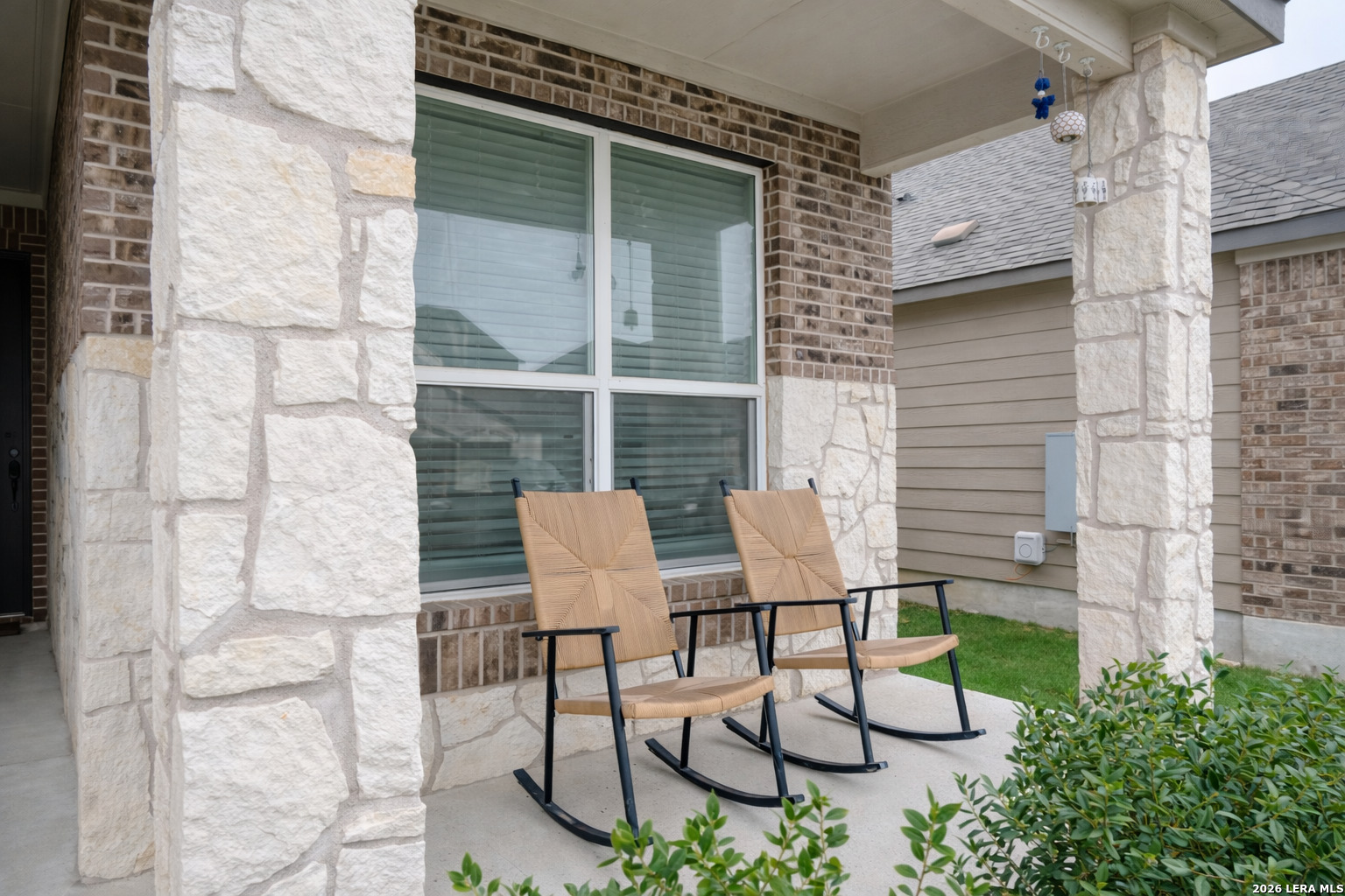 Welcome to this beautifully maintained home offering standout curb appeal with a covered front porch and elegant stone and brick accents. Inside, you're greeted by a light-filled open-concept layout that effortlessly connects the living, dining, and kitchen spaces-ideal for both everyday living and entertaining. The kitchen features warm oak cabinetry, generous counter space, and a functional layout designed for ease and style. The spacious, well-appointed bedrooms invites flexibility for guests, a home office, or additional living space. Bathrooms are finished with sleek, modern touches, creating a clean and warm atmosphere throughout. A versatile garage space adds even more functionality, ideal for storage, a home gym, or workspace. Thoughtful details like a walk-in closet and dedicated laundry/pantry area add everyday convenience. The backyard offers a true retreat, complete with a fire pit and hammock area-perfect for relaxing or hosting. Enjoy enhanced privacy with a solid cement back fence and no rear neighbors, giving you a peaceful, secluded setting. Ideally located less than a mile from an upcoming shopping and entertainment development, this home also offers walking distance to neighborhood amenities including a park/playground, walking trails, basketball court and pavilion-adding to the lifestyle appeal. Combined with comfort, style, privacy and location- this home is ready for its next owner to enjoy.