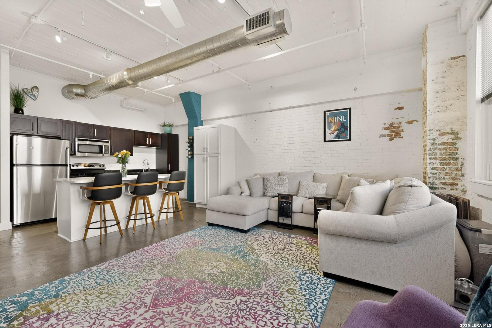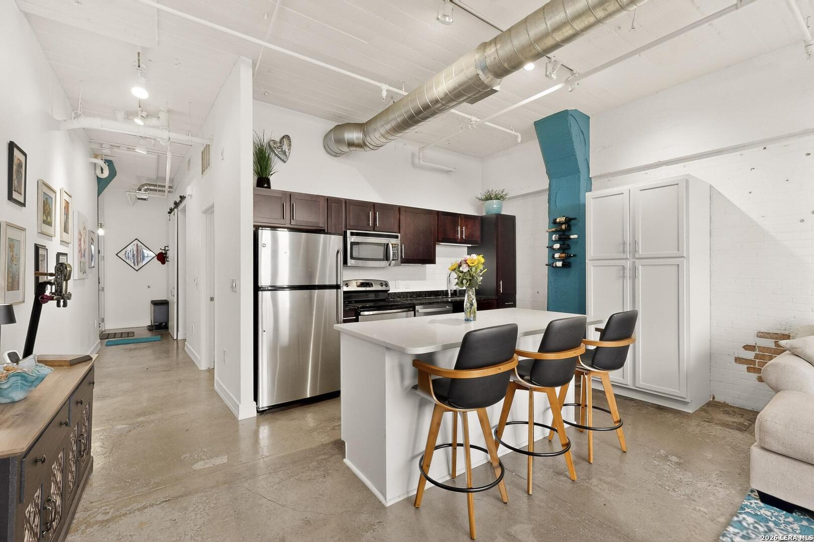 Chic Urban Loft Living in the Heart of Southtown Welcome to 1401 S Flores St, Apt 109, a beautifully designed 1-bed, 1-bath loft in the iconic Steel House Loft. Originally built in 1914 as the Peden Iron & Steel building & thoughtfully reimagined into contemporary residences, Steel House Lofts blends industrial character with modern comfort right in vibrant Southtown. Step inside to discover an open-concept layout. This unit features soaring ceilings that amplify natural light, stained concrete floors, & design elements that honor the building's industrial heritage while elevating it with contemporary finishes. Large windows flood the space with sunshine, creating an inviting atmosphere from the moment you arrive. The well-proportioned kitchen and living areas offer flexibility and style, ideal for home-office space, entertaining guests, or cozy nights in. The bedroom provides a relaxing retreat with ample space for a sitting or office area. High ceilings and architectural details throughout underscore the loft's unique personality. Residents of Steel House Lofts enjoy access to a distinctive urban lifestyle with easy walks to Southtown's top dining, art galleries, boutiques, & the San Antonio River Walk. Whether you're exploring local hotspots or enjoying quiet evenings at home, this loft offers the perfect blend of historic charm and contemporary city living.