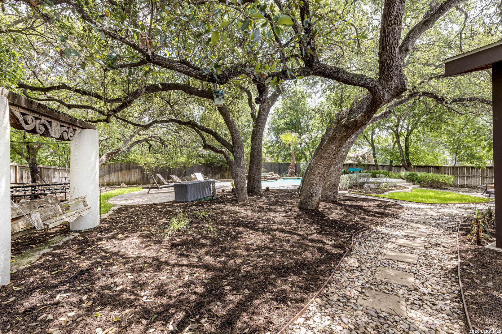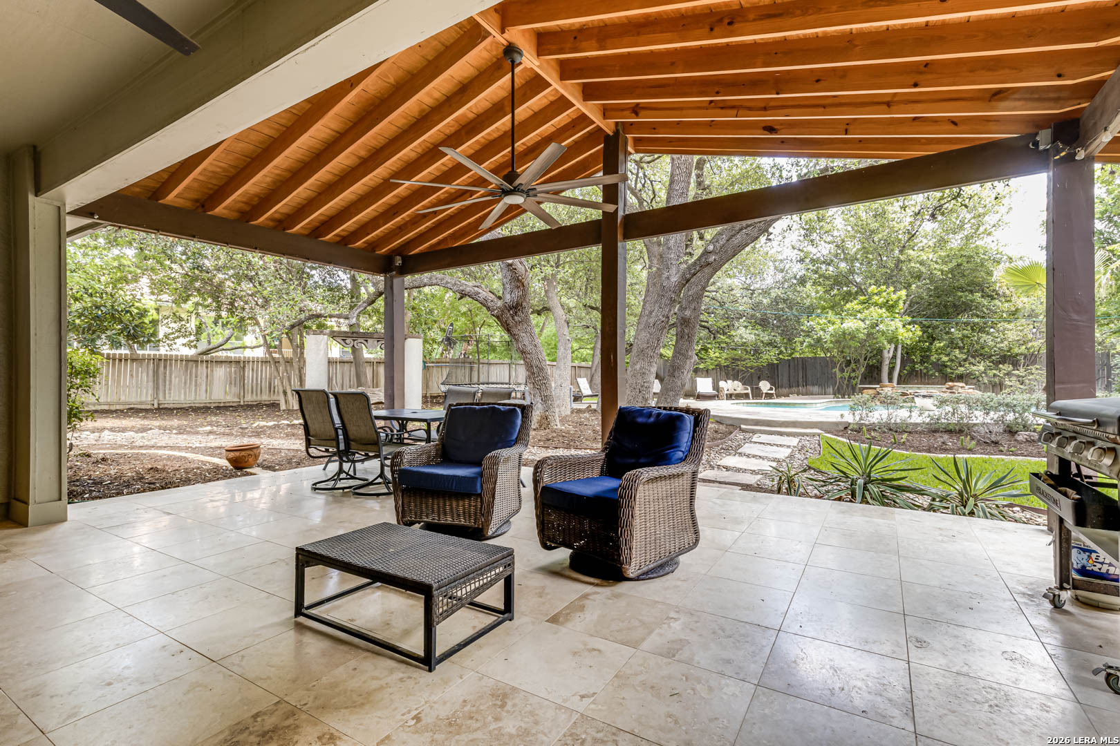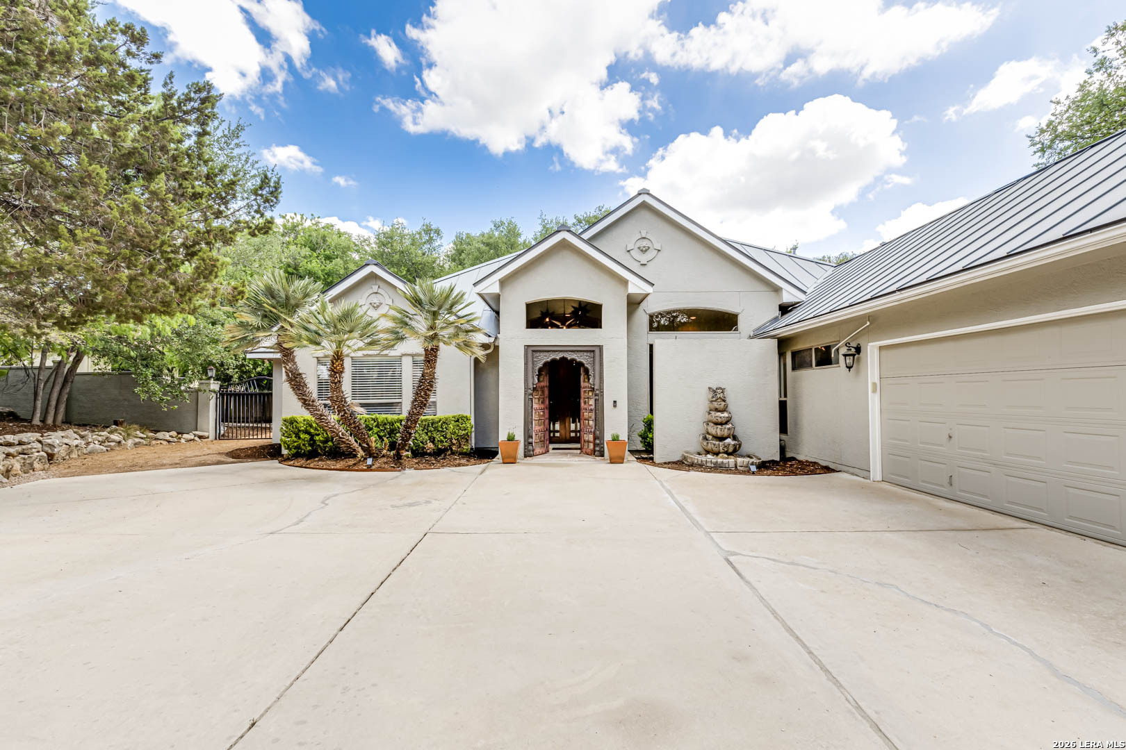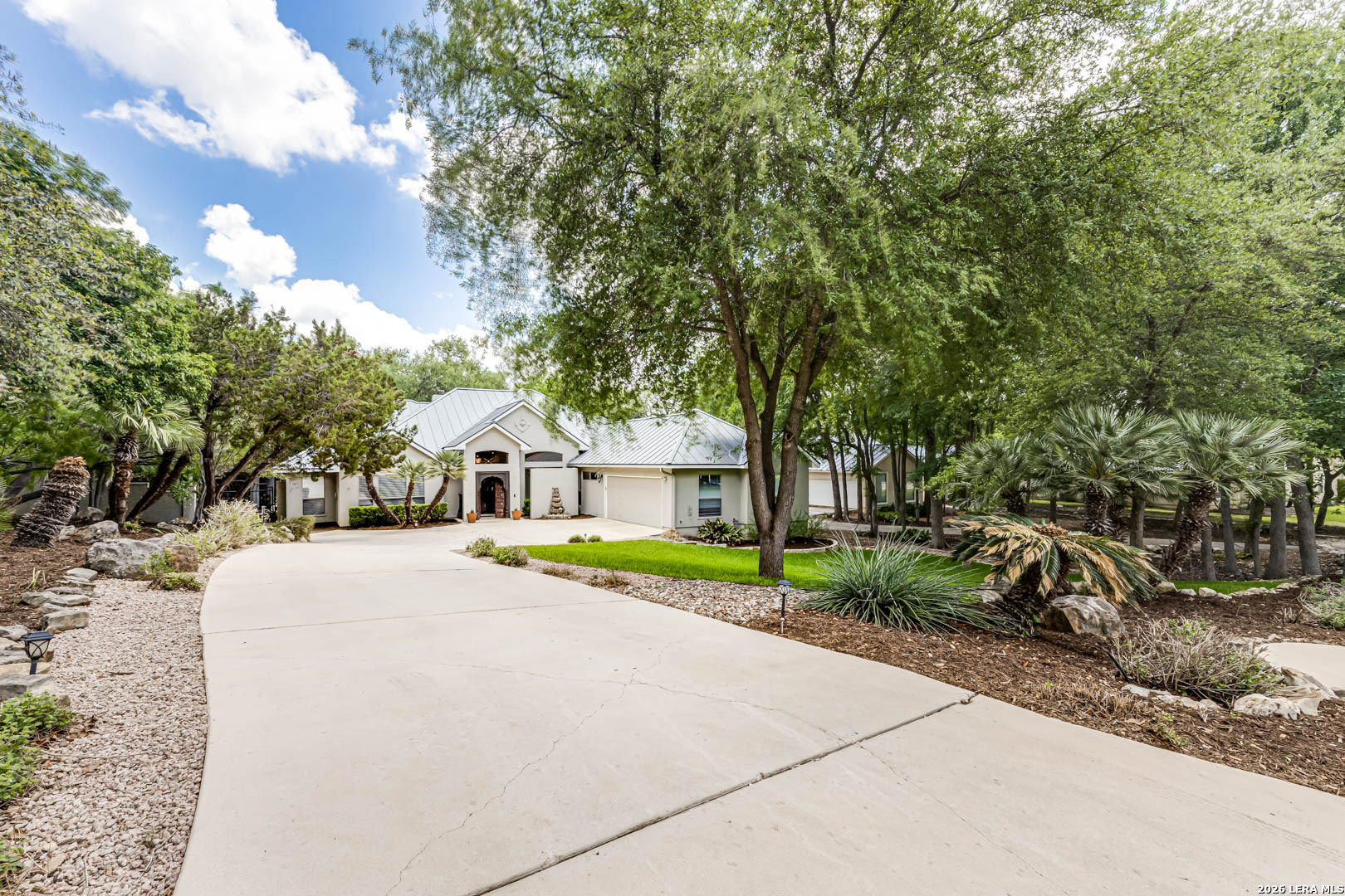 Situated on a majestic .63-acre homesite in the exclusive "Bluffview Estates" community, this elegantly designed one story residence offers a refined balance of luxury and comfort. Drive up to the lush landscape with stunning stucco exterior & Metal roof boasts elegant curb appeal. The thoughtful flowing layout showcases superior craftsmanship throughout, with concrete/wood laminate/tile floors throughout main traffic areas, open floorplan, windows galore allowing natural light to flow through and detailed custom architectural elements at every turn. The chef's kitchen features stainless steel appliances, ample built-in cabinetry, gas stove & double oven perfect for both everyday living and entertaining. The primary suite is split from the other bedrooms & offers a serene retreat with a spa-inspired bathroom and a spacious walk-in closet. Walk out to an entertainers dream back yard with a huge extended covered patio, stunning pool/spa for those warm days & tons of privacy. You will never want to leave home! This home is a very rare find in a rare community and won't last long so come and see it today!