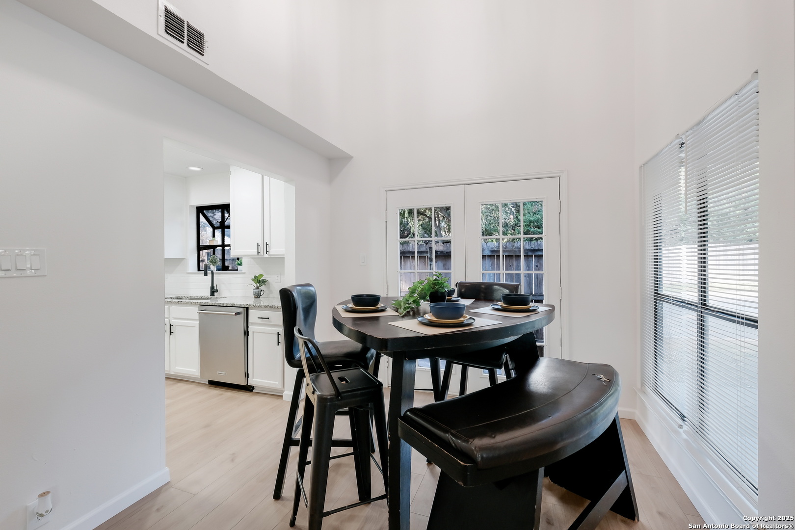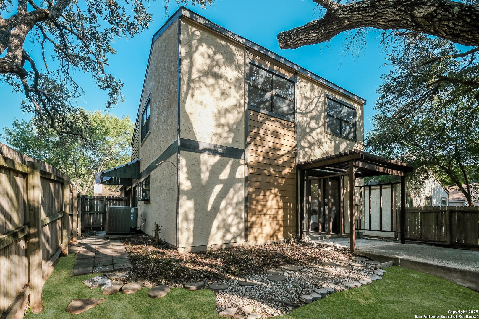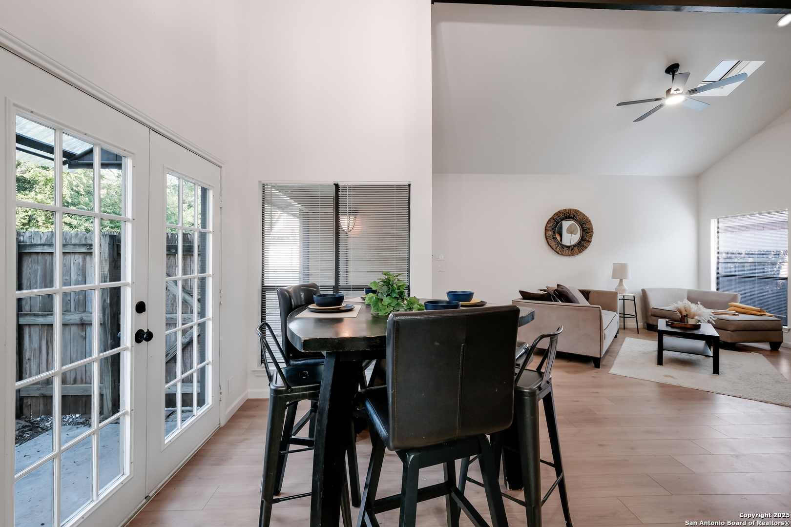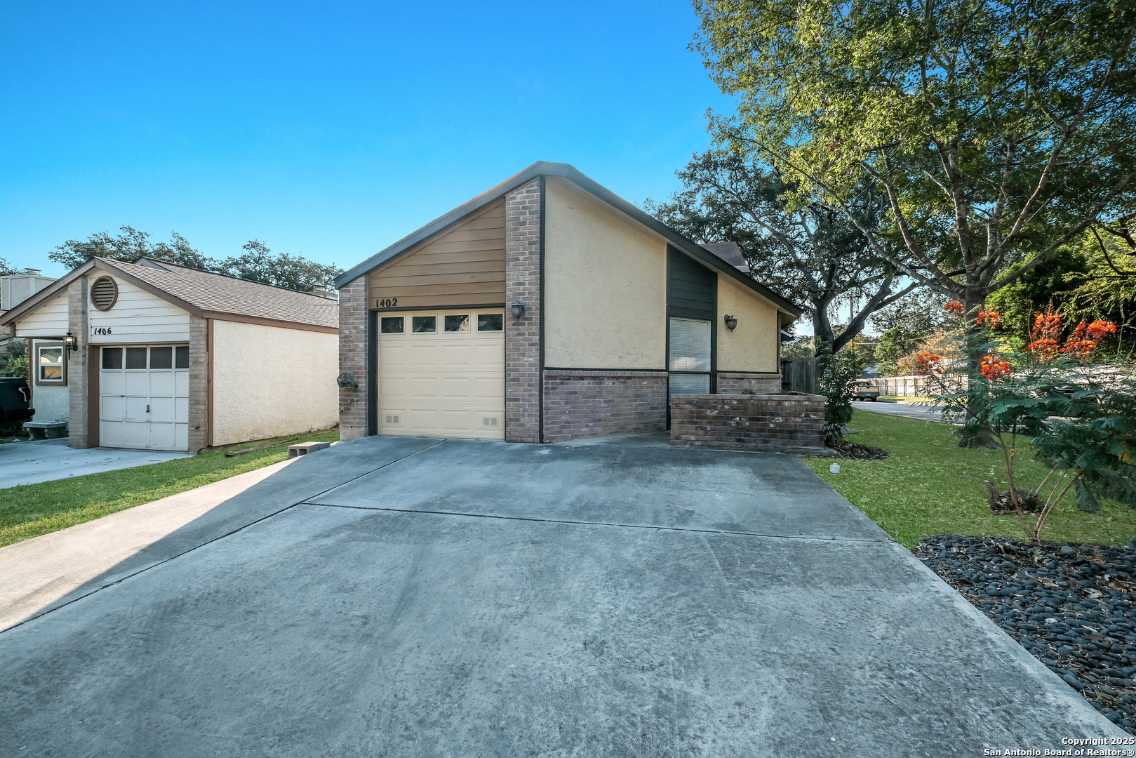 Step inside this beautifully refreshed home featuring new floors and fresh paint (September 2025), giving it a bright and modern feel throughout. The soaring ceilings in the living and dining areas create an impressive sense of space, while the open floor plan keeps the home connected and perfect for both everyday living and entertaining. The primary bedroom is conveniently located downstairs, offering privacy and comfort, while upstairs you'll find two secondary bedrooms, one with a cozy sitting area or desk nook-ideal for guests or a study spot. A dedicated office, thoughtfully positioned away from the main living areas, provides a quiet and productive workspace. The kitchen features a charming planter box above the sink-a perfect touch for herbs or greenery-and the epoxy-coated garage floors add a clean, polished finish. Located just minutes from Highway 281 and Loop 1604, this home offers quick access to shopping, dining, and top-rated NEISD schools. Nestled in a well-established neighborhood with mature trees and a peaceful atmosphere, this property blends comfort, style, and convenience in one desirable North San Antonio location.