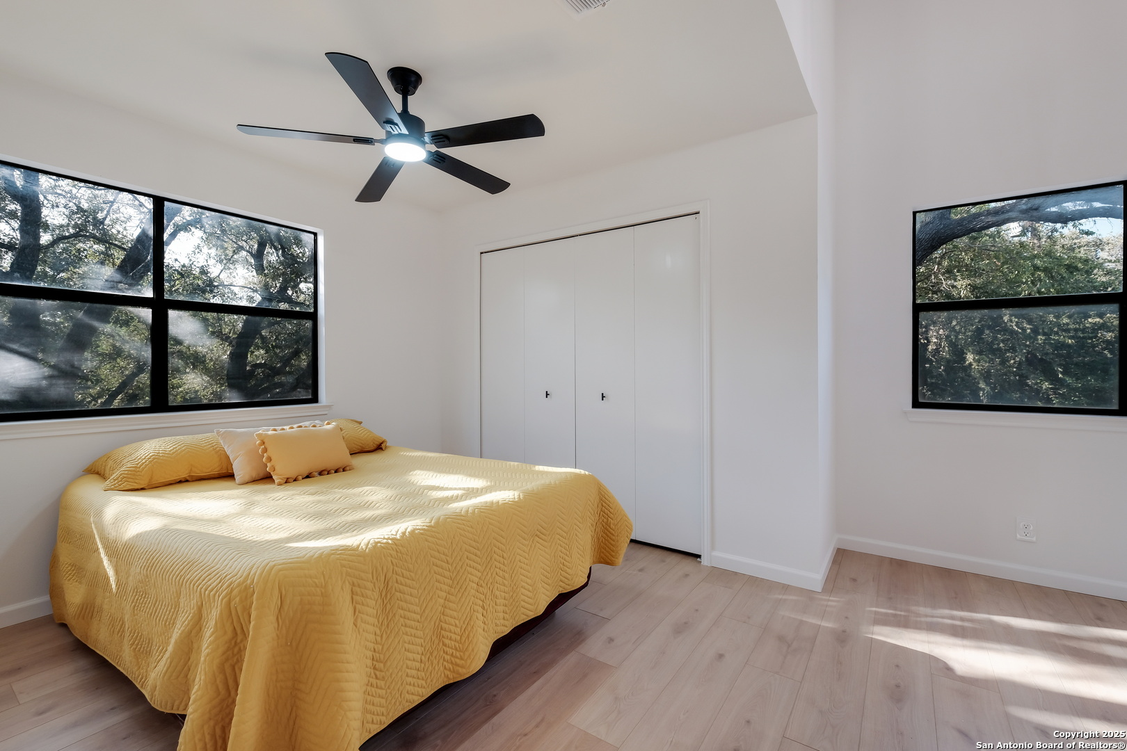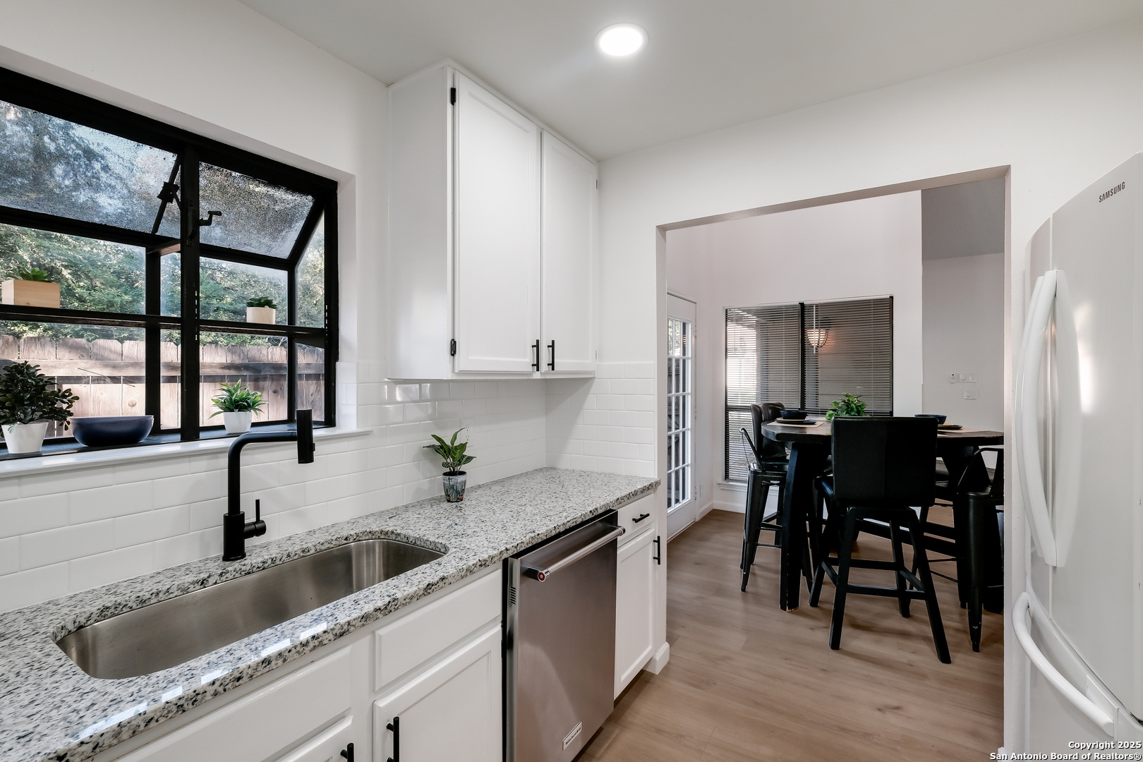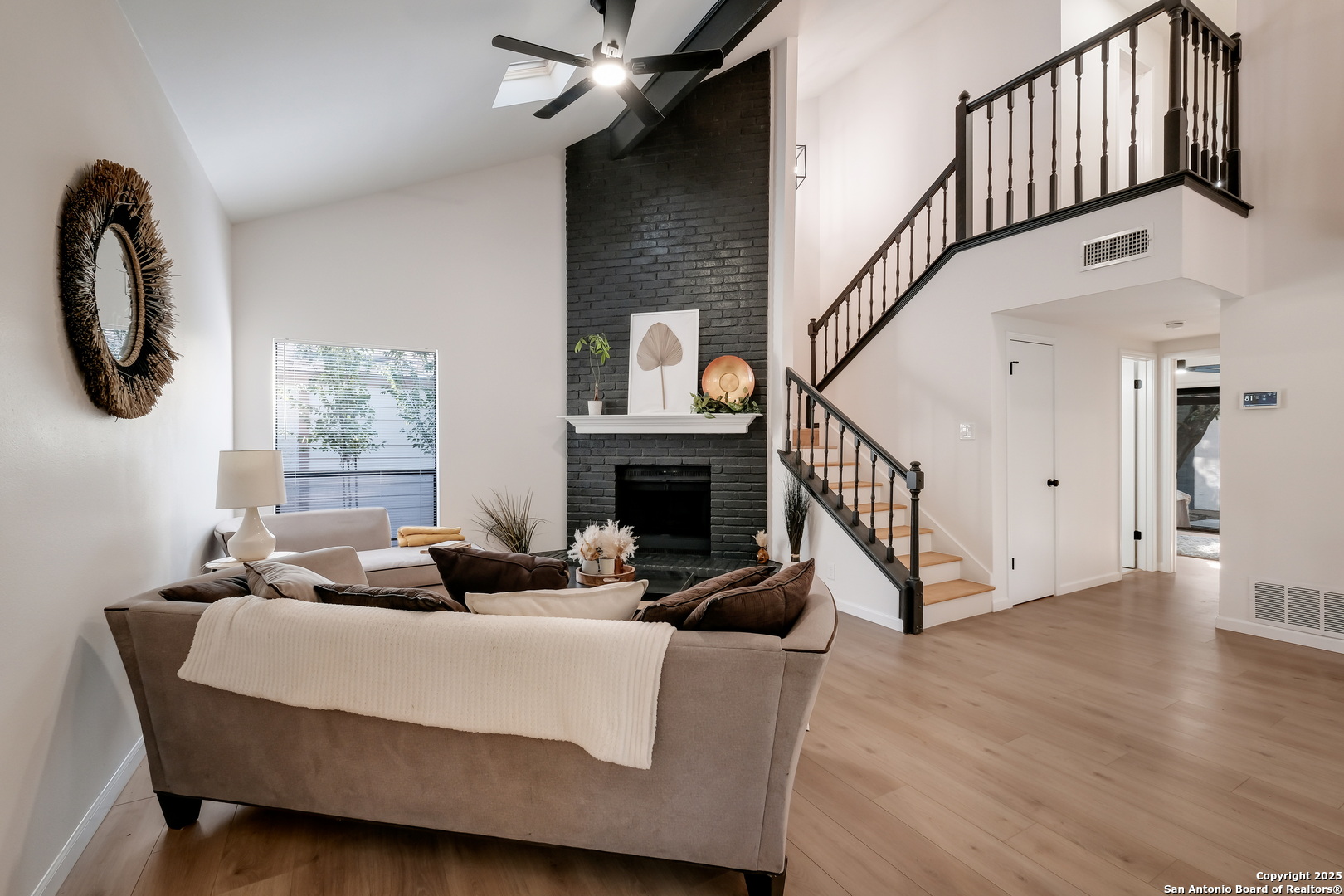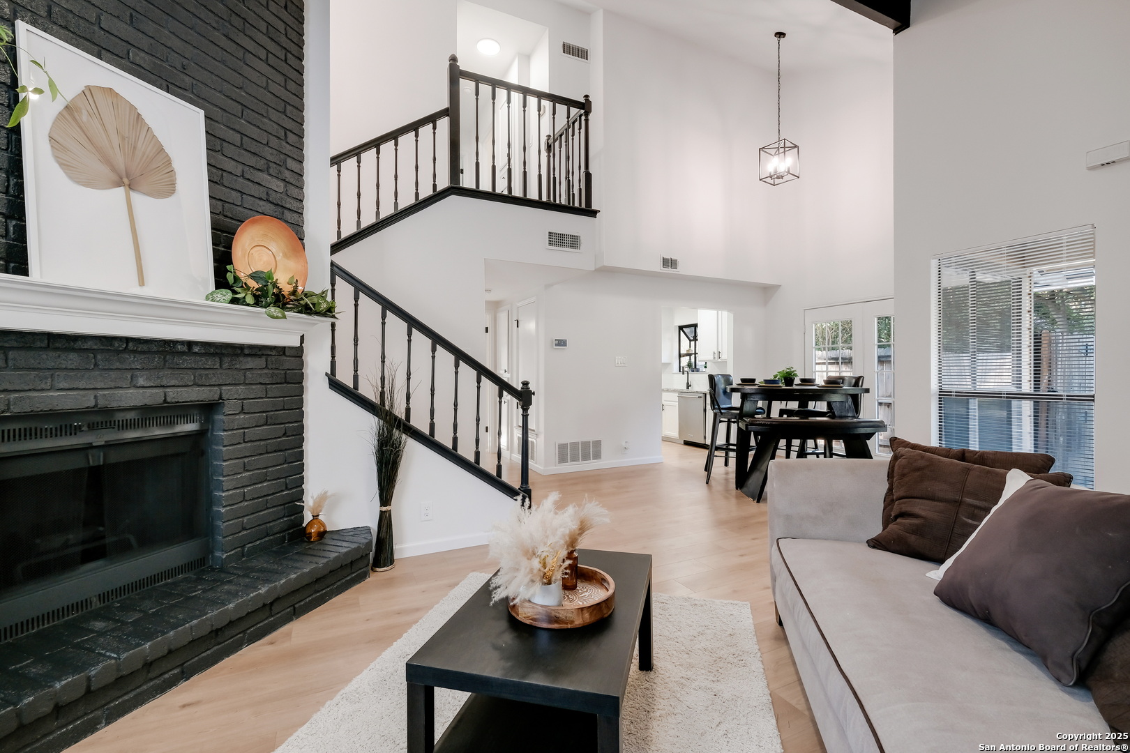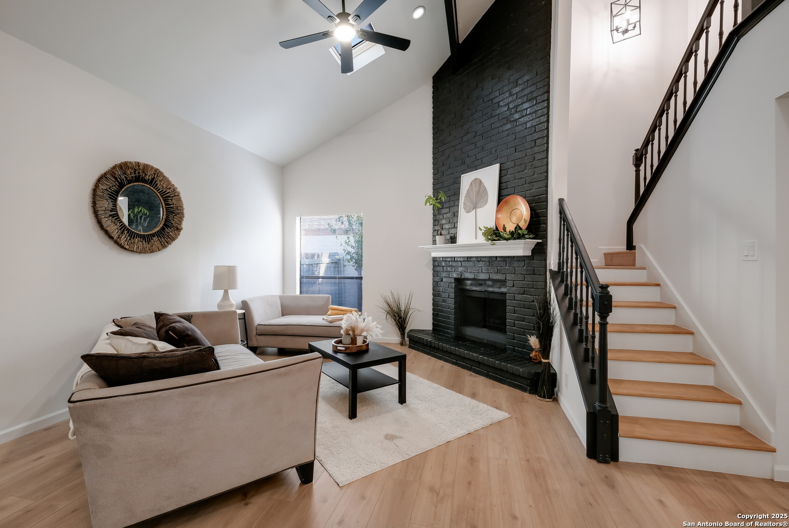 Step inside this beautifully refreshed home featuring new floors and fresh paint (September 2025), giving it a bright and modern feel throughout. The soaring ceilings in the living and dining areas create an impressive sense of space, while the open floor plan keeps the home connected and perfect for both everyday living and entertaining. The primary bedroom is conveniently located downstairs, offering privacy and comfort, while upstairs you'll find two secondary bedrooms, one with a cozy sitting area or desk nook-ideal for guests or a study spot. A dedicated office, thoughtfully positioned away from the main living areas, provides a quiet and productive workspace. The kitchen features a charming planter box above the sink-a perfect touch for herbs or greenery-and the epoxy-coated garage floors add a clean, polished finish. Located just minutes from Highway 281 and Loop 1604, this home offers quick access to shopping, dining, and top-rated NEISD schools. Nestled in a well-established neighborhood with mature trees and a peaceful atmosphere, this property blends comfort, style, and convenience in one desirable North San Antonio location.