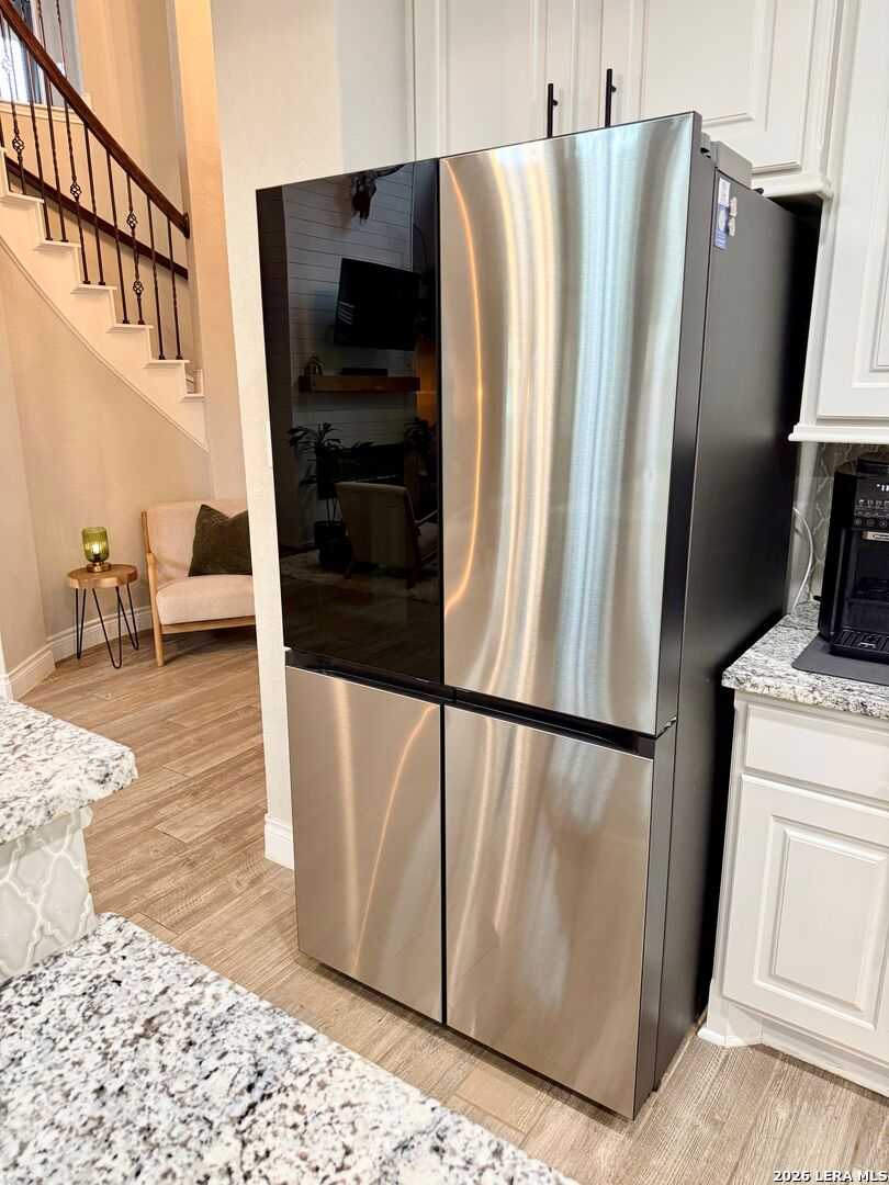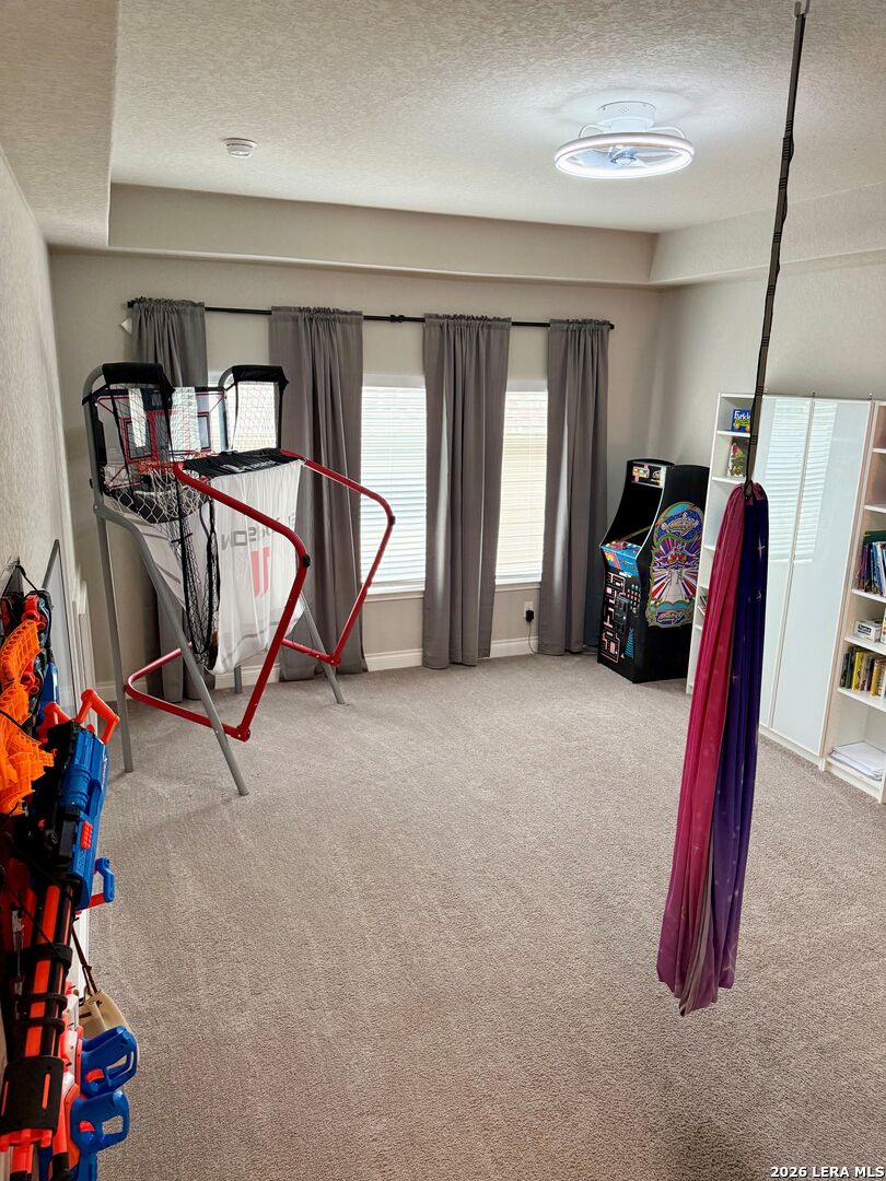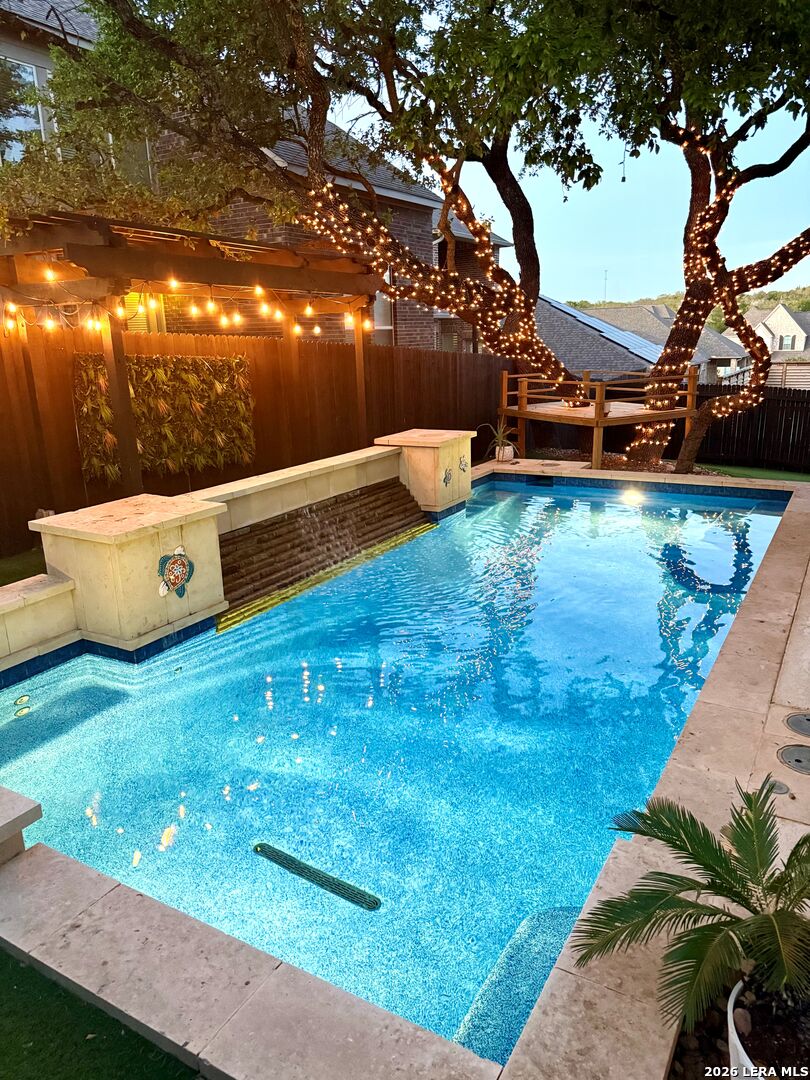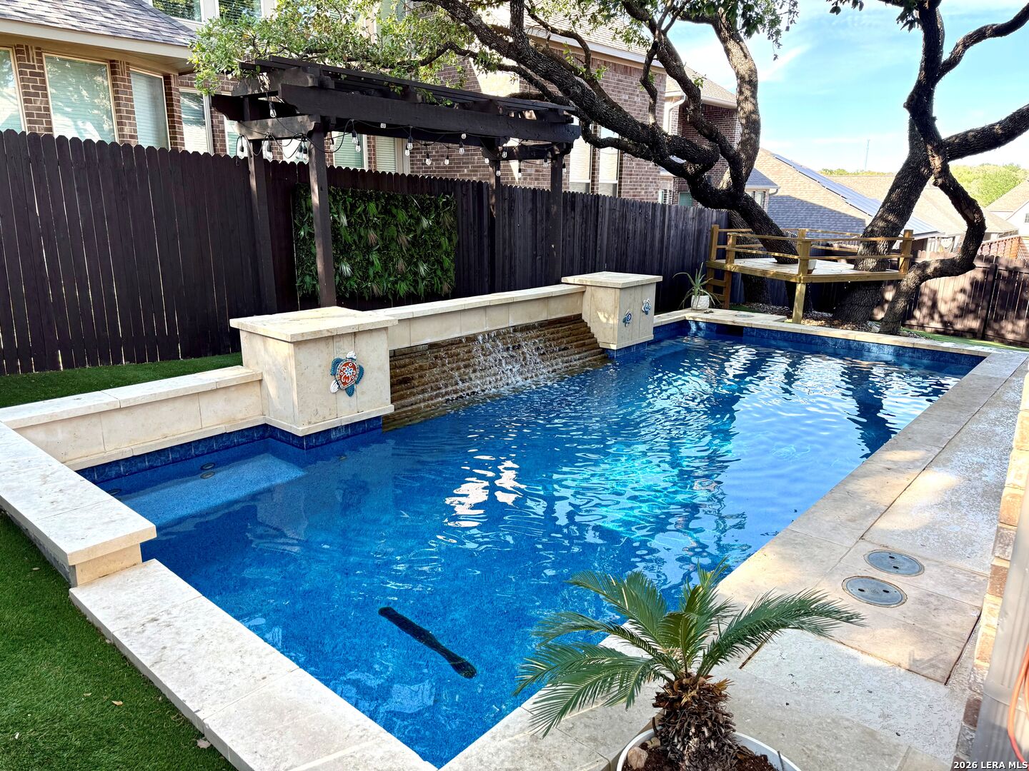 This stunning 3,426-square-foot, two-story residence features a beautiful stone and rock exterior and offers the perfect blend of comfort, style, and functionality. With 4 spacious bedrooms and 3.5 bathrooms, there's plenty of room for both everyday living and entertaining. Immediately be impressed by the tile flooring that flows throughout the entire first floor, setting the stage for a clean and elegant look. The living space is anchored by a custom electric fireplace featuring a built-in mantel, beautiful shiplap and custom shelving, creating a warm and inviting focal point. This exquisite home features tall, dramatic ceilings and expansive windows overlooking the backyard, filling the space with natural light. A magnificent chandelier crowns the grand winding staircase, drawing the eye upward and adding a sense of true luxury. An open alcove provides the ideal display space for a beautifully adorned Christmas tree. The oversized kitchen is truly the heart of the home and a dream come true for any cook, featuring abundant cabinetry, stunning granite countertops, a convenient hands-free faucet, generous bar seating, and top-of-the-line GE appliances. The refrigerator conveys with the home, making this incredible space move-in ready from day one. Upstairs, two bedrooms share a Jack-and-Jill bathroom, complemented by a TV room and a versatile flex space currently used as a game room. The landing overlooks the first-floor living room, framed by a stylish banister and display shelving. The first floor master suite boasts a large custom walk-in closet with direct access to the laundry room. The washer and dryer, complete with pedestals, convey with the home. Also on the first floor, you'll find a fourth bedroom with a separate bathroom and a dedicated office room, perfect for remote work or study. Step into your own private backyard paradise, where every detail is designed for luxury, relaxation, and unforgettable entertaining. Dive into the impressive 10,000-gallon Keith Zars heated pool, finished with sea glass plaster and a captivating waterfall feature. Host friends and family in style with a fully equipped outdoor kitchen, a cozy fireplace, and a powered screened-in porch that makes entertaining seamless in any season. The backyard is finished with lush, low-maintenance astroturf and automatic bug misters. Additional highlights include a whole-home Kinetico water softener system, three zone sprinkler system in front yard and a 2.5-car garage with durable epoxy flooring. Ideally located within walking distance to both the elementary and middle school, and also convenient access to shopping, restaurants, and exciting new entertainment options. Don't miss the opportunity to make this exceptional property your own!