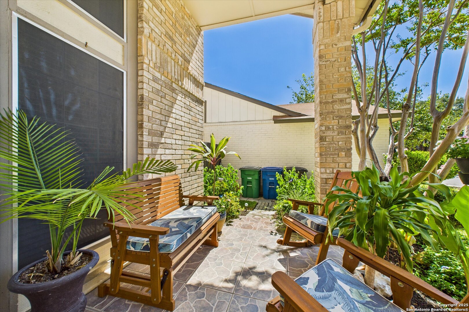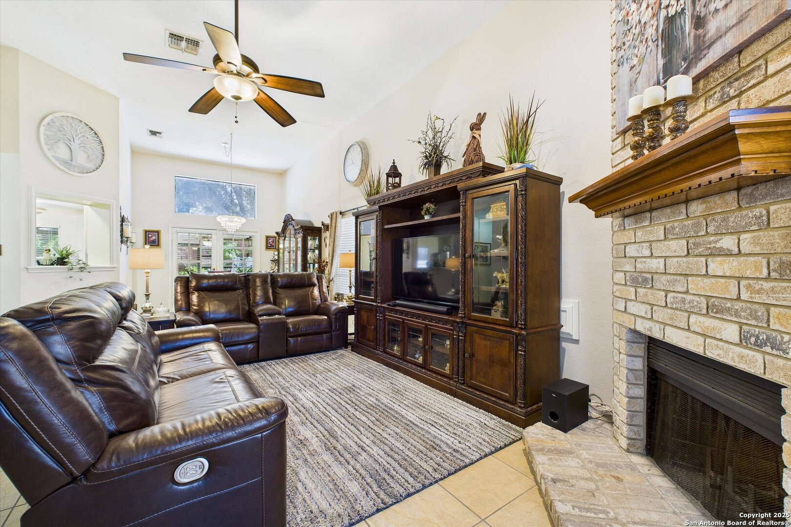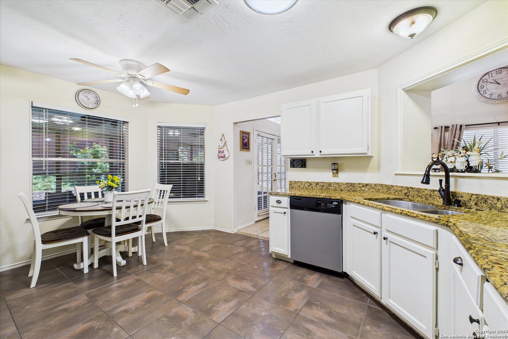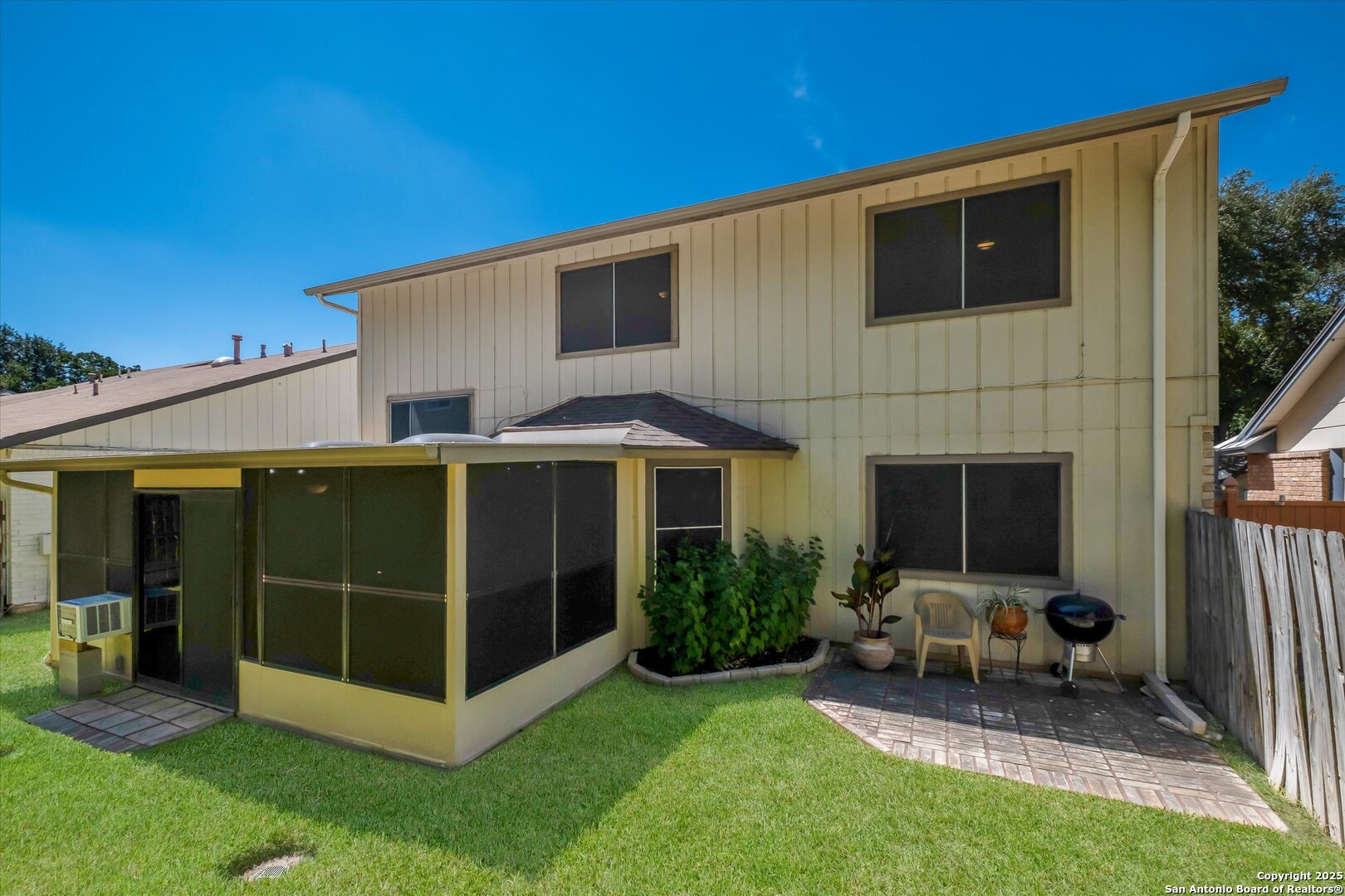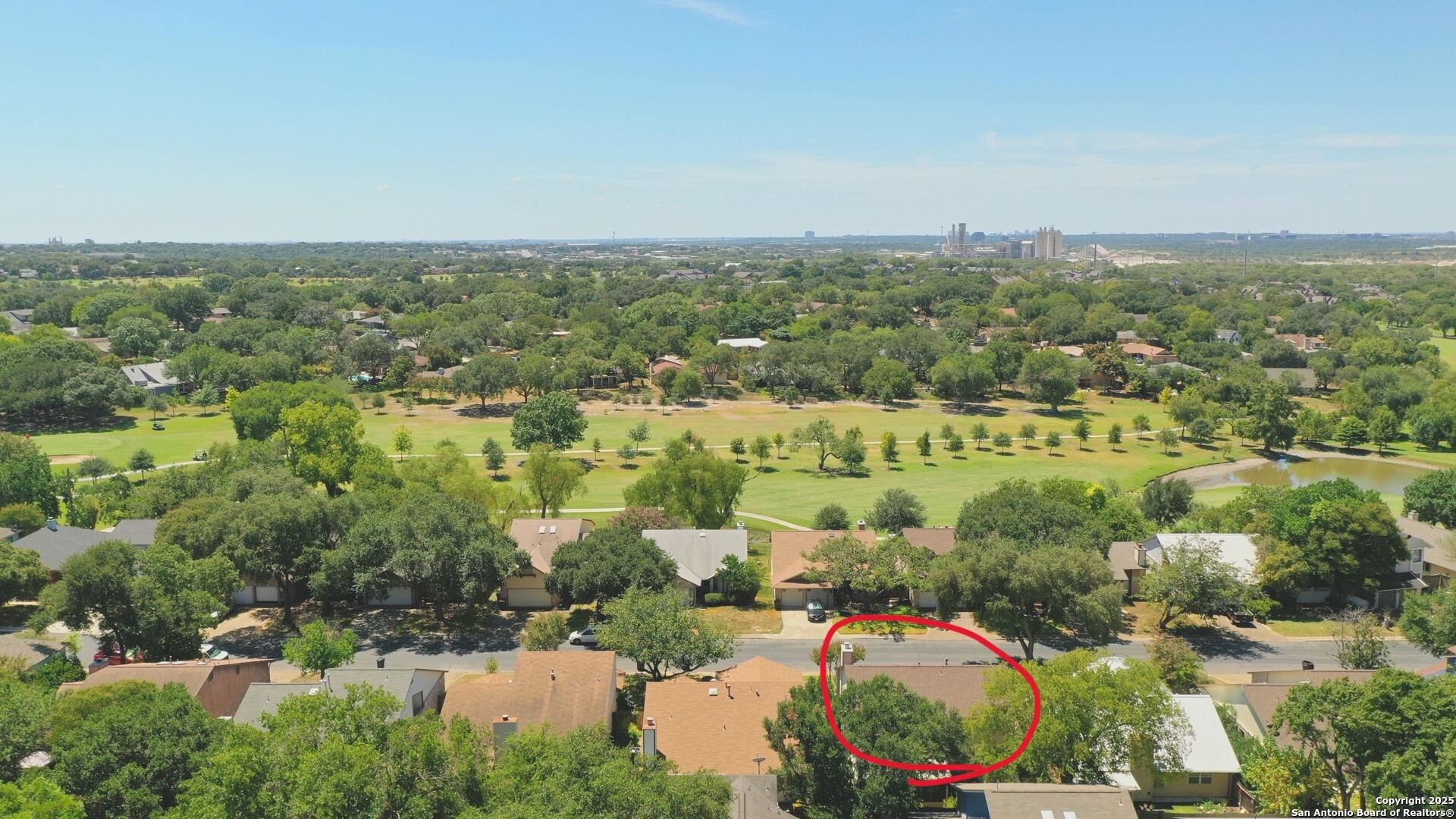 Exceptionally maintained 3 bed, 2.5 bath, two-story home with Primary Bedroom Downstairs located in Northern Hills Golf Course community. LOADED with updates: Roof 2022, A/C replaced 4/21, Rain gutters added in 2019, Luxury Vinyl Plank flooring 2019, New blinds in the bedrooms, and 3 new toilets! Convenient to Loop 1604, Hwy 281, I-35 and Wurzbach Pkwy. North East ISD schools. Enjoy the custom landscaped, low-maintenance backyard. Enclosed patio is perfect for a peaceful retreat for your morning coffee, or a bustling playroom/craft room/home-schooling area. The home features an open floor plan with 12' high ceilings, lots of natural light and NO carpet!! Gas or wood burning fireplace in the living room. Bright & cheery kitchen with breakfast area, granite countertops, new microwave, and 2 yr old stove! Stainless steel French door fridge stays! Primary bath has a step-in shower! Upstairs you will find a loft with built-in office space, two secondary bedrooms, and a full bath. Additional features: attached 2-car garage, solar screens and security system (owned). HVAC serviced regularly, and it has a 10-yr transferable warranty from the install date!. Voluntary HOA. Walk across the street to the golf course! Being a public golf course...after the last pairing goes through (after 8 PM) residents can walk or use the fairway for personal use- lots of people play ball or walk their dogs. (The signature green =12th Hole is right there across the street from the home).