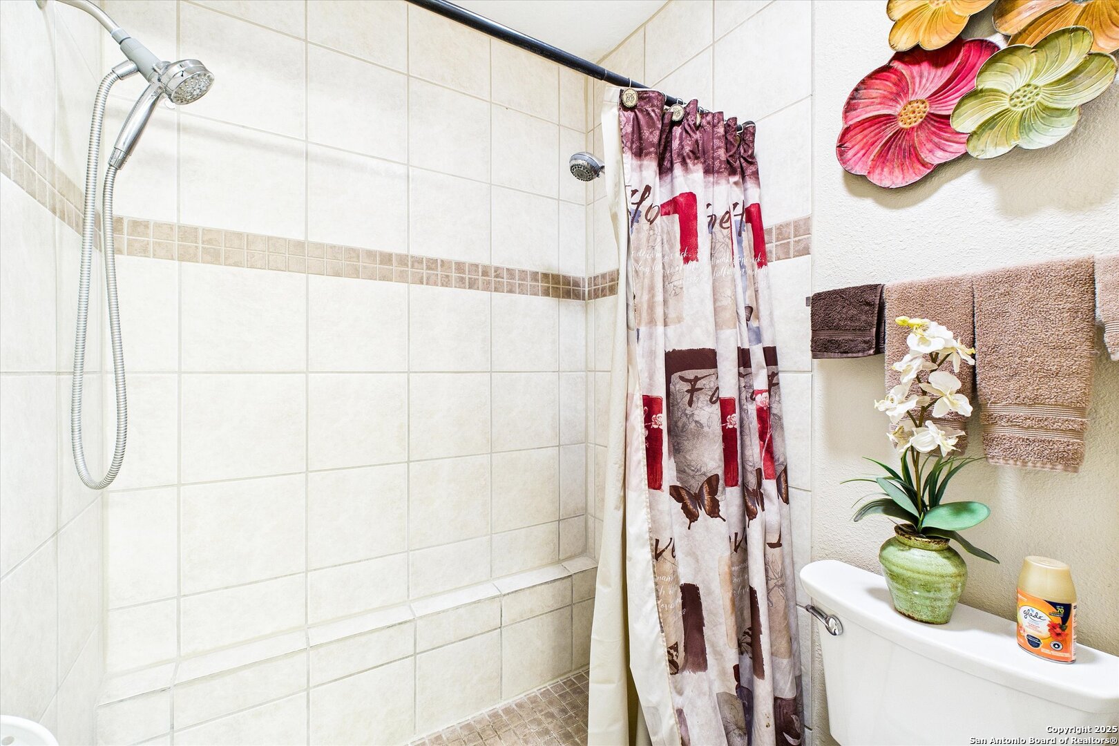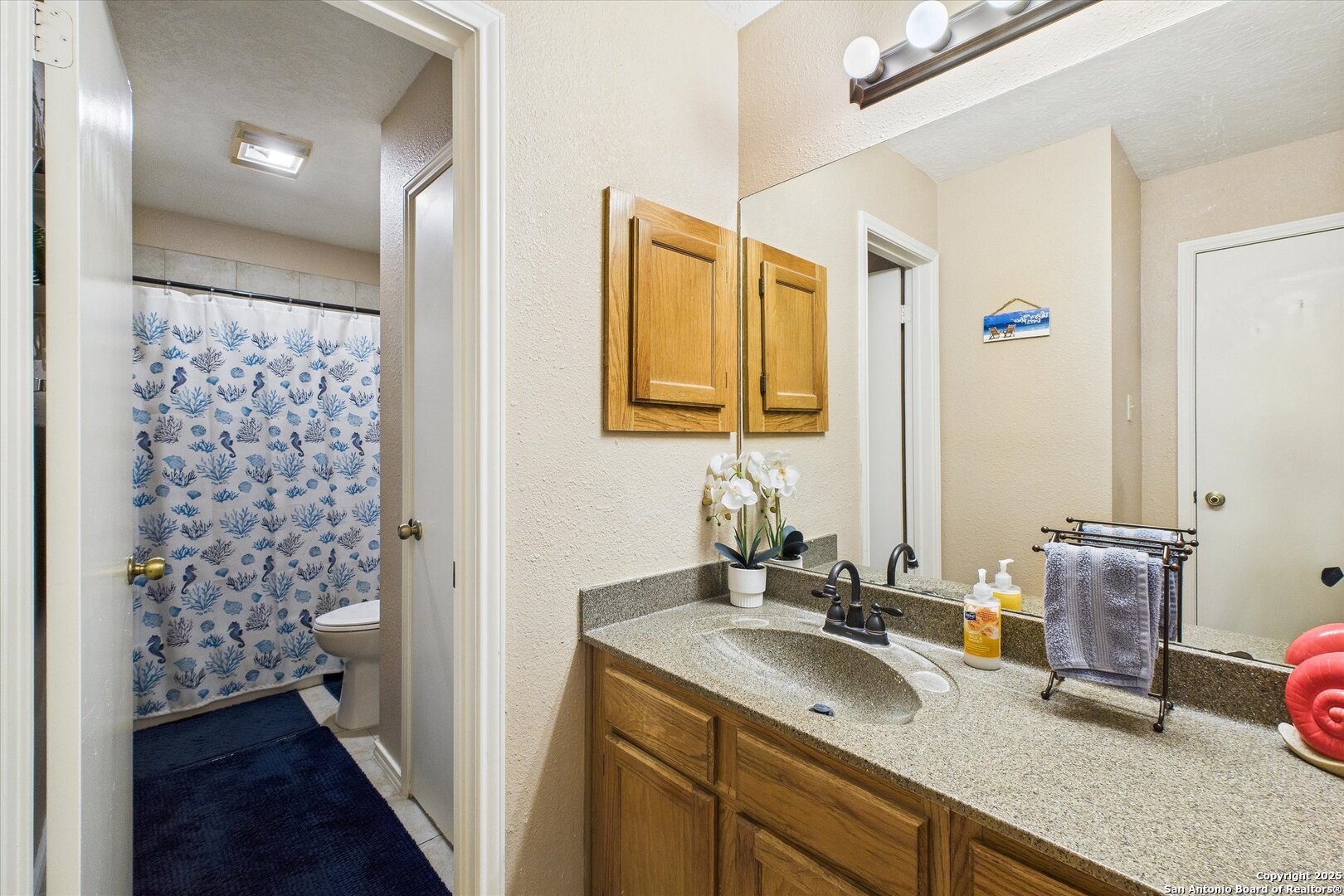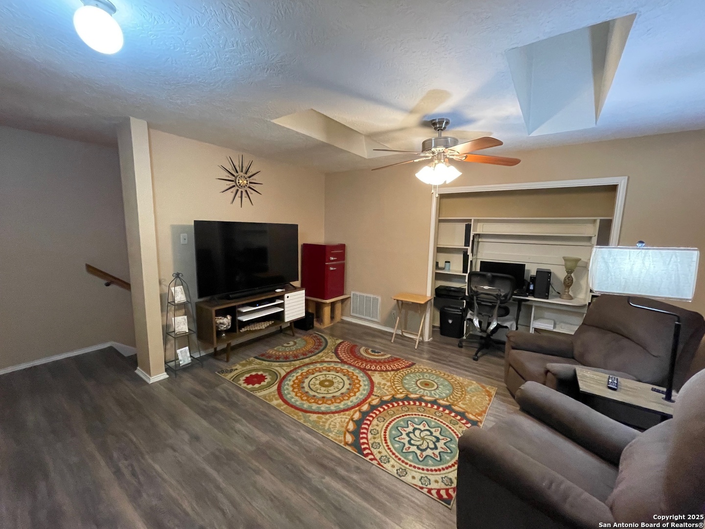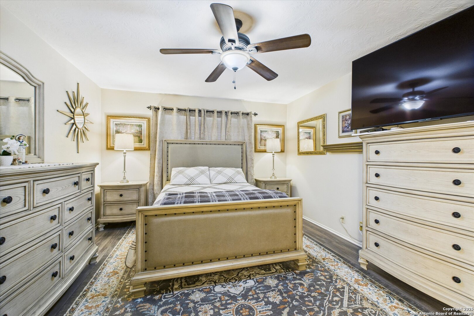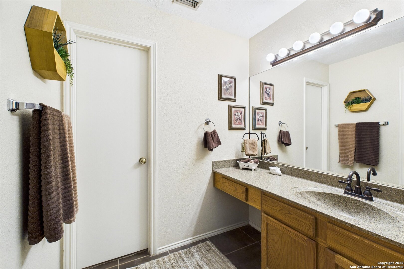 Exceptionally maintained 3 bed, 2.5 bath, two-story home with Primary Bedroom Downstairs located in Northern Hills Golf Course community. LOADED with updates: Roof 2022, A/C replaced 4/21, Rain gutters added in 2019, Luxury Vinyl Plank flooring 2019, New blinds in the bedrooms, and 3 new toilets! Convenient to Loop 1604, Hwy 281, I-35 and Wurzbach Pkwy. North East ISD schools. Enjoy the custom landscaped, low-maintenance backyard. Enclosed patio is perfect for a peaceful retreat for your morning coffee, or a bustling playroom/craft room/home-schooling area. The home features an open floor plan with 12' high ceilings, lots of natural light and NO carpet!! Gas or wood burning fireplace in the living room. Bright & cheery kitchen with breakfast area, granite countertops, new microwave, and 2 yr old stove! Stainless steel French door fridge stays! Primary bath has a step-in shower! Upstairs you will find a loft with built-in office space, two secondary bedrooms, and a full bath. Additional features: attached 2-car garage, solar screens and security system (owned). HVAC serviced regularly, and it has a 10-yr transferable warranty from the install date!. Voluntary HOA. Walk across the street to the golf course! Being a public golf course...after the last pairing goes through (after 8 PM) residents can walk or use the fairway for personal use- lots of people play ball or walk their dogs. (The signature green =12th Hole is right there across the street from the home).
