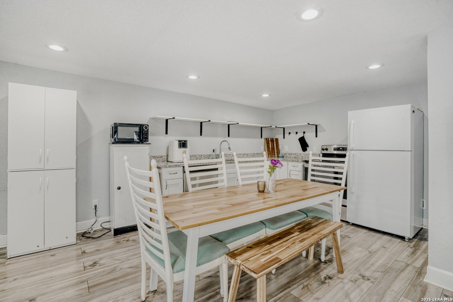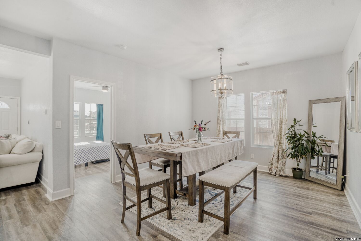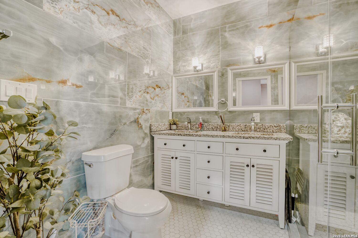 This 100-year-old corner-lot home, just a short walk to Woodlawn Park, offers a rare opportunity: two separate homes on one property, ideal for multi-generational living or rental income. The main house features 4 spacious bedrooms and 2 full bathrooms with thoughtful modern upgrades. Each room is filled with natural light, complete with remote-control ceiling fans and ample closet space. Vinyl flooring flows throughout the living areas, while the bathrooms are finished in elegant tile. The kitchen is a chef's delight with granite countertops, stainless steel appliances, abundant cabinet storage, and a dedicated dining area. The primary suite is a true retreat, featuring dual vanities, a walk-in shower, a generous walk-in closet, and French doors opening to a wooden deck overlooking the detached casita. A covered side porch offers a serene spot for morning coffee. Efficient comfort is ensured with central heating and cooling and a tankless water heater. A covered walkway connects to the detached casita (approx. 850 sq. ft.), offering vinyl flooring, a kitchenette, living area, utility room, one bedroom, a full bathroom with tile, and a walk-in closet. Mini-split systems provide climate control for year-round comfort. The fully gated yard provides plenty of space for outdoor activities, pets, and children, along with gated parking for both homes. Two-unit properties in Woodlawn are extremely rare-don't miss this opportunity! Schedule your showing today.
