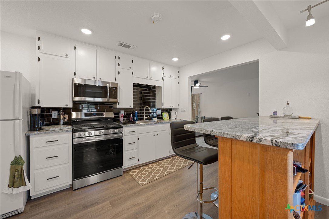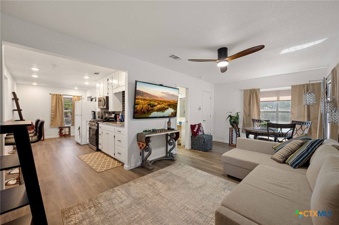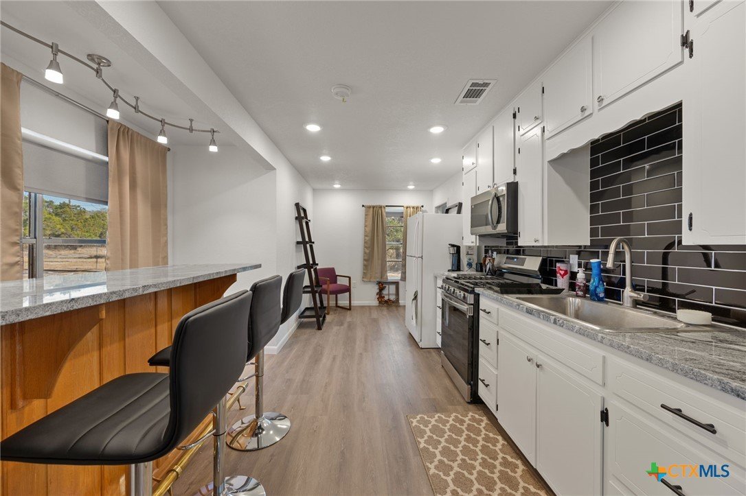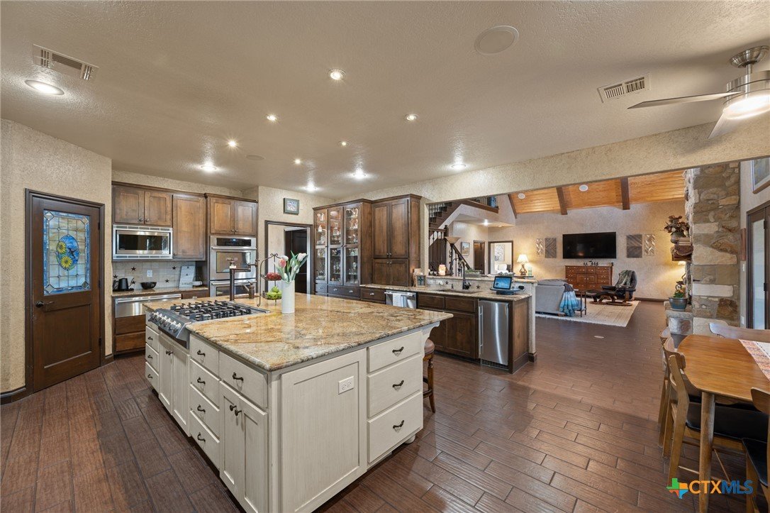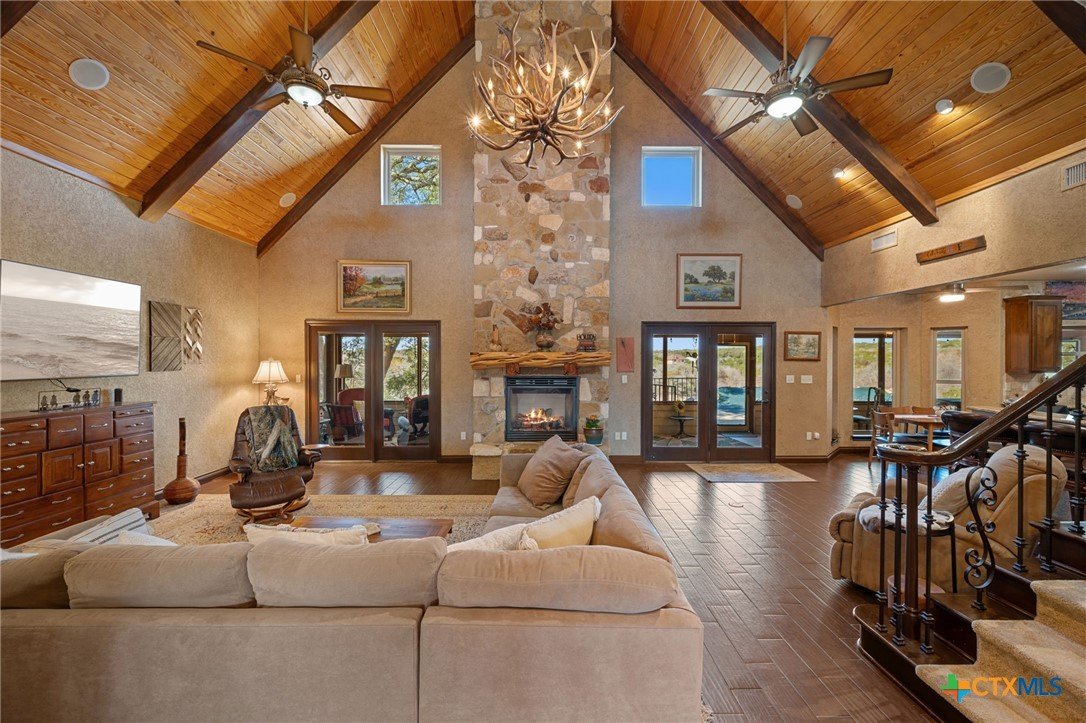 Experience lakefront living at its finest in this stunning custom-built Larry Lilly home offering ~5,000 square feet on over 1.9 acres along a deep, protected cove of Lake Belton. Backing to Corps of Engineers land, the property enjoys a natural privacy buffer with direct lake access and beautiful lake and sunset views.Inside, soaring 25-foot ceilings and a dramatic stone fireplace featuring authentic ammonite fossils create a striking first impression. A private office sits off the entry, while a main-level bedroom offers flexibility for guests or multi-generational living.The chef’s kitchen is built for entertaining with three sinks (including copper prep), two dishwashers, double ovens, a six-burner gas range, an impressive 6x10 island, granite countertops, abundant cabinetry, and a walk-in butler’s pantry.The primary suite is located on the main level and includes a secure safe room within the closet and heated bathroom floors. The luxurious bath features dual vanities, soaking tub, and separate shower.Upstairs you’ll find a spacious loft, two exceptional bedroom suites, and an enormous media room with kitchenette. Media seating and TV convey.Outdoor living shines with a screened-in porch, sparkling in-ground pool, three-car garage, and a full-size insulated workshop with electricity. A recently updated one-bedroom guest cottage provides private accommodations for visitors.Enjoy kayaking, lakeside sunsets, and year-round outdoor living in this extraordinary Lake Belton retreat. This is more than a home—it’s a lifestyle.