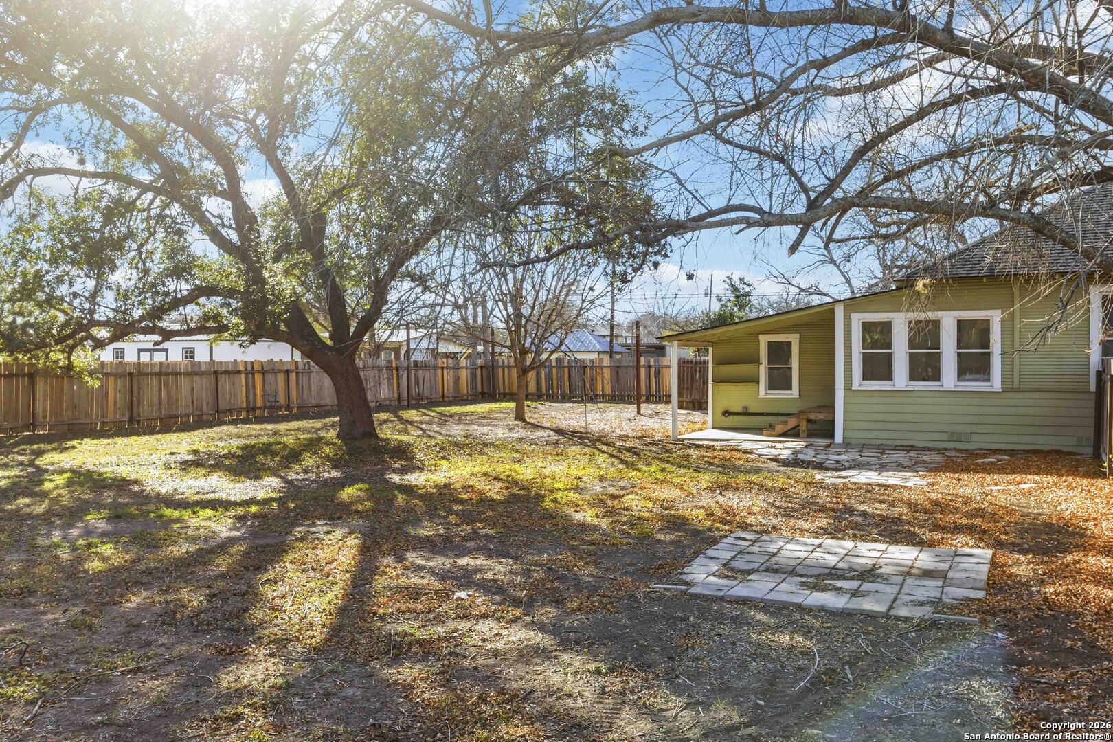 Welcome to Bungalow 1409, a timeless Craftsman-inspired bungalow cottage set on an approximately 0.77-acre lot in the heart of historic Hondo. This sunlit residence retains its original character while offering thoughtful updates where it matters, creating a rare opportunity to own a well-preserved home with enduring architectural appeal. From the moment you arrive, classic 1920s details set the tone, including a welcoming front porch designed for everyday use and relaxation. Inside, original wood trim, wide casings, and period-style doors highlight the home's vintage integrity, complemented by abundant natural light from numerous large windows throughout. The kitchen reflects the home's era with solid wood cabinetry, vintage-style hardware, laminate countertops, a gas range, dishwasher, and a window over the sink that brings in natural light. Adjacent living and dining spaces maintain the bungalow's authentic layout while offering flexibility for daily living. The home features three bedrooms, including spaces with hardwood flooring, ceiling fans, and generous window placement. One bedroom includes French doors providing direct exterior access. Built-in shelving adds function while preserving the home's original character. There are two bathrooms, with one fully renovated bathroom featuring a walk-in shower, large-format tile, updated fixtures, and modern finishes. The second bathroom remains original, preserving its vintage style and materials. Outdoor space is a standout feature, with a fully fenced yard and mature trees offering shade and privacy across the expansive lot. A rear covered porch provides additional functional outdoor space. Notable system updates include a roof replaced in 2022, a water heater replaced in 2021, and upgraded attic insulation, adding practical value while maintaining the home's character. The property is located approximately 0.5 miles from Downtown Hondo, with nearby access to City Hall, the Medina County Courthouse, public parks, local schools, dining, retail, and H-E-B, all within roughly one mile. Bungalow 1409 offers preserved craftsmanship and sun-filled interiors - an authentic home where original design takes center stage.
