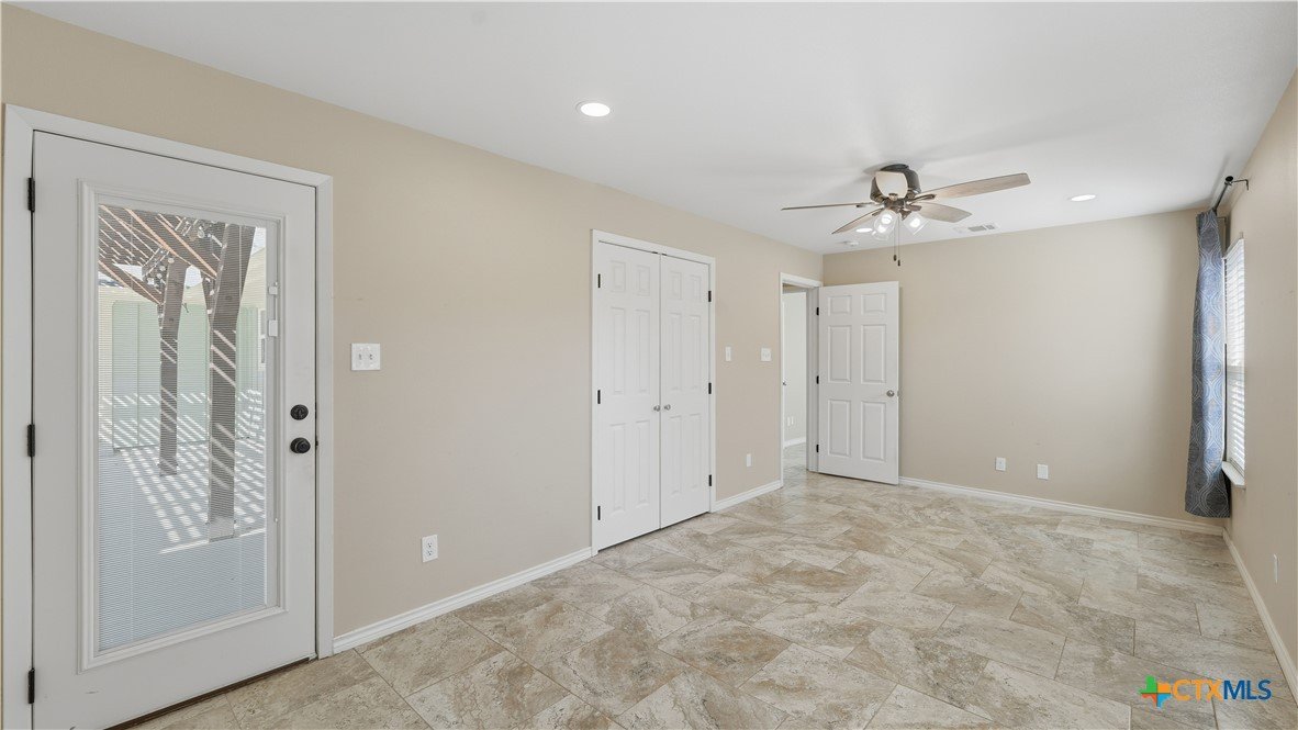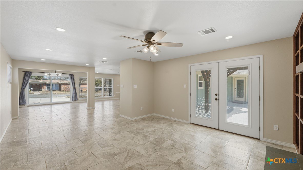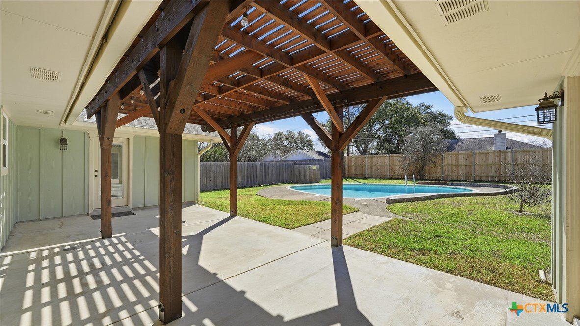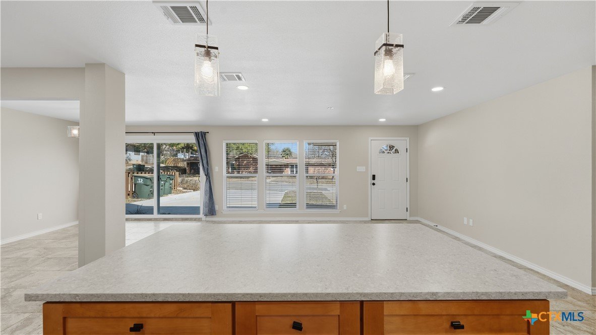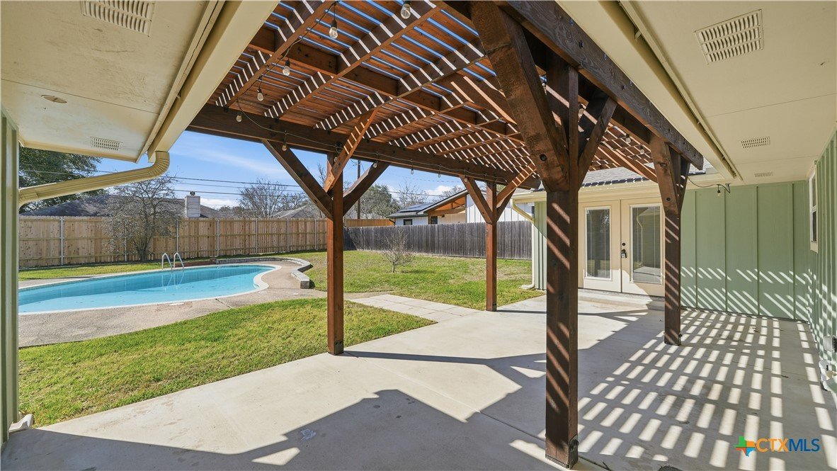Welcome to 1409 Highland Drive—fully renovated and truly turnkey, on the hill, in the heart of San Marcos on a generous .55-acre lot. Located near Texas State University, you can walk downhill to campus or catch the shuttle just two blocks away, with easy access to Schulle Canyon Natural Area and the LBJ Drive Trailhead for hiking and fresh air. Rebuilt the right way, this home offers 3 bedrooms, 2 full bathrooms. Inside, enjoy a clean, modern finish with new tile throughout, a striking new fireplace surround, and a completely reimagined kitchen featuring leathered quartz countertops, shaker-style cabinetry, and all-new appliances—Bosch dishwasher, GE convection oven with air fry, built-in microwave/hood, brushed stainless refrigerator, plus Maytag washer and dryer. Bathrooms match the same elevated style with quartz-and-shaker finishes and custom glass shower doors, and every light and plumbing fixture is new. Big-ticket upgrades are done: new roof and gutters, new HVAC, new water heater, updated whole-house plumbing, and all-new electrical wiring. Additional improvements include new windows and blinds, hardwired security cameras, and added exterior lighting. Out back, enjoy the pool-side with a new pergola and concrete patio, new fencing, and upgraded pool equipment. Fresh landscaping and new trees—Mexican sycamore out front and an Anacua in back.