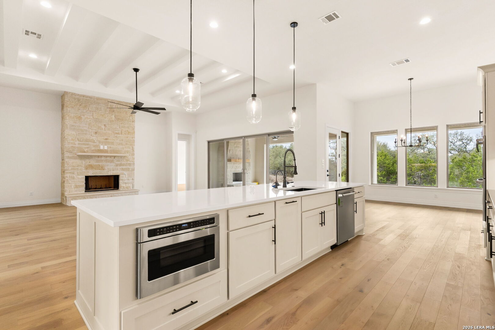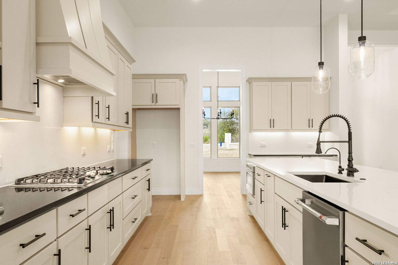 New Construction Home! Welcome to 141 Gadwall Way, a thoughtfully designed 4-bedroom, 3.5-bath home blending modern luxury with smart functionality. The gourmet kitchen features GE Cafe stainless steel appliances, custom wood cabinetry, a large island with Misterio Quartz countertops, and Black Pearl granite perimeter counters. The private primary suite offers a spa-like bath with a walk-through shower, freestanding tub, premium tilework, and Moen fixtures. Designer details throughout include tray and coffered ceilings, custom millwork, and curated finishes. Enjoy a Smart Technology Package with Z-Wave switches, Wi-Fi-enabled double oven, programmable thermostats, and pre-wired security. The covered back porch with wood-tone ceiling accents and outdoor fireplace creates the perfect space for relaxing or entertaining. Located in serene Mystic Shores, this home delivers comfort, style, and modern convenience.