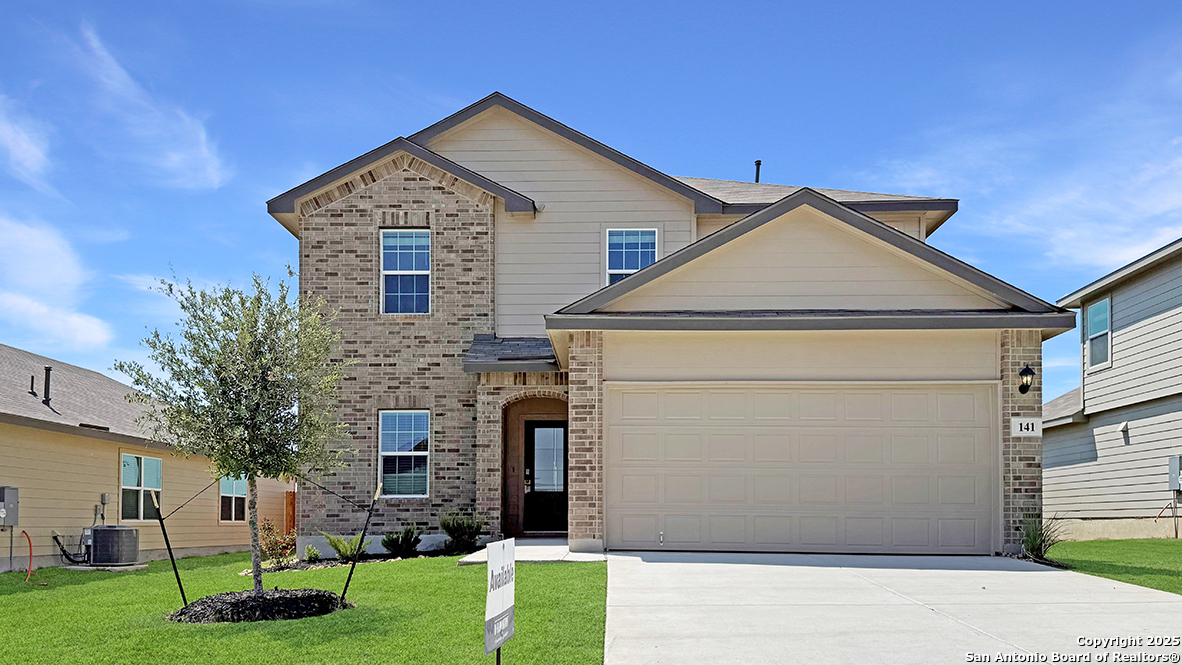 Step into The Landry, our largest two-story home at Redbird Ranch in San Antonio, TX. is one of our larger floor plans. This layout features 5 bedrooms, 3.5 bathrooms and a 2-car garage. The Landry also offers 4 classic front exteriors and 2678 square feet of comfortable living. The Landry features classic designs and modern features that blend seamlessly to create the perfect space for you and your loved ones. The covered front patio (per plan) opens into a beautiful foyer and formal dining room with abundant natural light from multiple windows. The dining room leads into an open-concept kitchen with stainless steel appliances, quartz countertops, white subway tile backsplash, and an angled kitchen island that faces the spacious living room, perfect for entertaining! The private main bedroom suite is also located off the living room. Your bedroom area is spacious and you'll relax in style with large windows and quality carpet flooring. The ensuite bathroom features ceramic tile flooring, desirable double vanity sinks, separate garden tub and walk-in shower, a private water closet, and large walk-in closet with plenty of shelving. The second story of The Landry has so much to offer! A large loft area is waiting for you at the top of the stairs. Whether you use this space as a game room, office, or a media room, there is sure to be comfort. Your remaining 4 bedrooms are all located off the loft and include large windows, quality carpet flooring and spacious closets. You will also find 2 full bathrooms upstairs, complete with bath tub and shower combos and single vanity sinks. This floor plan even has a linen closet! Additional features include tall 9-foot ceilings, 2-inch faux wood blinds throughout the home, luxury vinyl plank flooring in the entry, family room, kitchen, and dining area, ceramic tile in the bathrooms and utility room, pre-plumb for water softener loop, and full yard landscaping and irrigation. You'll enjoy added security in your new home with our Home is Connected features. Using one central hub that talks to all the devices in your home, you can control the lights, thermostat and locks, all from your cellular device.