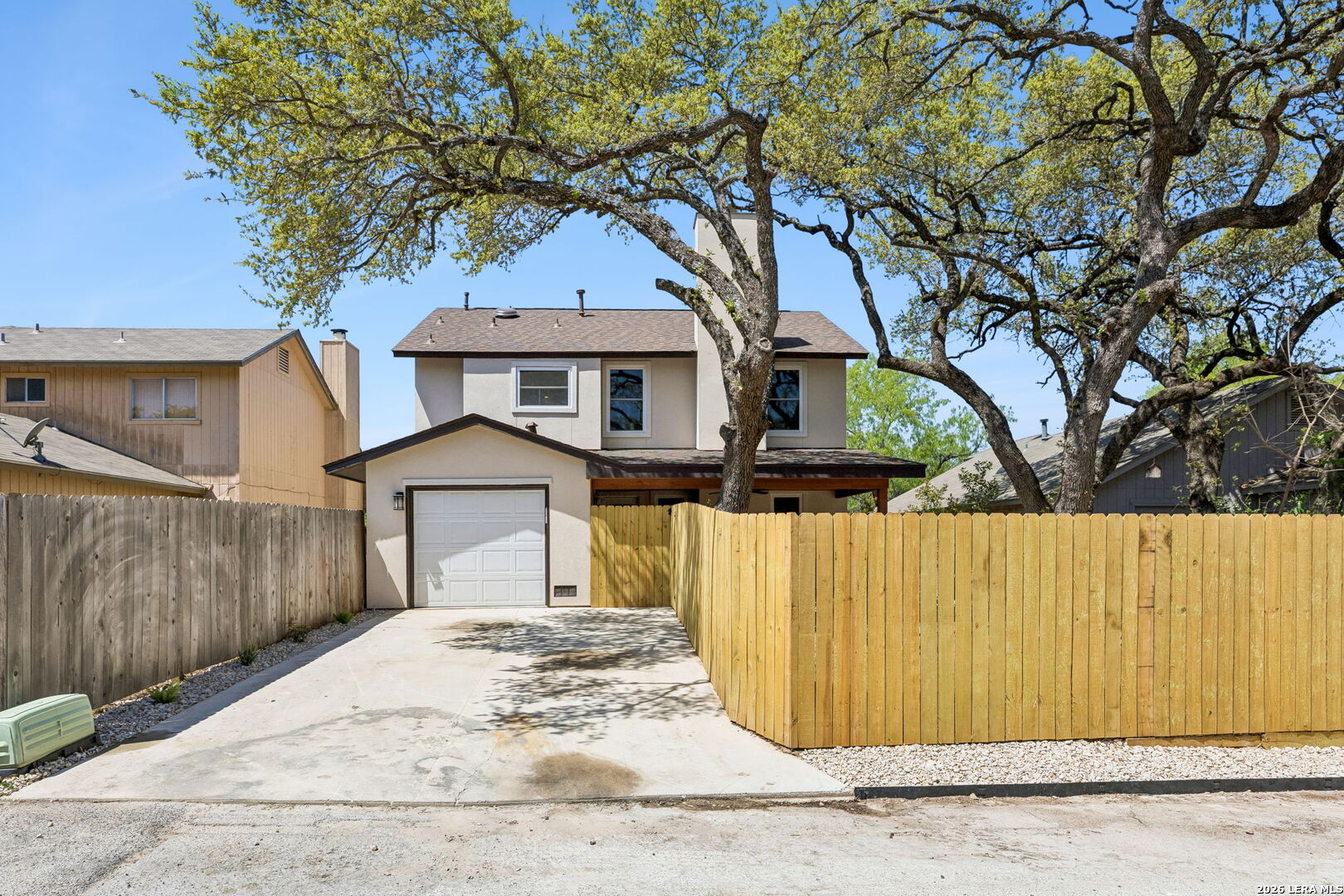 Gorgeous, low maintenance two story home in Castle Hills Forest. Excellent central location with great schools, restaurants and parks. Versatile floor plan with excellent use of space. This HOME has been remodeled and everything is new. The living room has a gorgeous fireplace, ceiling fan and opens to dining kitchen area. The view from the living room is to die for. Walk out the back and you will see a back cvd. tile patio with beaded wood ceilings, ceiling fan, a lovely stone and crushed granite walk path. There is a firepit/chimenea ready for entertaining your guest with a cozy fire. The privacy fence and the trees make this a very private area ready to enjoy with your family. Updates of this home include new roof, exterior walls, all newly painted, front door, windows, all new top of the line energy saving appliances, new light fixtures, new plumbing fixtures, new HVAC system, floors, all doors and much more. The exterior has been landscaped with some xeriscape and zoysia grass, easy to maintain but still offers a tranquil retreat from the rest of the world with the patio area, privacy fence, and a couple of neat little tucked-away sitting areas.