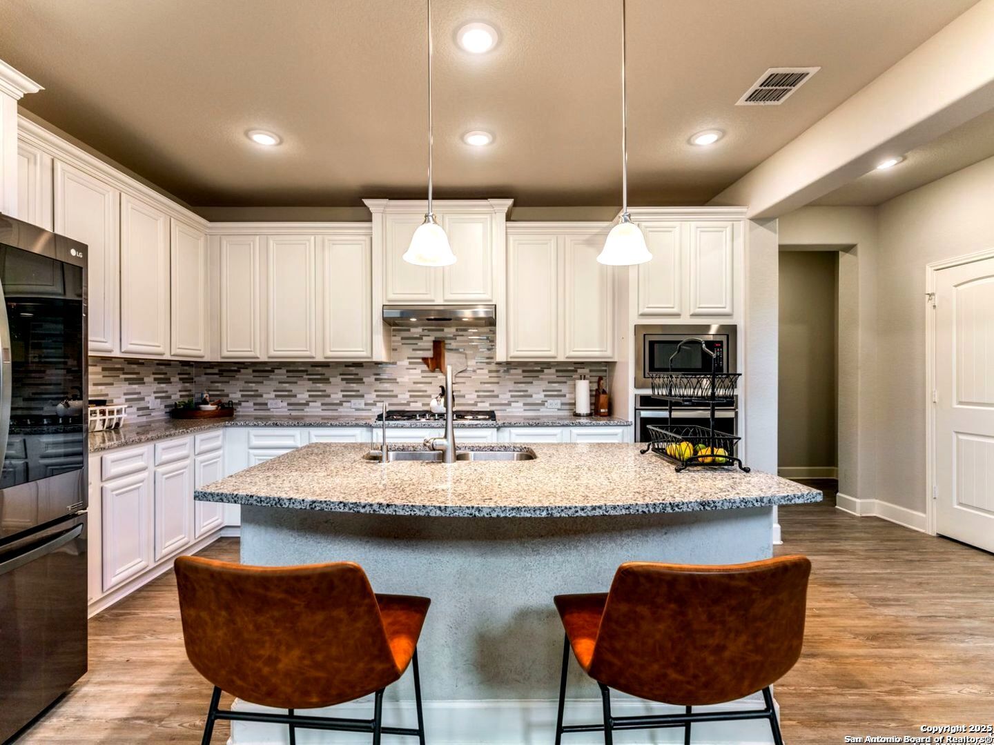 HUGE PRICE DROP! PRICED TO SELL - DON'T MISS OUT! Step into this spacious and beautifully maintained 4-bedroom, 3.5-bath home located in the highly sought-after Stevens Ranch community. Now offered at a significantly reduced price, this home is truly priced to sell-schedule your showing before it's gone! This two-story home features a downstairs primary suite, soaring ceilings, and an open-concept layout ideal for both daily living and entertaining. Enjoy durable tile and vinyl plank flooring throughout, and a stunning kitchen complete with sleek stainless steel Whirlpool appliances. Upstairs, you'll find a large game room overlooking the living area, along with spacious secondary bedrooms-each with generous walk-in closets. Take in peaceful greenbelt views from the covered front and back patios, surrounded by mature trees and supported by a full sprinkler system. Additional highlights include: Dedicated home office Smart home automation system Pre-plumbed for water softener Access to community amenities including a refreshing pool - just in time for summer! Don't wait - homes in Stevens Ranch don't stay on the market long, especially at this price. Act now and make this incredible home yours!