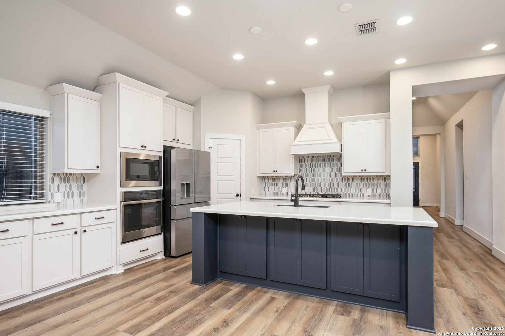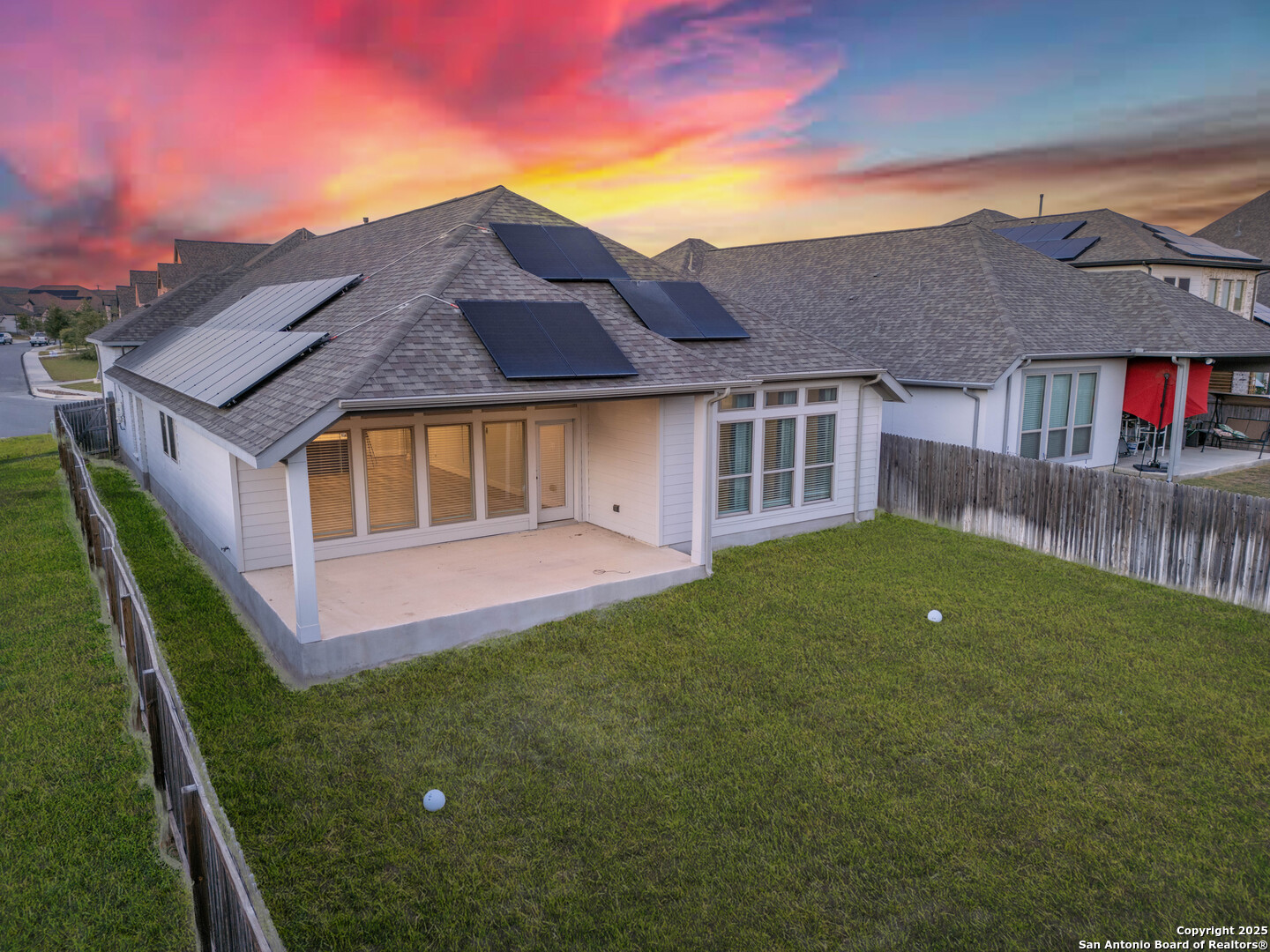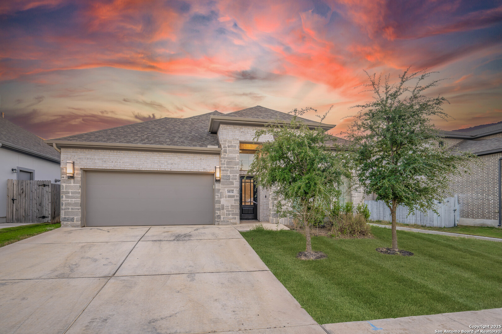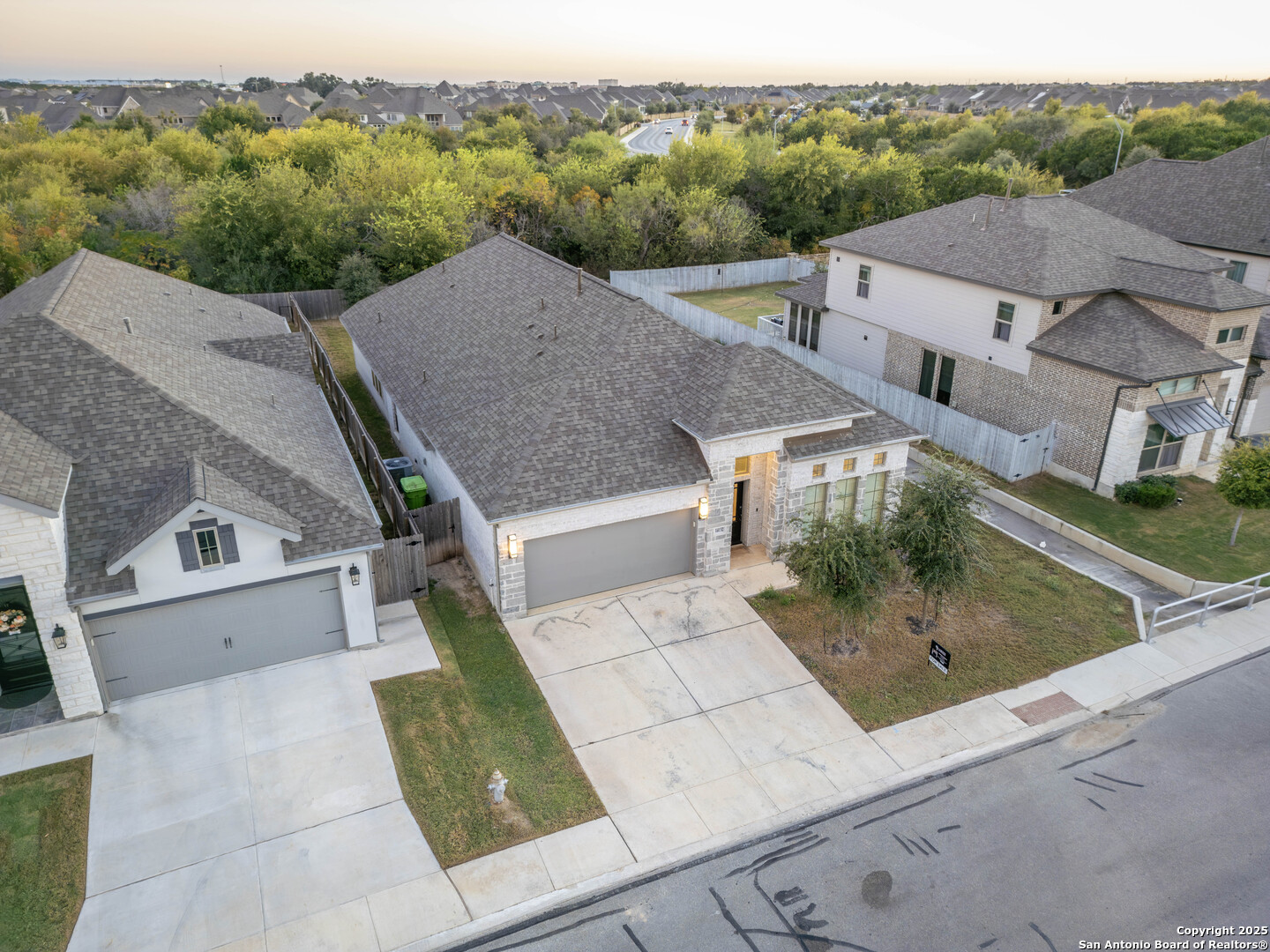 This exquisite Perry home in the highly-coveted Kallison Ranch neighborhood offers unparalleled greenbelt privacy with no rear neighbors! Featuring a spacious open floor plan with soaring 10-foot ceilings, three bedrooms, and three full bathrooms, this single-story sanctuary blends luxury with functionality. Interior highlights include a gourmet kitchen with a professional 5-burner gas cooktop, upgraded built-in GE Profile convection oven and dishwasher, touch-activated farmhouse-style sink, pristine quartz countertops with large central island, GE Cafe Smart refrigerator, and a walk-in pantry. An oversized master suite, with a well-appointed en-suite bathroom with dual vanities, soaking tub, step-down tile shower, and two walk-in closets. Smart Home Technology, with whole-home CAT-5e Ethernet and centralized server rack, Ubiquiti WiFi 6 coverage, Leviton smart dimmers, and AT&T Fiber readiness. Energy efficiency, with owned solar panels, reducing electricity bills by almost half, plus an owned water softener. Outdoor and community features include a private covered patio with ceiling fan, perfect for morning coffee or evening relaxation. Resort-style amenities, with access to $2.3M HOA facilities including two lagoon-style pools, fishing ponds, dog park, playgrounds, and outdoor fireplace pavilion. This prime northwest SA location provides easy access to Loop 1604/211/151, along with many retail and grocery stores, entertainment venues, and restaurant options. Schedule your showing today!