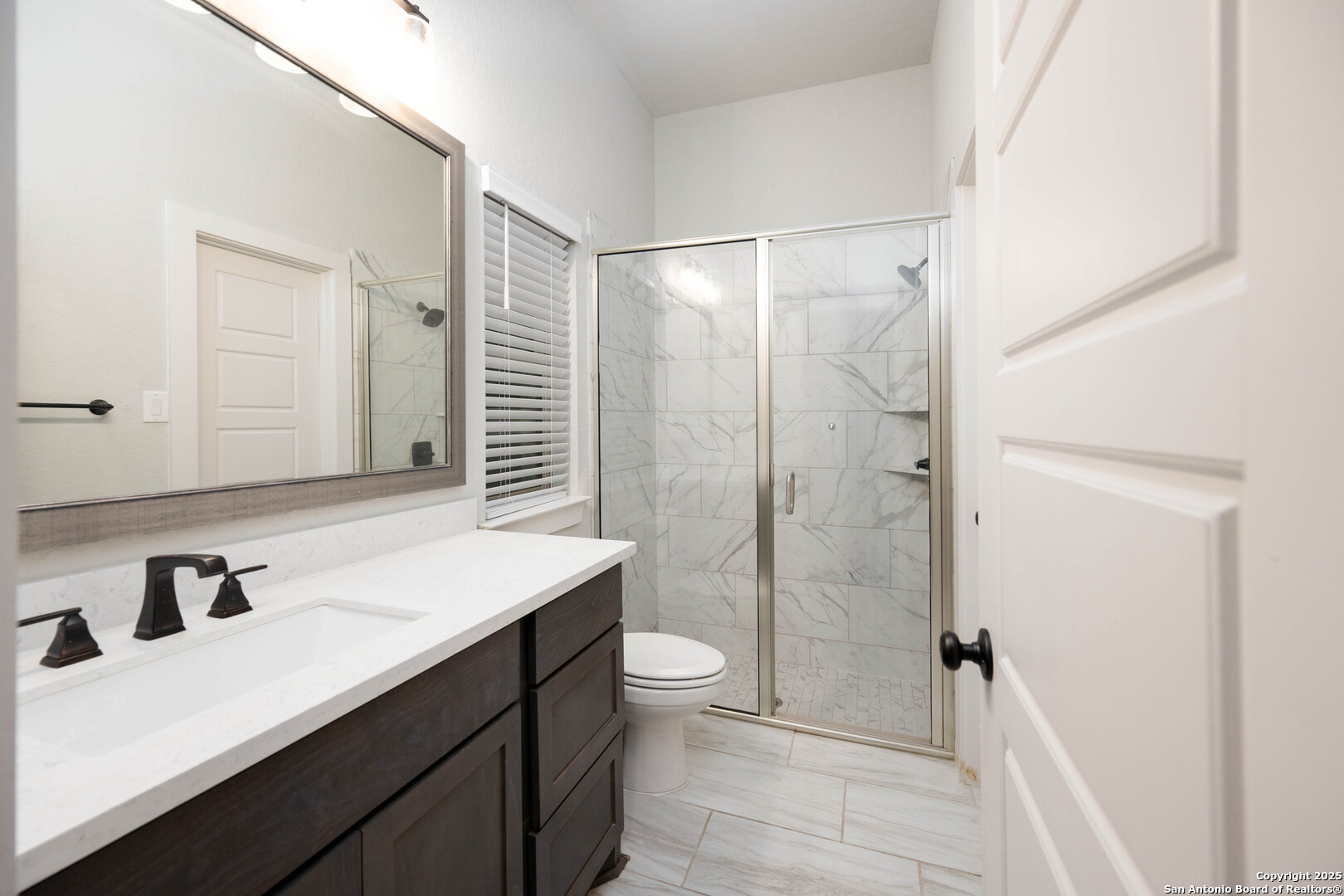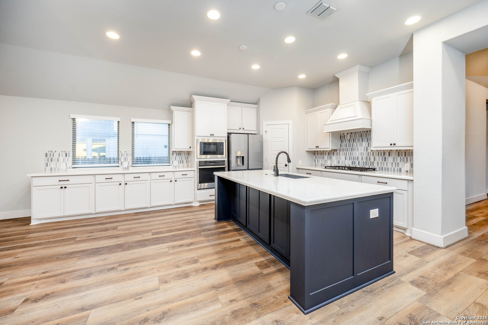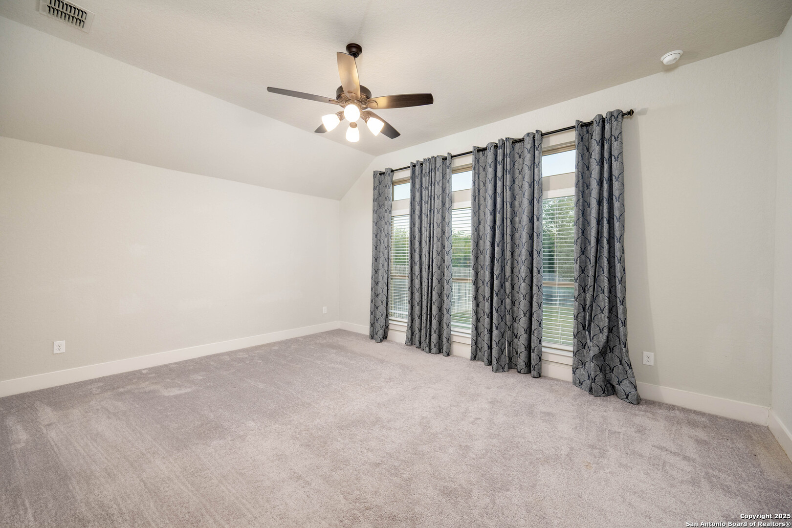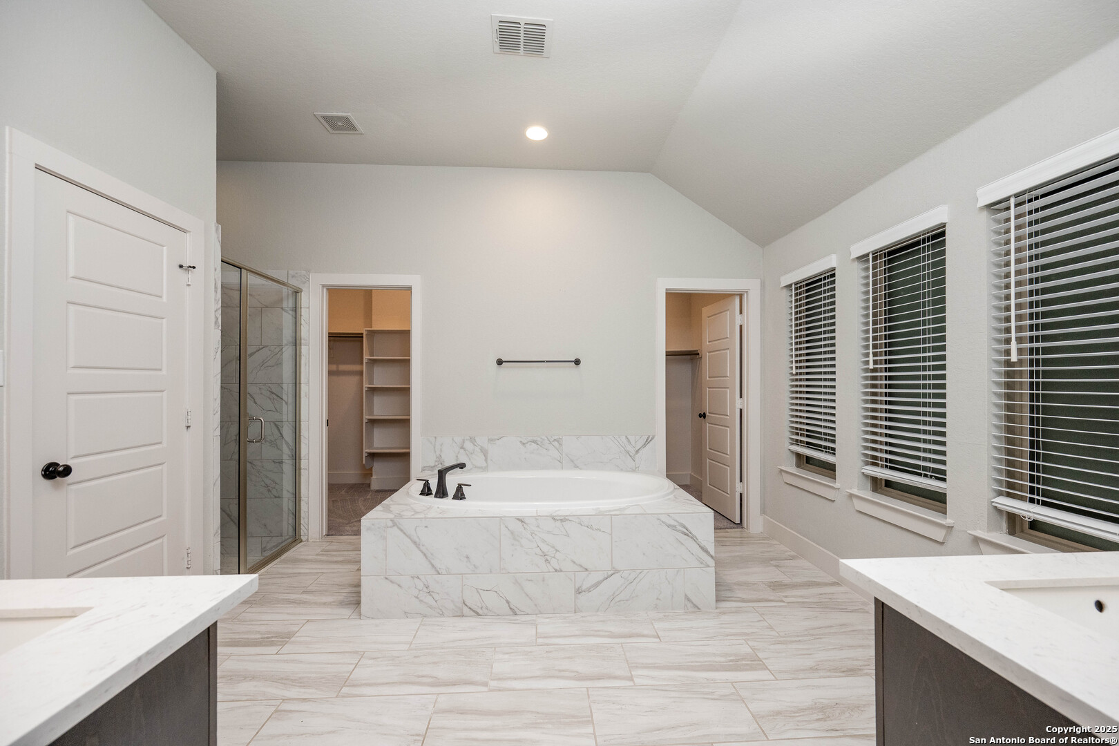 This exquisite Perry home in the highly-coveted Kallison Ranch neighborhood offers unparalleled greenbelt privacy with no rear neighbors! Featuring a spacious open floor plan with soaring 10-foot ceilings, three bedrooms, and three full bathrooms, this single-story sanctuary blends luxury with functionality. Interior highlights include a gourmet kitchen with a professional 5-burner gas cooktop, upgraded built-in GE Profile convection oven and dishwasher, touch-activated farmhouse-style sink, pristine quartz countertops with large central island, GE Cafe Smart refrigerator, and a walk-in pantry. An oversized master suite, with a well-appointed en-suite bathroom with dual vanities, soaking tub, step-down tile shower, and two walk-in closets. Smart Home Technology, with whole-home CAT-5e Ethernet and centralized server rack, Ubiquiti WiFi 6 coverage, Leviton smart dimmers, and AT&T Fiber readiness. Energy efficiency, with owned solar panels, reducing electricity bills by almost half, plus an owned water softener. Outdoor and community features include a private covered patio with ceiling fan, perfect for morning coffee or evening relaxation. Resort-style amenities, with access to $2.3M HOA facilities including two lagoon-style pools, fishing ponds, dog park, playgrounds, and outdoor fireplace pavilion. This prime northwest SA location provides easy access to Loop 1604/211/151, along with many retail and grocery stores, entertainment venues, and restaurant options. Schedule your showing today!