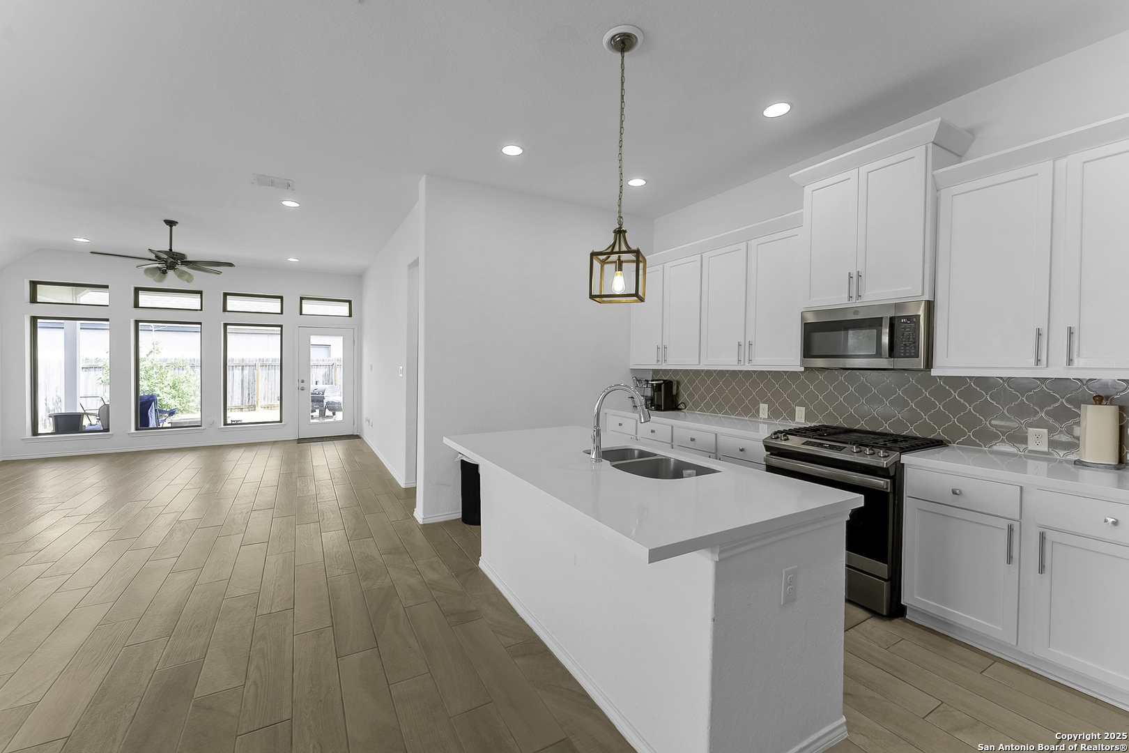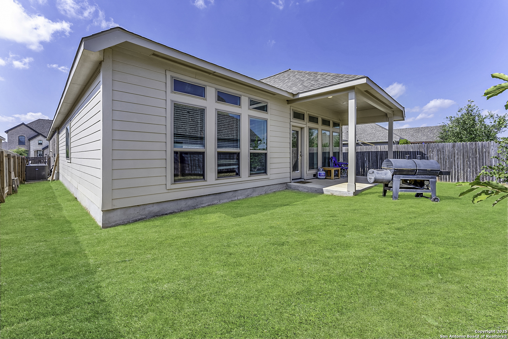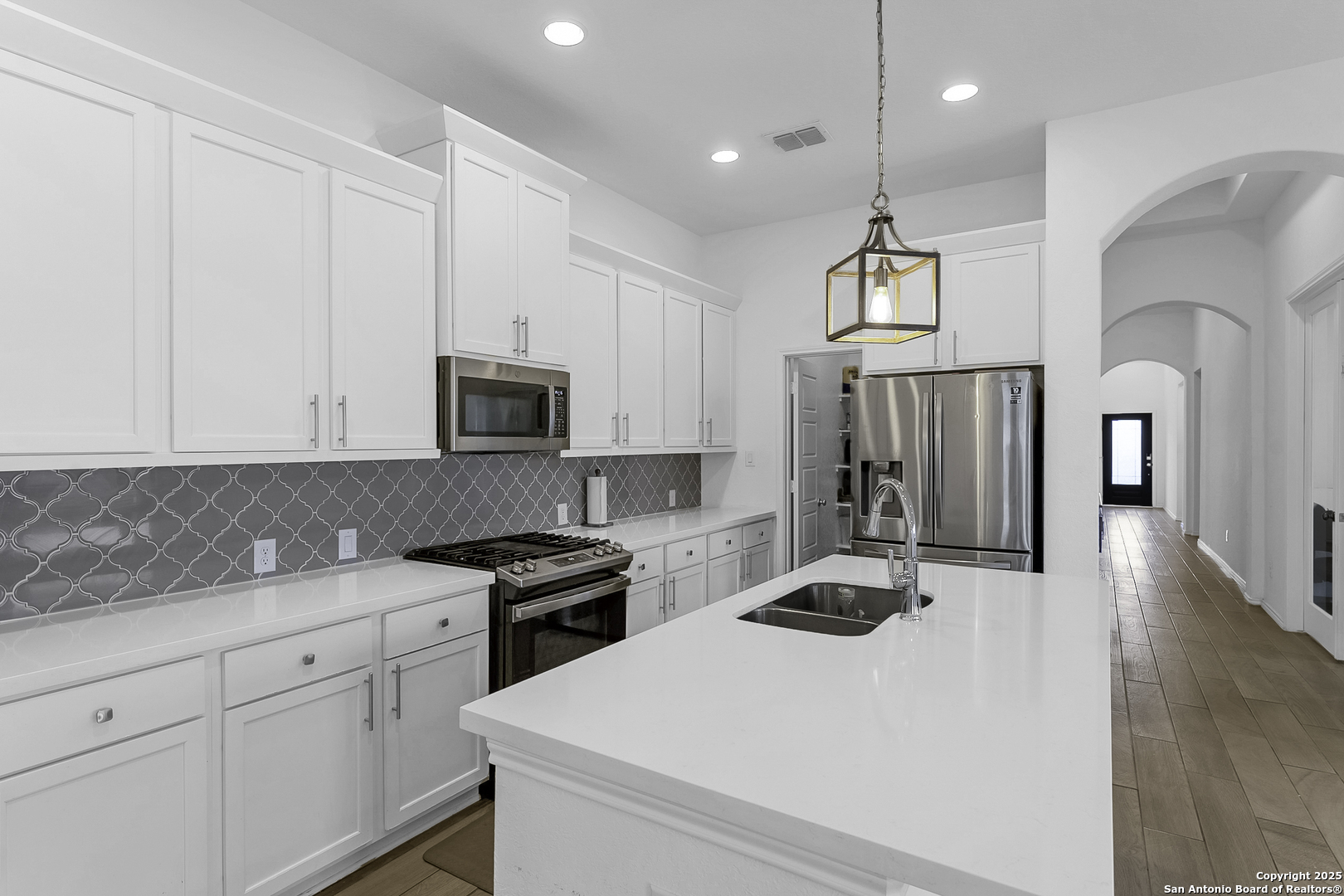 Don't miss this gorgeous one-story home in Kallison Ranch! Built in 2021, this 4 bedroom, 3 bath home has just over 2,400 sq. ft. of living space with a layout that's perfect for both busy weekdays and weekend entertaining. The open floor plan connects the living room, dining, and kitchen so everything feels bright, spacious, and welcoming. The kitchen has plenty of room to cook, gather, and hang out around the island. The primary suite is tucked away for privacy and features a spa-like bath and a big walk-in closet. You'll also find three more bedrooms and two full baths - great for guests, or even an additional home office. With modern upgrades, tile floors, and stylish finishes throughout, this home feels fresh and move-in ready. Outside, the backyard gives you space to relax or create your own outdoor hangout. Living in Kallison Ranch means you'll enjoy awesome neighborhood amenities like a pool, parks, and trails - plus you're just minutes from shopping, dining, and schools in Northwest San Antonio.