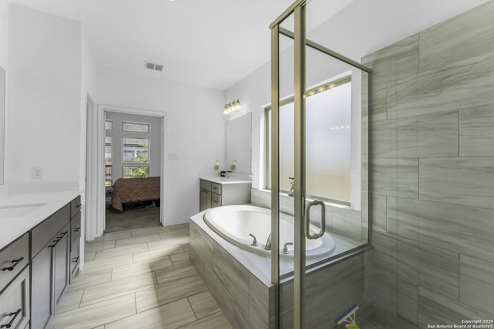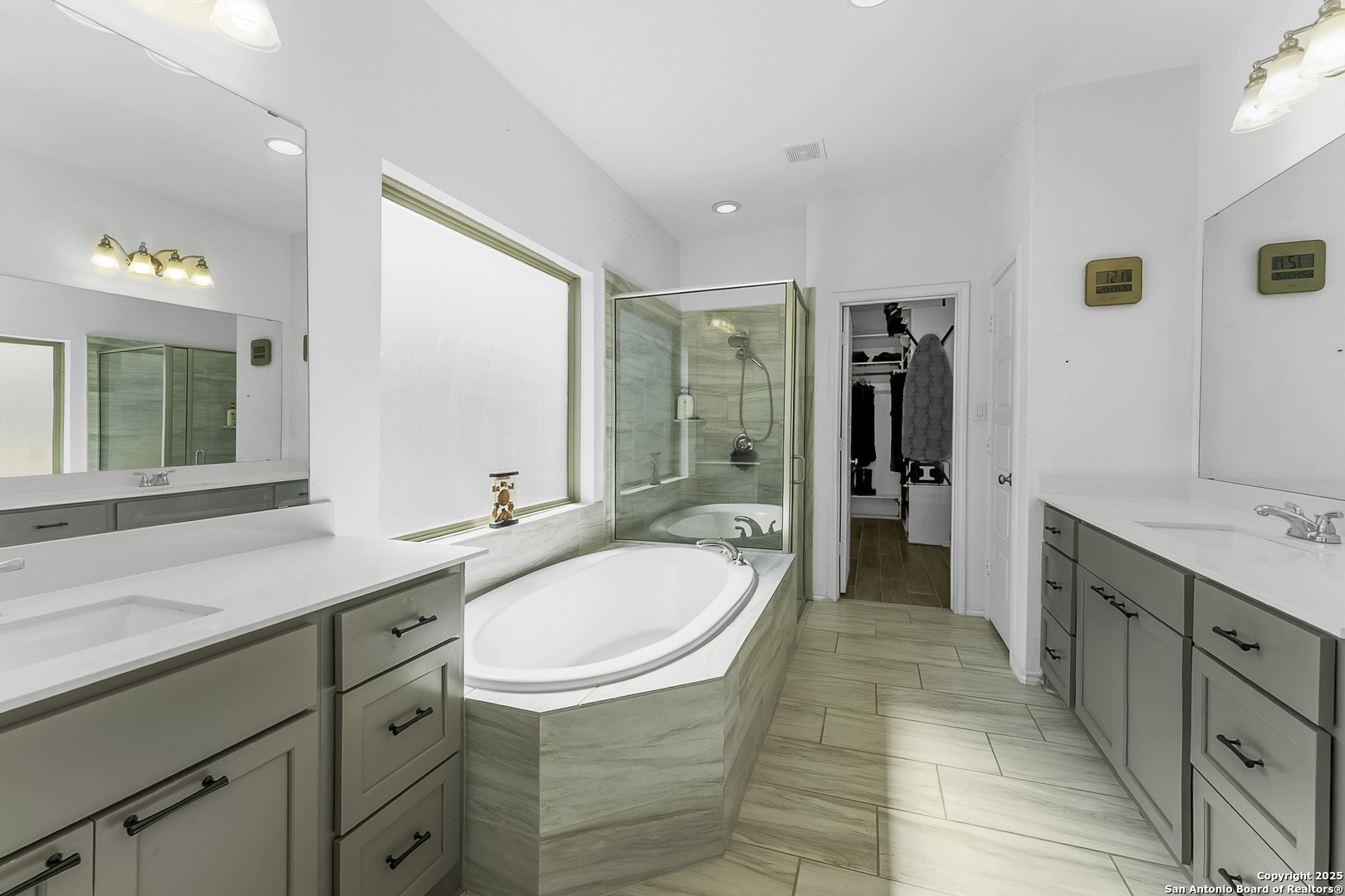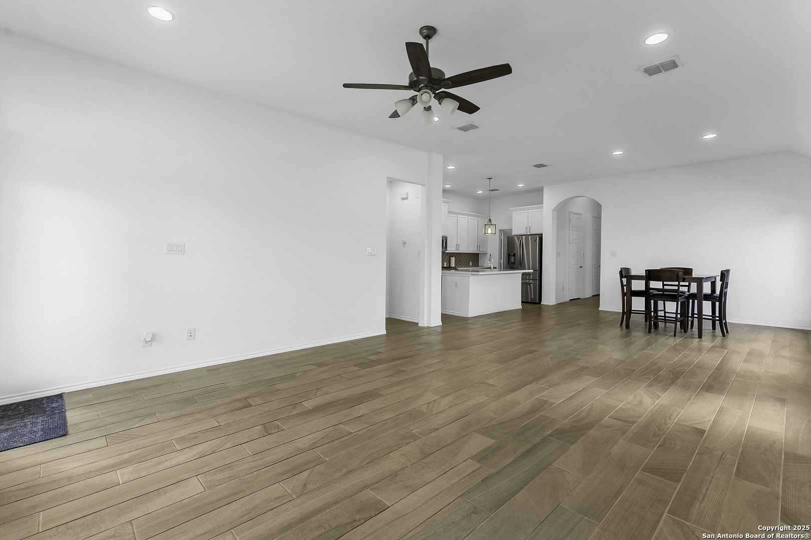 Don't miss this gorgeous one-story home in Kallison Ranch! Built in 2021, this 4 bedroom, 3 bath home has just over 2,400 sq. ft. of living space with a layout that's perfect for both busy weekdays and weekend entertaining. The open floor plan connects the living room, dining, and kitchen so everything feels bright, spacious, and welcoming. The kitchen has plenty of room to cook, gather, and hang out around the island. The primary suite is tucked away for privacy and features a spa-like bath and a big walk-in closet. You'll also find three more bedrooms and two full baths - great for guests, or even an additional home office. With modern upgrades, tile floors, and stylish finishes throughout, this home feels fresh and move-in ready. Outside, the backyard gives you space to relax or create your own outdoor hangout. Living in Kallison Ranch means you'll enjoy awesome neighborhood amenities like a pool, parks, and trails - plus you're just minutes from shopping, dining, and schools in Northwest San Antonio.
