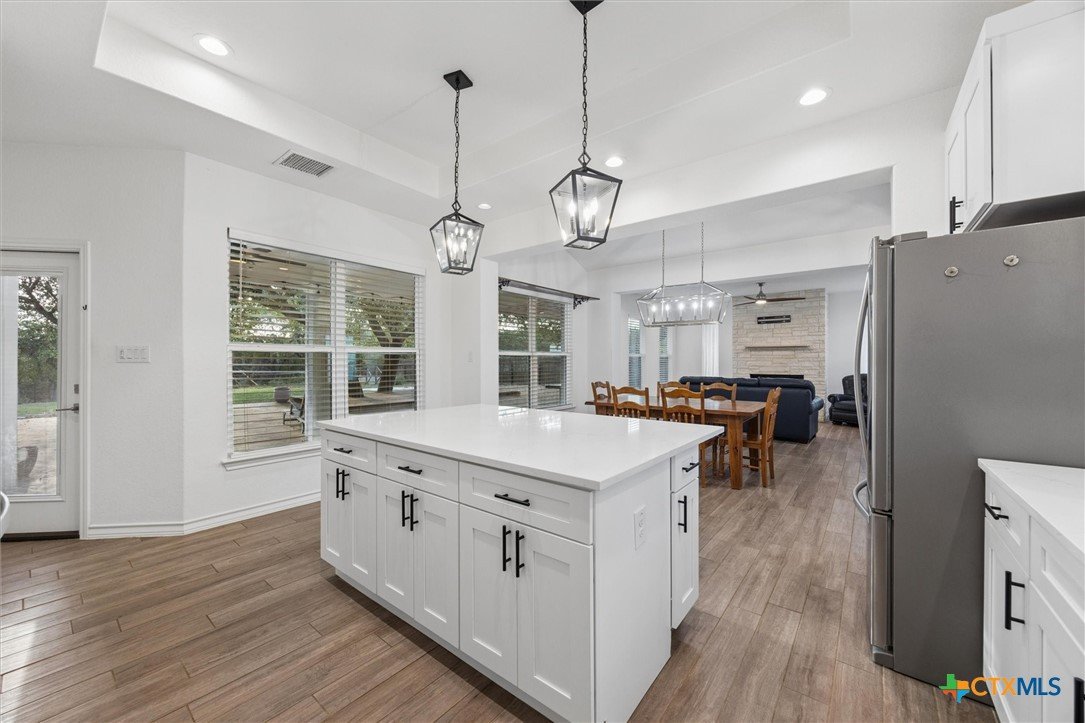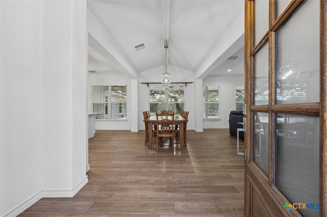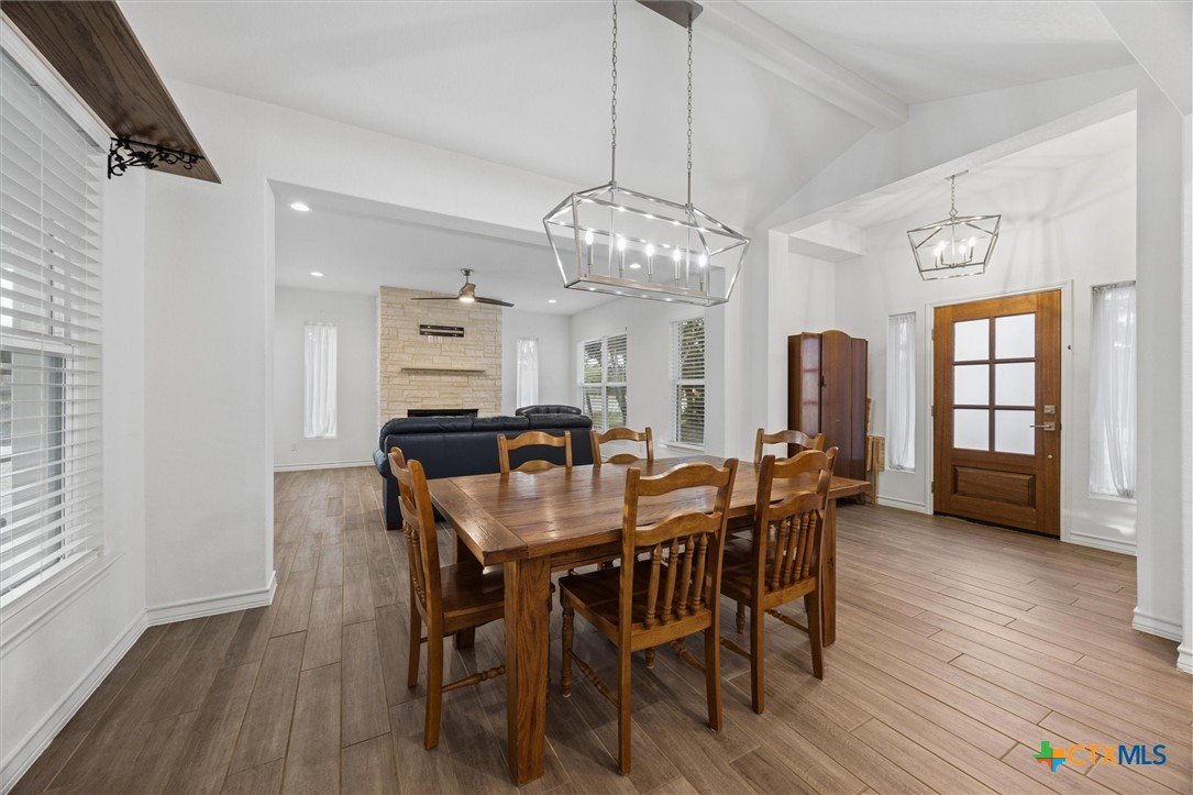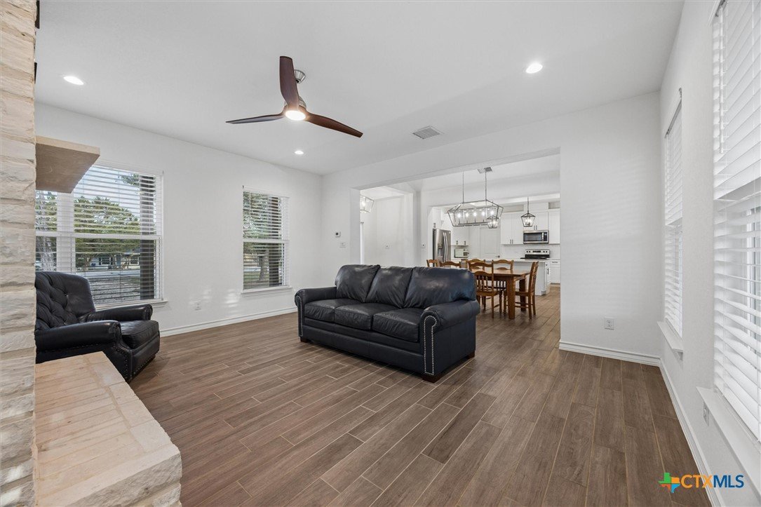 Gorgeous farmhouse at Canyon Lake ready and waiting for you! Are you looking for an oversized yard, privacy, and beautiful sunsets from your back porch? You have found it and so much more! This beautiful home located on a corner lot in Rancho Del Lago, just 10 minutes from Canyon Lake Marina, welcomes you from the moment you walk up the drive. Soaring ceilings, a wood burning fireplace, and a spacious kitchen overlooking the backyard make entertaining a breeze. This home has 4 bedrooms and 2.5 bathrooms between the upstairs and downstairs making it easy for you to spread out and feel comfortable with your family and friends at home with you. Come take a look today and make this house your new home!