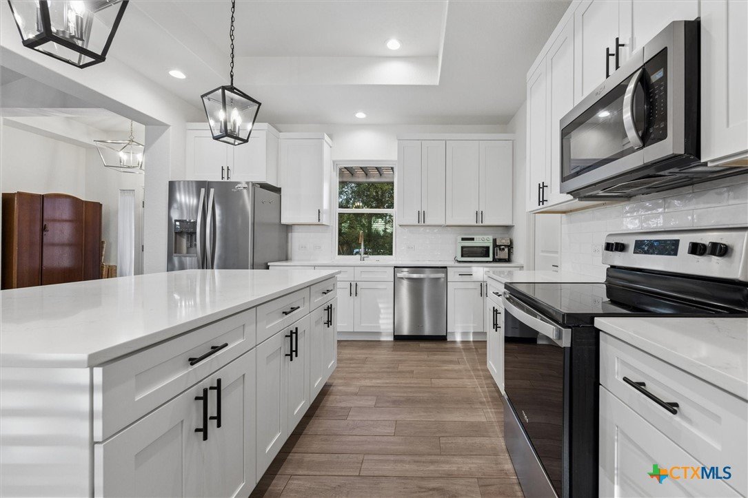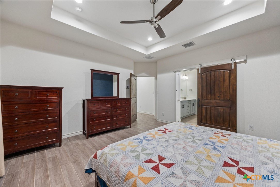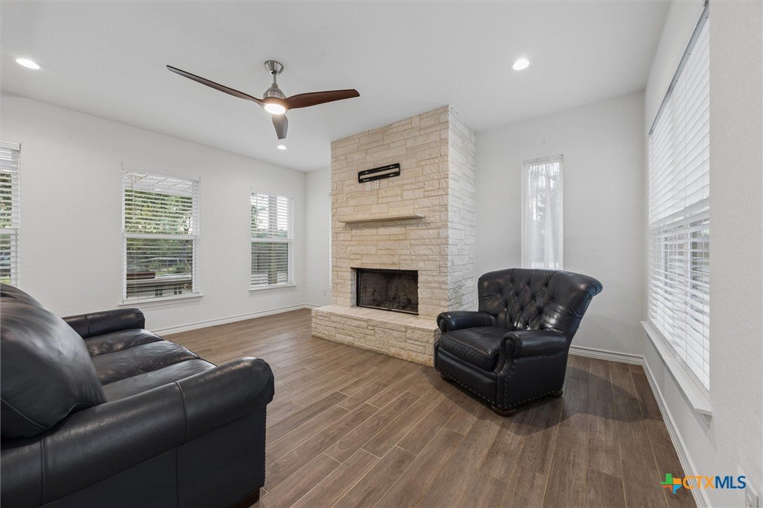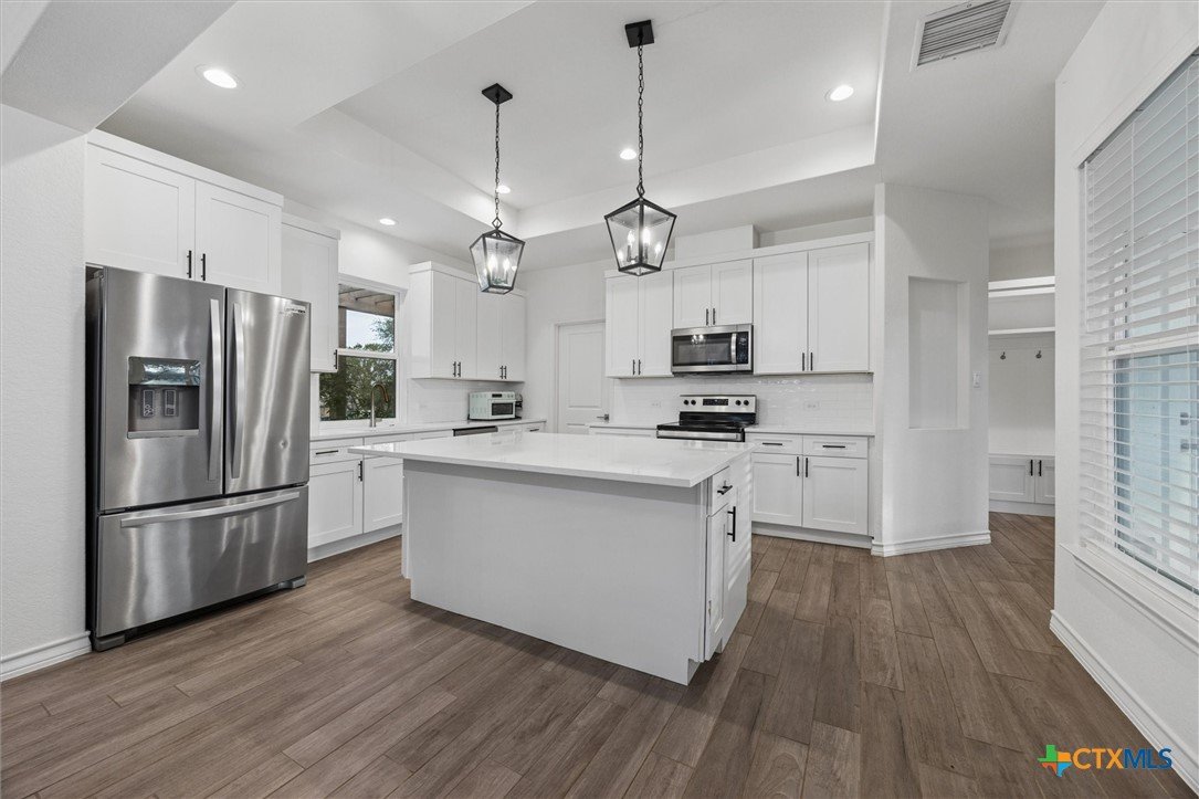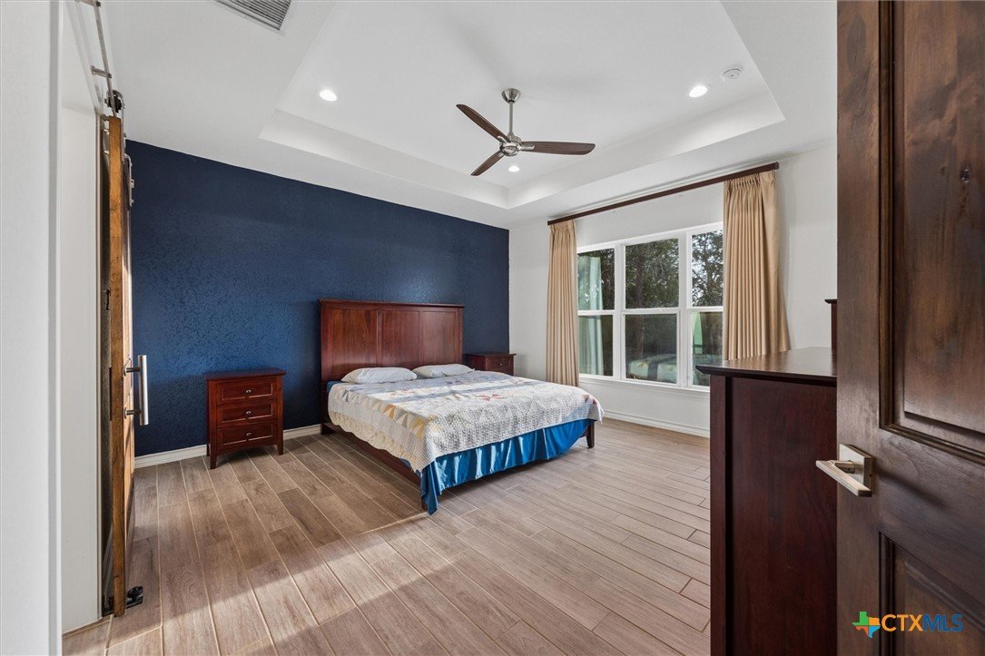 Gorgeous farmhouse at Canyon Lake ready and waiting for you! Are you looking for an oversized yard, privacy, and beautiful sunsets from your back porch? You have found it and so much more! This beautiful home located on a corner lot in Rancho Del Lago, just 10 minutes from Canyon Lake Marina, welcomes you from the moment you walk up the drive. Soaring ceilings, a wood burning fireplace, and a spacious kitchen overlooking the backyard make entertaining a breeze. This home has 4 bedrooms and 2.5 bathrooms between the upstairs and downstairs making it easy for you to spread out and feel comfortable with your family and friends at home with you. Come take a look today and make this house your new home!