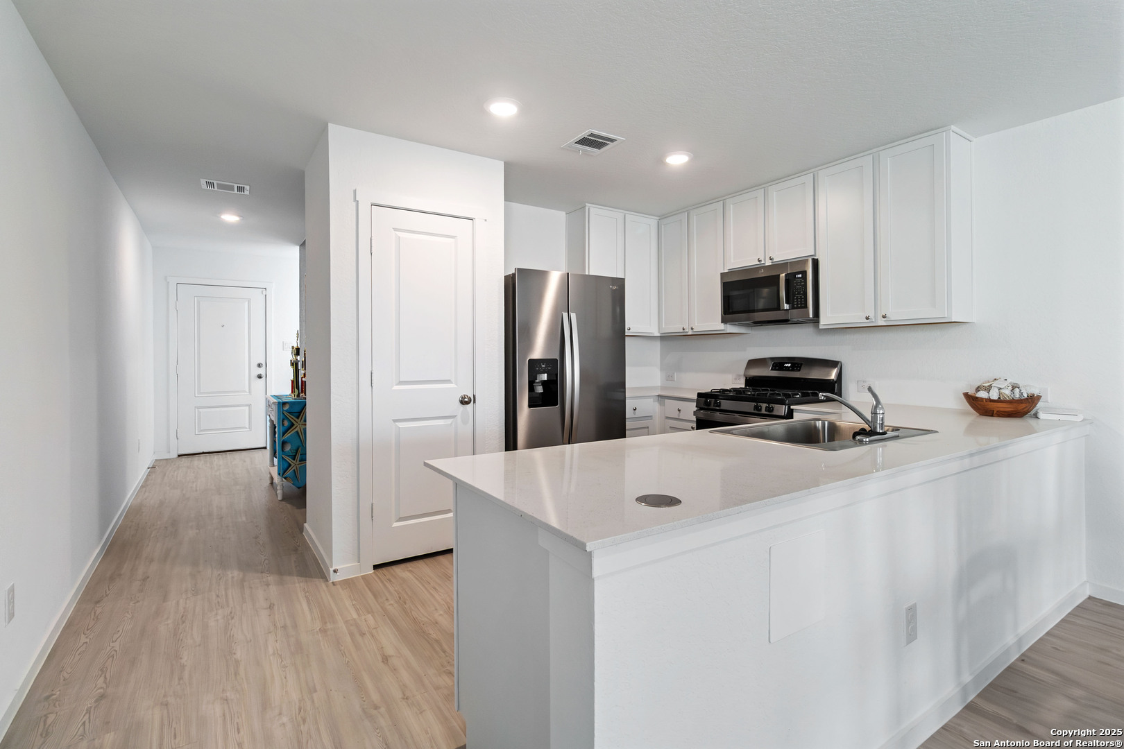 **VA Assumable Qualifying Loan!** This is an incredible opportunity you won't find in a new build - take advantage of a phenomenal rate and start saving from day one! Welcome to 14206 Enfield Falls, a beautifully maintained single-story home offering thein Brookmill perfect blend of comfort, upgrades, and privacy - all on a quiet cul-de-sac lot just shy of a 1/4 acre! This popular Kitson floorplan features 3 spacious bedrooms and 2 full bathrooms across 1,402 square feet of smart, functional living space. The garage has been fully transformed with epoxy flooring, custom wall paint, overhead storage and is perfect for those who appreciate attention to detail. The washer and dryer convey, adding even more value to this move-in-ready home. Outside, you'll love the lush front and back landscaping, plus a large storage shed painted to match the home. Relax and unwind outdoors overlooking a greenbelt with no visible neighbors, offering privacy and peaceful Hill Country vibes. Enjoy the sprawling amenity center with resort-like pool, oversized playground, clubhouse and a fitness center! Conveniently located near shopping, dining, and quick access to Loop 1604 and Hwy 90, this Brookmill gem delivers the comfort, charm, and location you've been looking for.