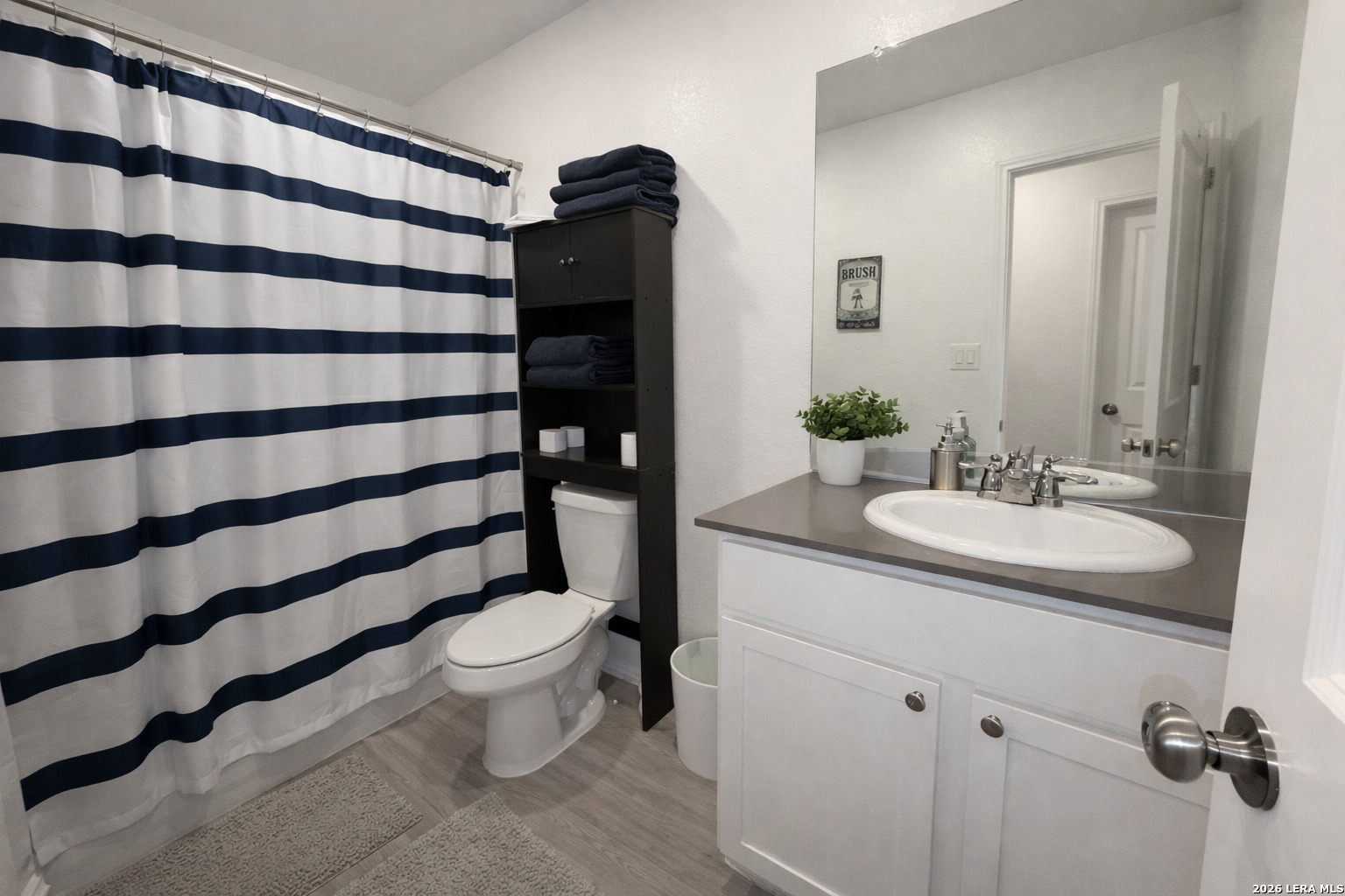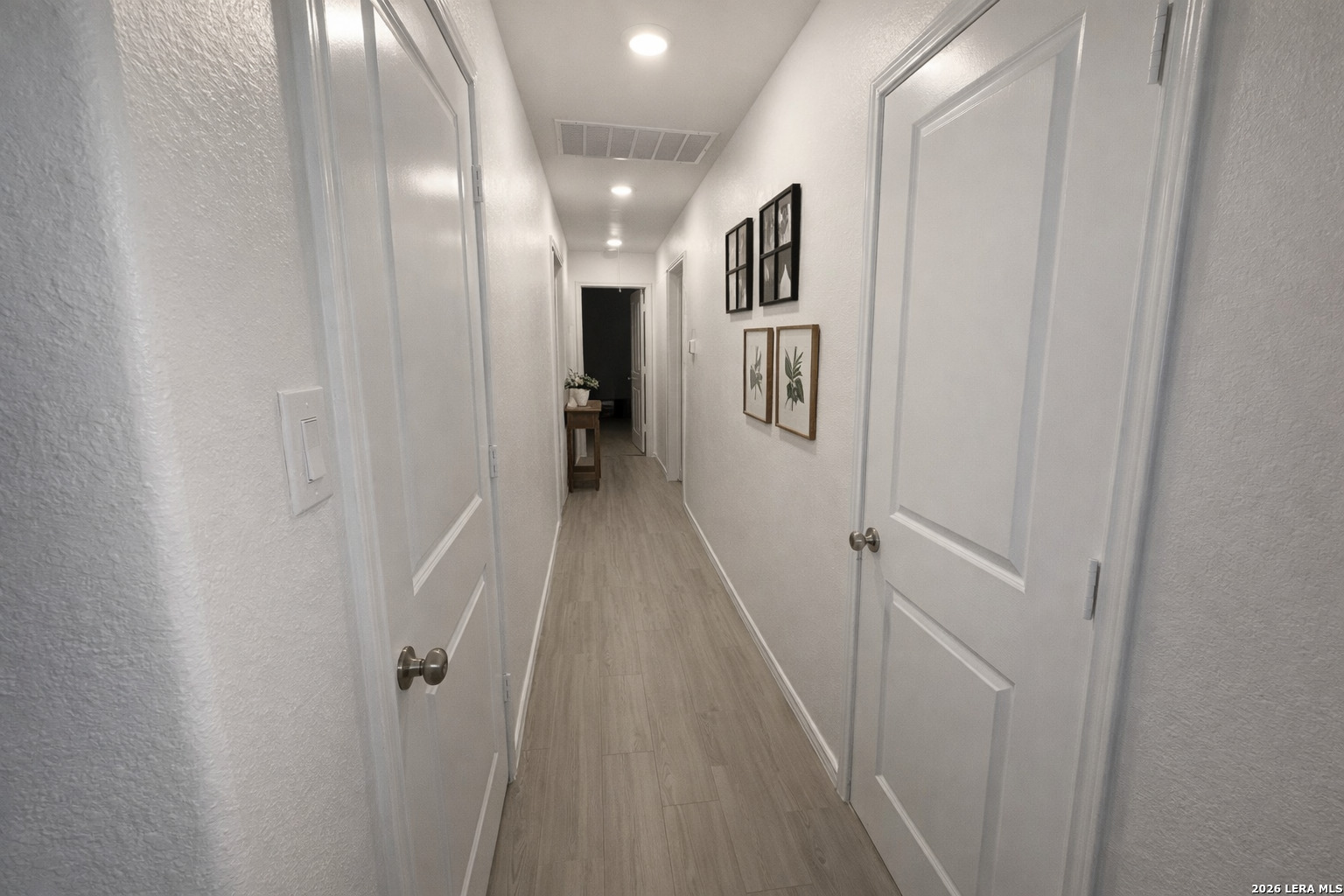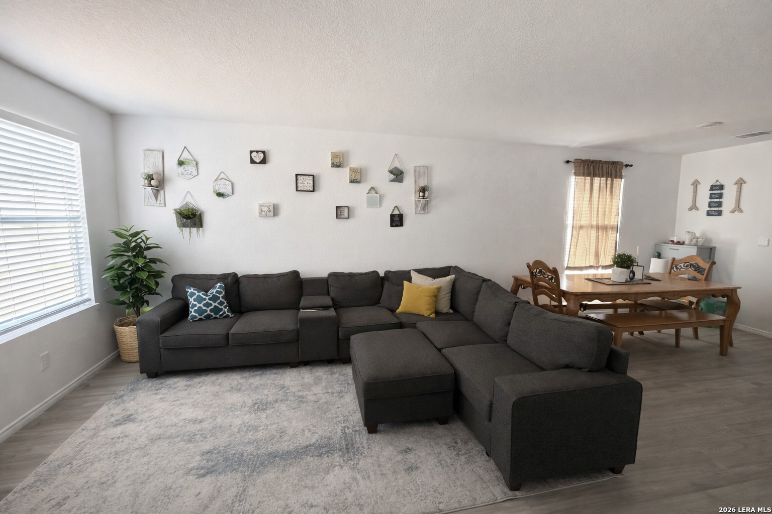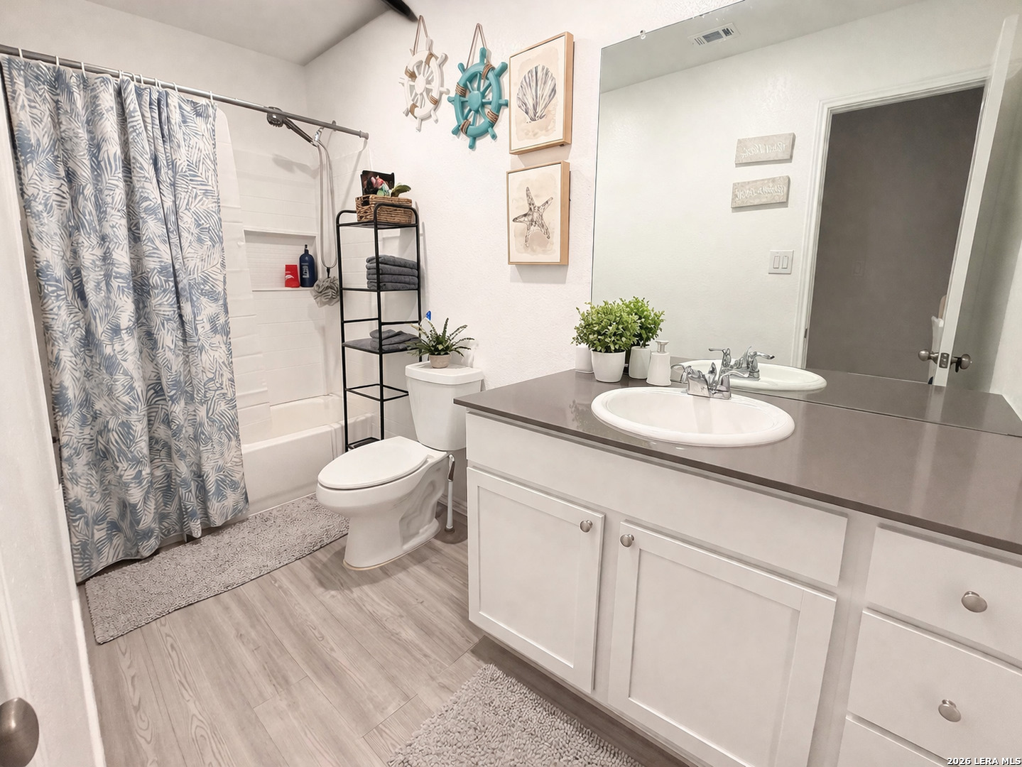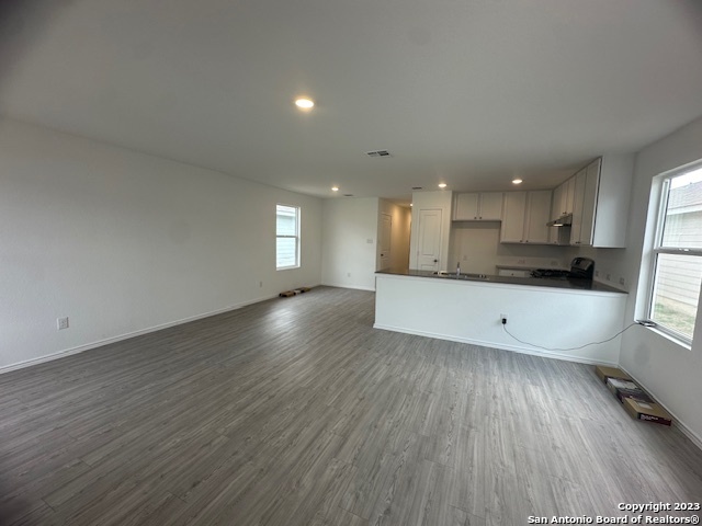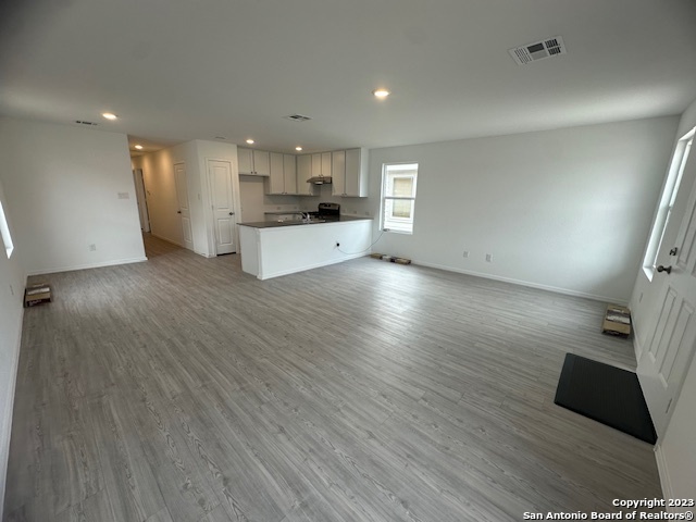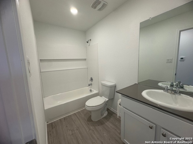 Lovely single-story home featuring a bright, open-concept floor plan with 3 bedrooms and 2 full baths. Interior boasts neutral color palette with durable semi-gloss paint for easy maintenance. No carpet! : ) .... Vinyl wood-style flooring throughout provides a clean, modern look. Spacious kitchen offers Corian countertops, gas cooking, and a functional layout that opens to the family room, ideal for entertaining. Additional interior features include recessed lighting and wood faux blinds throughout. Split primary suite is privately situated at the rear of the home and includes a full en-suite bath and a generous walk-in closet. Exterior highlights include a manageable, low-maintenance yard. Prime location with convenient access to Lackland AFB, major highways, shopping, dining, Costco, and downtown San Antonio. *Currently occupied*
