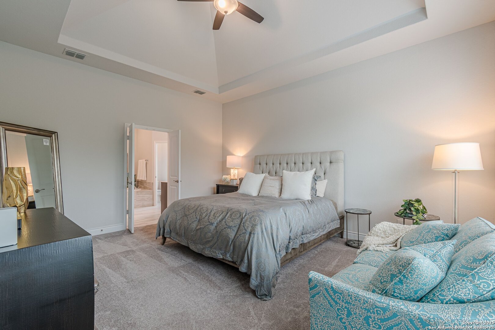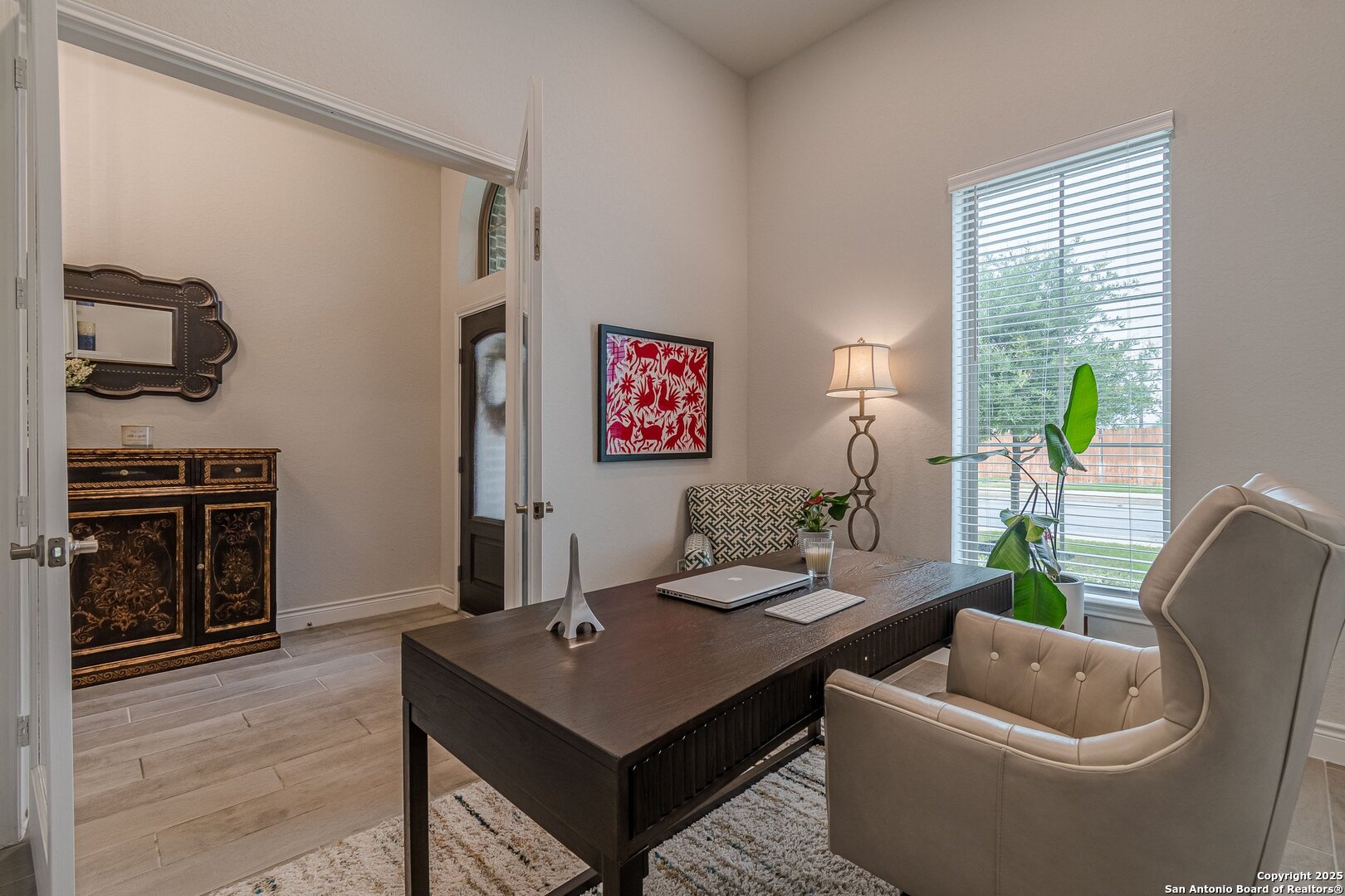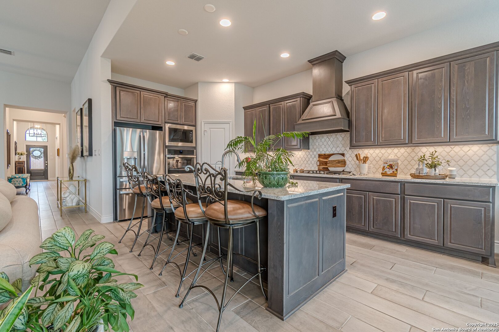 Step into this spectacularly designed 1-story Perry home, built in 2021, offering 2,973 Sq Ft of beautifully lit and spacious living. Nestled in the highly desirable Kallison Ranch community with resort-style amenities, this 4-bedroom, 3.1-bath gem is the perfect blend of style and functionality. From the dedicated office and media room to the 3-car tandem garage, every inch of this home has been thoughtfully crafted for comfort and elegance. The expansive open layout, oversized windows, and high ceilings invite natural light, creating a warm and inviting atmosphere that's ideal for both entertaining and everyday living. A chef's dream kitchen awaits, featuring two built-in ovens, a gas cook-top, a walk-in pantry, and an abundance of cabinet space, perfect for culinary creations and effortless entertaining. Retreat to the luxurious primary suite, designed for relaxation, with dual vanities, a soaking tub, a separate glass- large enclosed walk-in shower, and stunning redesigned custom-built his-and-hers walk-in closets. These thoughtfully crafted spaces offer tailored organization, generous storage, and an elegant feel. One of the spacious secondary bedrooms features its own private en-suite along with a custom-designed walk-in closet, offering both convenience and elevated storage solutions. The home also boasts a large laundry room, thoughtfully designed for efficiency and style, complete with custom, well-designed cabinets that provide ample storage and organization. Enjoy seamless indoor-outdoor living with a 19'X13' covered patio, perfect for al fresco dining or unwinding in the fresh air, plus no neighbors behind you for added tranquility and privacy. Kallison Ranch offers an amenity-rich lifestyle, featuring lush resort-style pools, clubhouse, playgrounds, fishing pond, BBQ, lounge areas and a place to relax by the fire. With modern conveniences and timeless beauty, this home is a rare find, perfectly blending elegance, functionality, and community. Convenient Location - Enjoy quick access to top-rated schools, shopping, dining, and major highways, making your daily routine effortless. This home is a MUST SEE TO APPRECIATE!