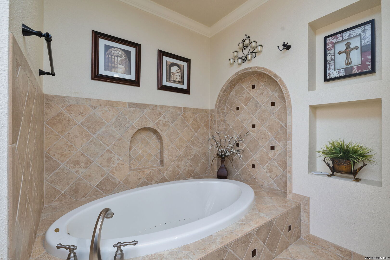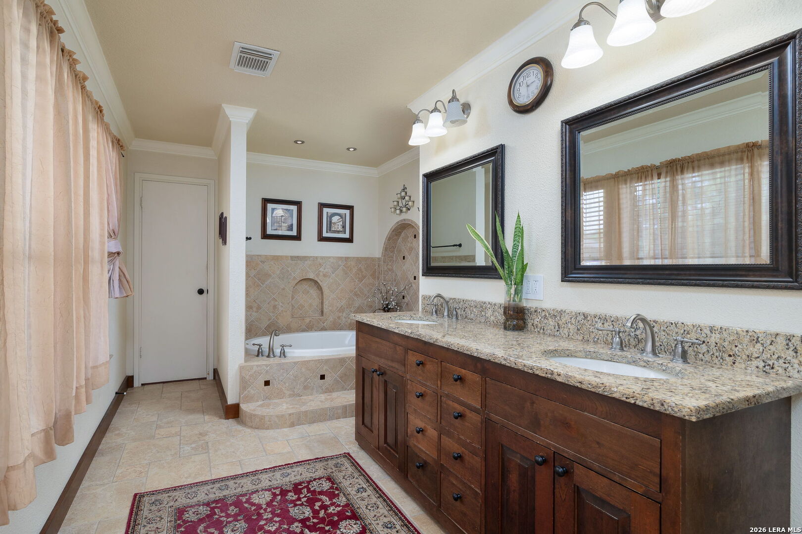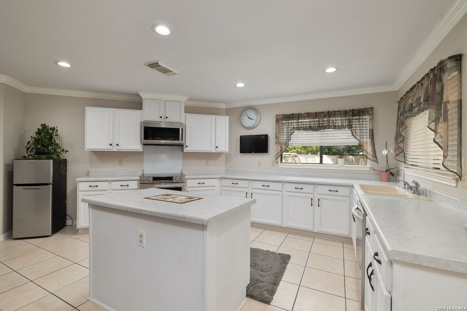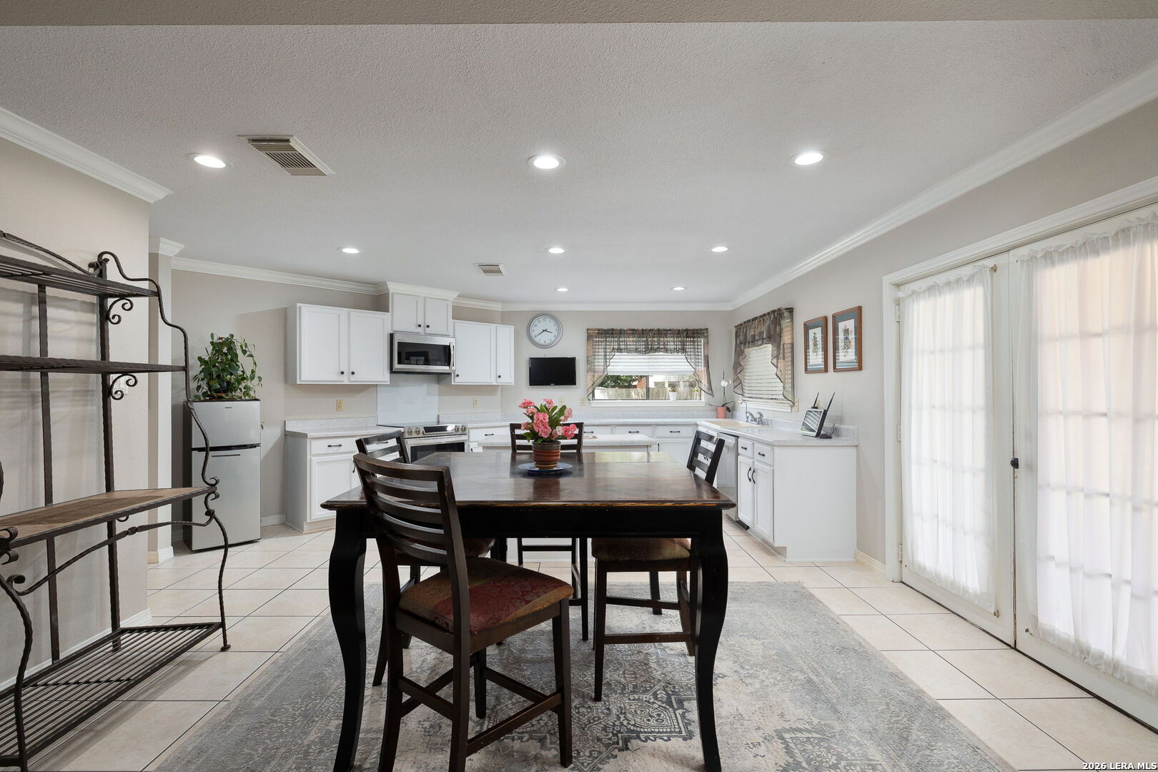 Welcome to 14211 Edge Point Drive. This elegantly appointed, all-brick residence showcases a light-filled, open-concept design. Ideally located near the South Texas Medical Center, UTSA, Six Flags, and premier shopping, dining, and entertainment, it offers both privacy and convenience. This expansive home features three distinct living areas and two dining spaces, complemented by soaring ceilings and a statement fireplace that anchors the main living area. The spacious kitchen is a true centerpiece-an inviting space for family and friends to gather. Multiple windows provide abundant natural light, and the kitchen is enhanced with updated cabinetry, an island, modern light fixtures, stainless steel appliances, and a dishwasher replaced in 2023. The laundry room/pantry is fully tiled and thoughtfully updated, offering ample storage and a functional design for everyday convenience. (New water heater installed January 2025.) Thoughtful upgrades include crown molding throughout both levels of the home and walk-in closets. The downstairs level has been freshly painted, and all popcorn ceilings have been replaced with a modern texture. The home also features a partially finished attic with partial flooring, ample hidden storage, and a drop-down ladder for easy access. The primary suite serves as a private retreat, filled with natural light and upgraded cherry wood flooring. The luxurious, spa-like en-suite bath has been fully renovated and features a Jacuzzi soaking tub, an oversized walk-in shower with a custom glass enclosure, and upgraded tile throughout. Additional highlights include custom-built-in storage and granite double vanities. The secondary upstairs bathroom has also been fully renovated, featuring elegant tilework, an upgraded shower, and new fixtures. French doors open to an upgraded, extra-large covered patio featuring beautiful dimmable lighting, ceiling fans, and a specially treated roof coating designed for long-lasting, low-maintenance enjoyment. Additional features include six exterior cameras, an indoor monitoring system, and a dog kennel in the backyard, all of which will convey with the home.