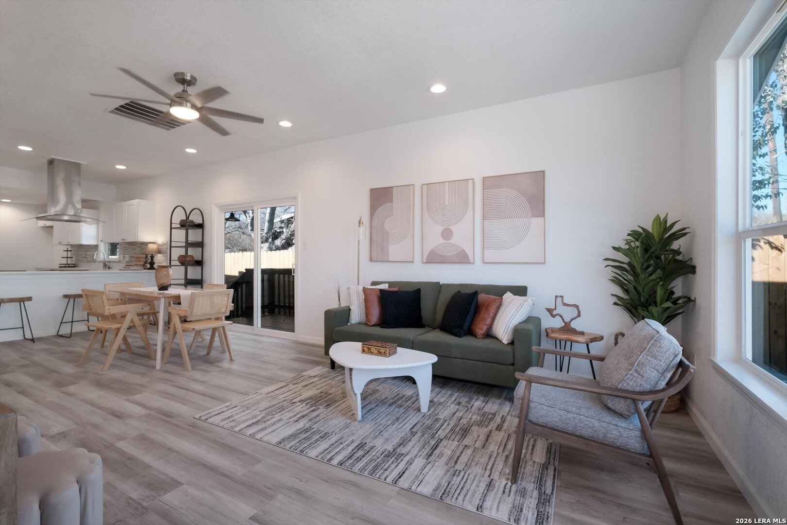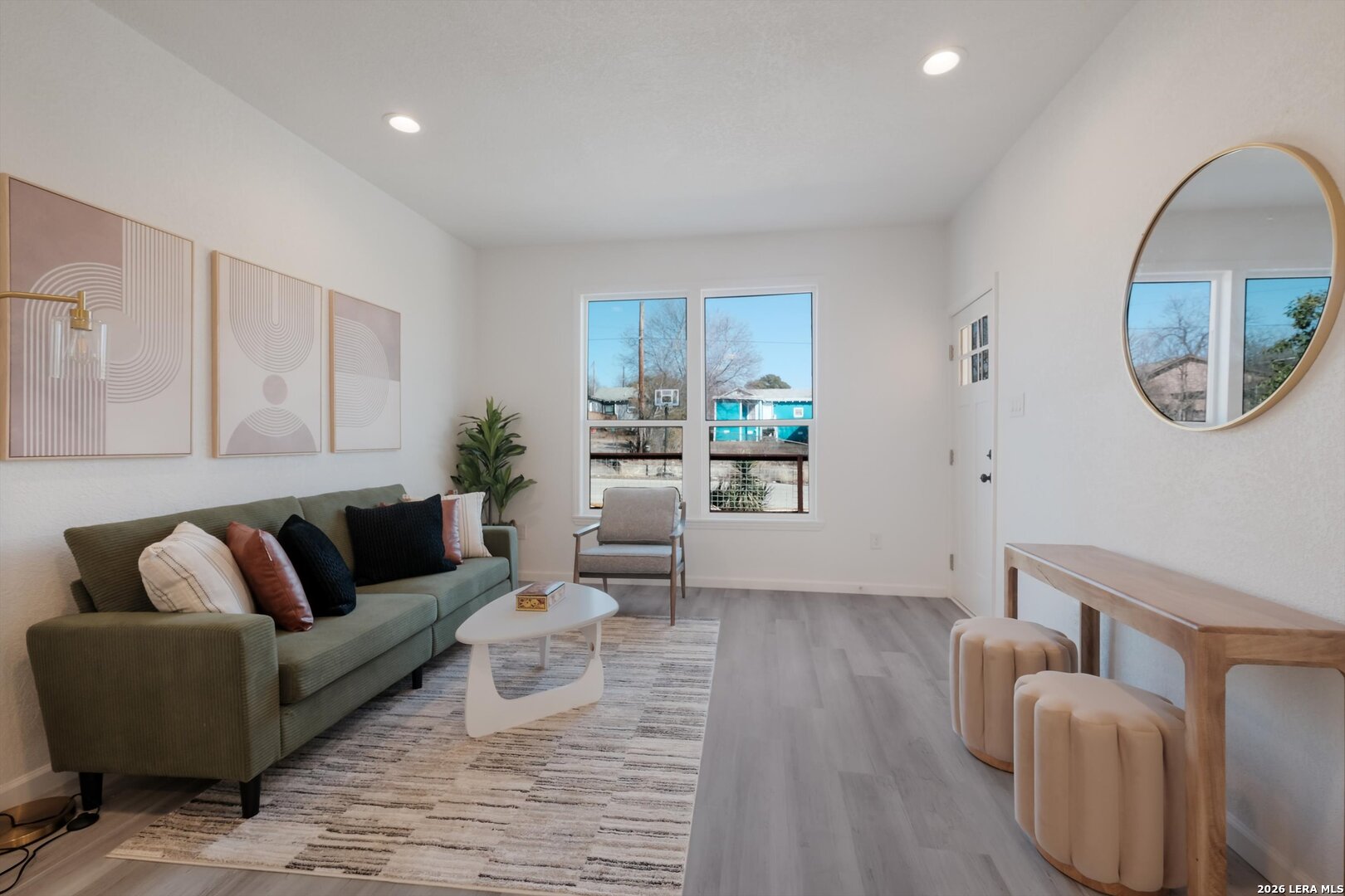 Welcome to this beautifully designed modern home nestled in the vibrant heart of downtown. This three-bedroom, two-bath residence offers approximately 1,300 square feet of thoughtfully planned living space, blending contemporary style with unbeatable urban convenience. Ideally located just minutes from downtown's most iconic attractions,located just 5 minutes from the iconic AT&T Frost Bank Center, 7 minutes to the breathtaking Tower of the Americas, and a mere 8 minutes to the Pearl district. You'll enjoy quick access to entertainment, dining, culture, and nightlife while still having a place that feels like home. Step inside to a bright, open-concept floor plan that's perfect for both entertaining and everyday living. The spacious living and dining areas flow seamlessly into a modern kitchen featuring sleek quartz countertops, generous workspace, and eye-catching finishes that serve as both functional features and stylish focal points. Whether you love cooking or prefer casual meals with friends, this space is designed to impress. Each generously sized bedroom offers a private retreat, providing comfort, flexibility, and room to express your personal style. Outside, enjoy a detached covered patio ideal for relaxing or hosting gatherings along with a long, private driveway that adds both convenience and privacy. This home offers modern living, prime location, and a lifestyle that keeps you connected to everything downtown has to offer.
