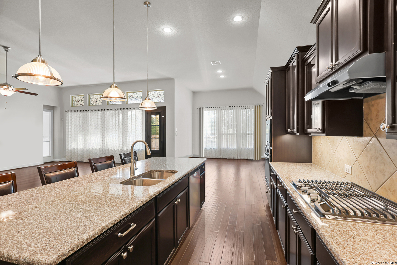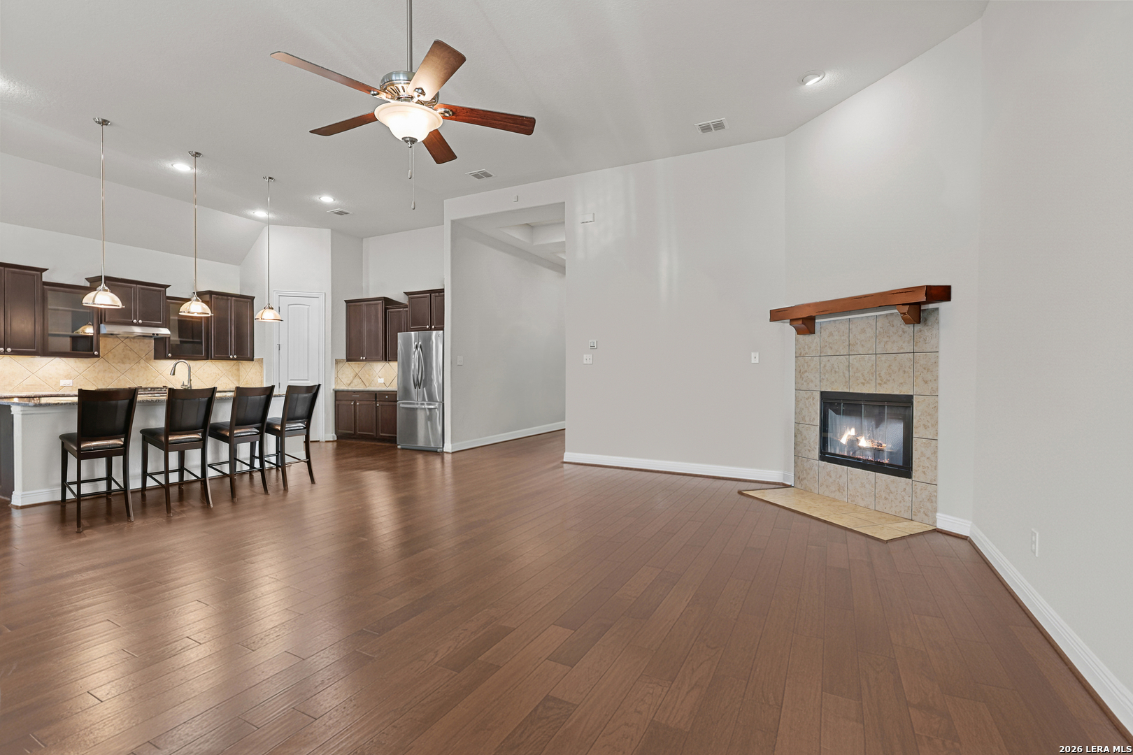 Discover 1424 Settlement in New Braunfels, TX, a stunning 3-bedroom, 2.5-bath residence offering 2,630 square feet of beautifully designed living space just moments from the historic town of Gruene. Step inside to find soaring vaulted ceilings, hardwood floors, and a welcoming fireplace in the living room that flow throughout the open layout. The kitchen is a chef's dream with granite countertops, a central island, and gas cooking, ideal for both everyday meals and entertaining. The spacious primary suite features a soaking tub, separate shower, and dual vanities for a spa-like retreat. Enjoy outdoor living on the covered patio, complete with a retractable screen and ceiling fan for year-round comfort. Two additional bedrooms provide flexibility for family, guests, or a home office. Nestled near Gruene's boutique shops, live music venues, and the Guadalupe River, this home offers both charm and convenience. With easy access to downtown New Braunfels, top-rated schools, and Hill Country attractions, it blends modern comfort with a highly sought-after location.